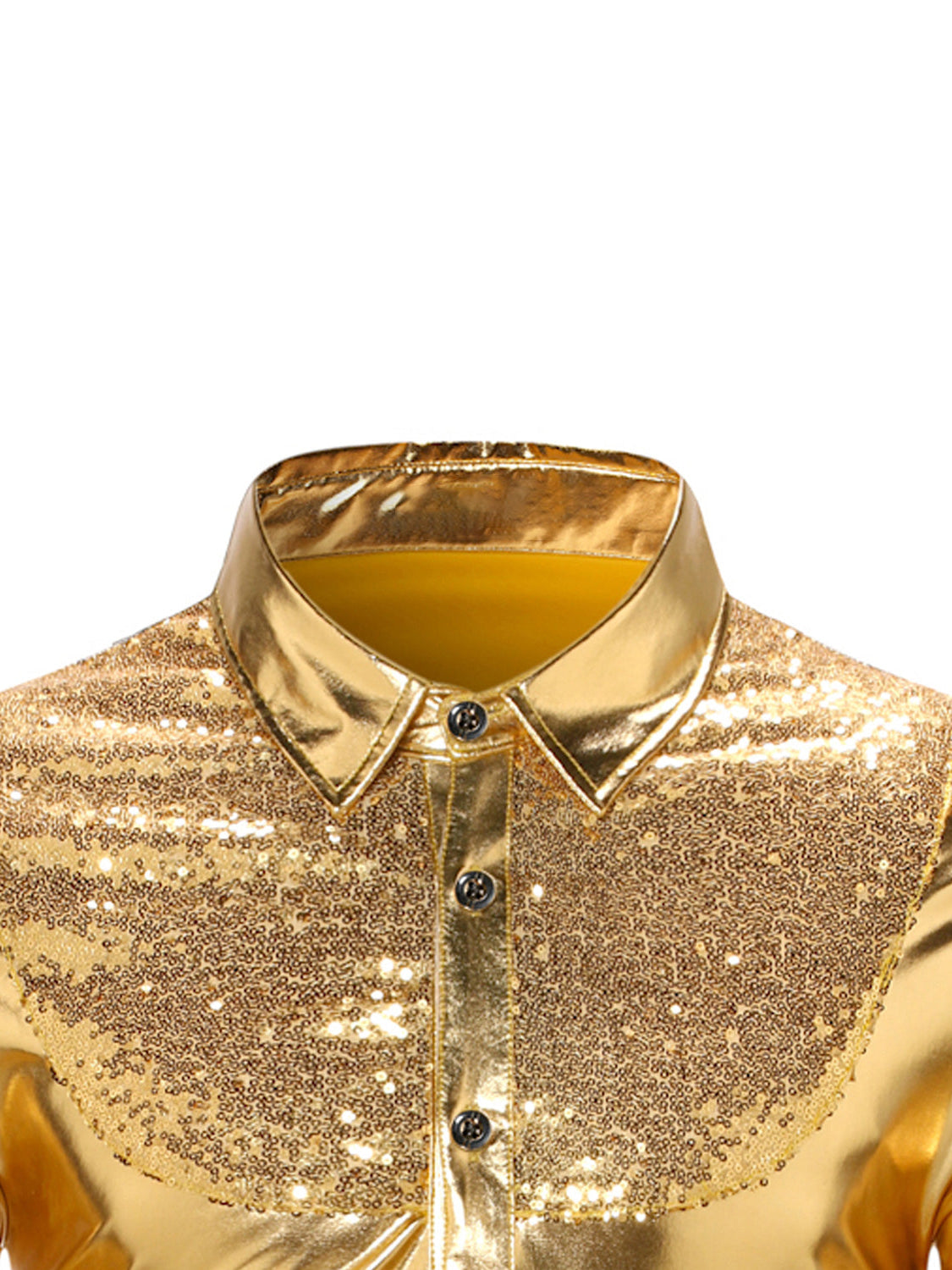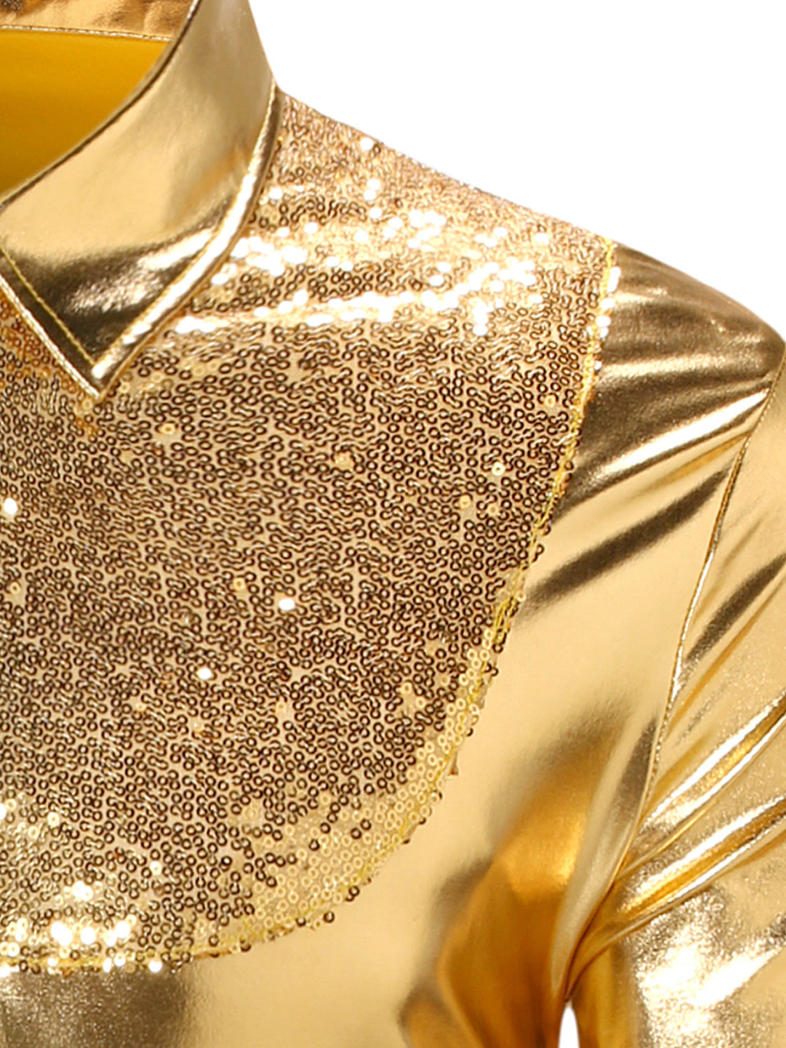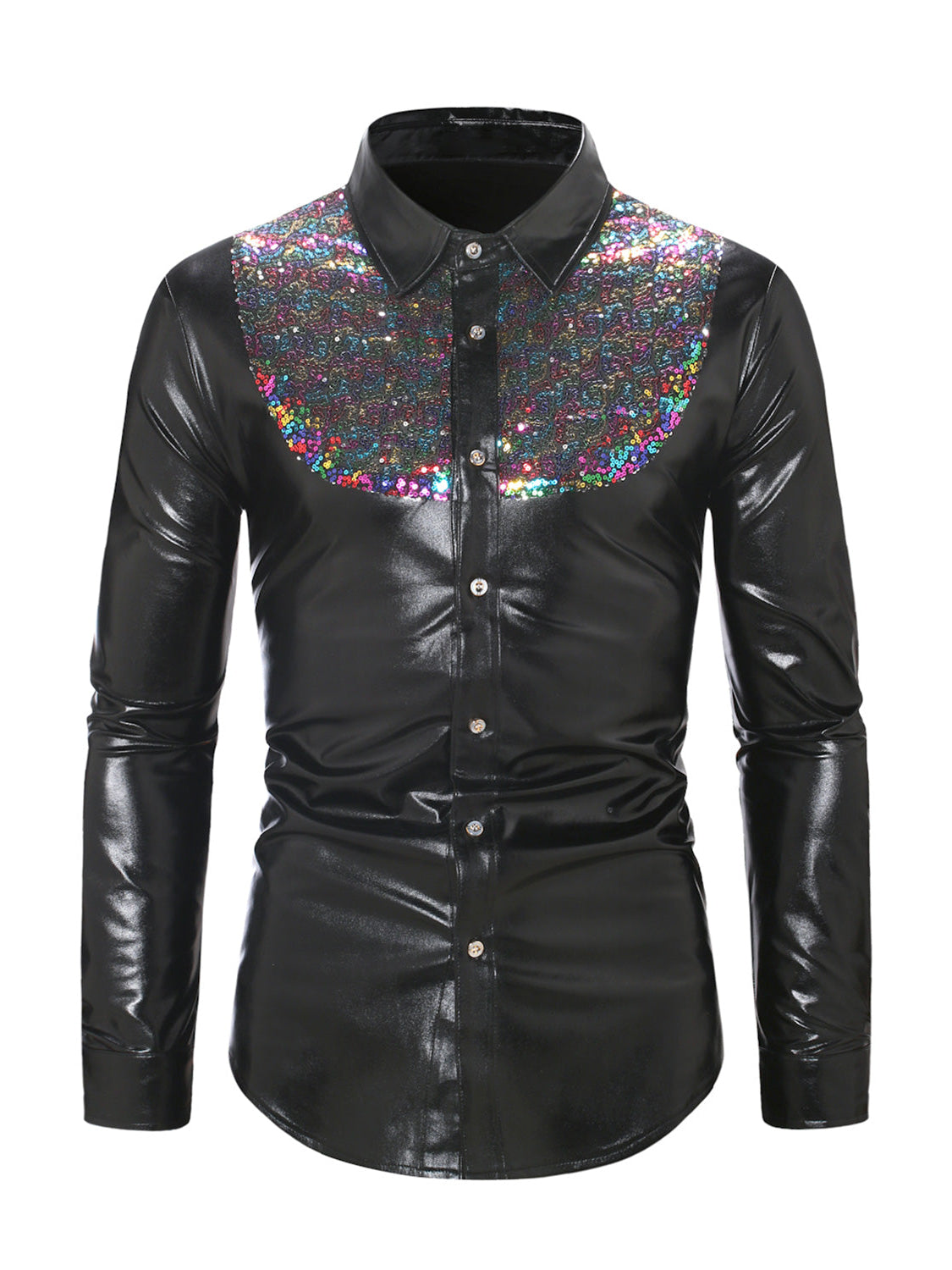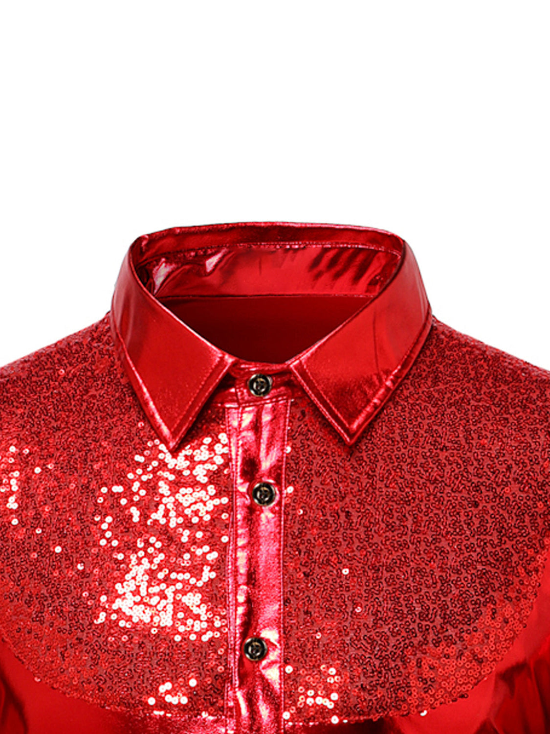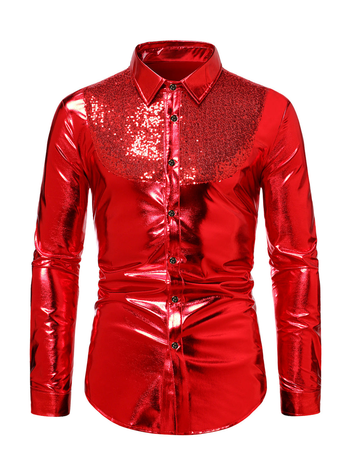 Men's Satin Smooth Button Up Tuxedo Long Sleeve Party Dress Shirt