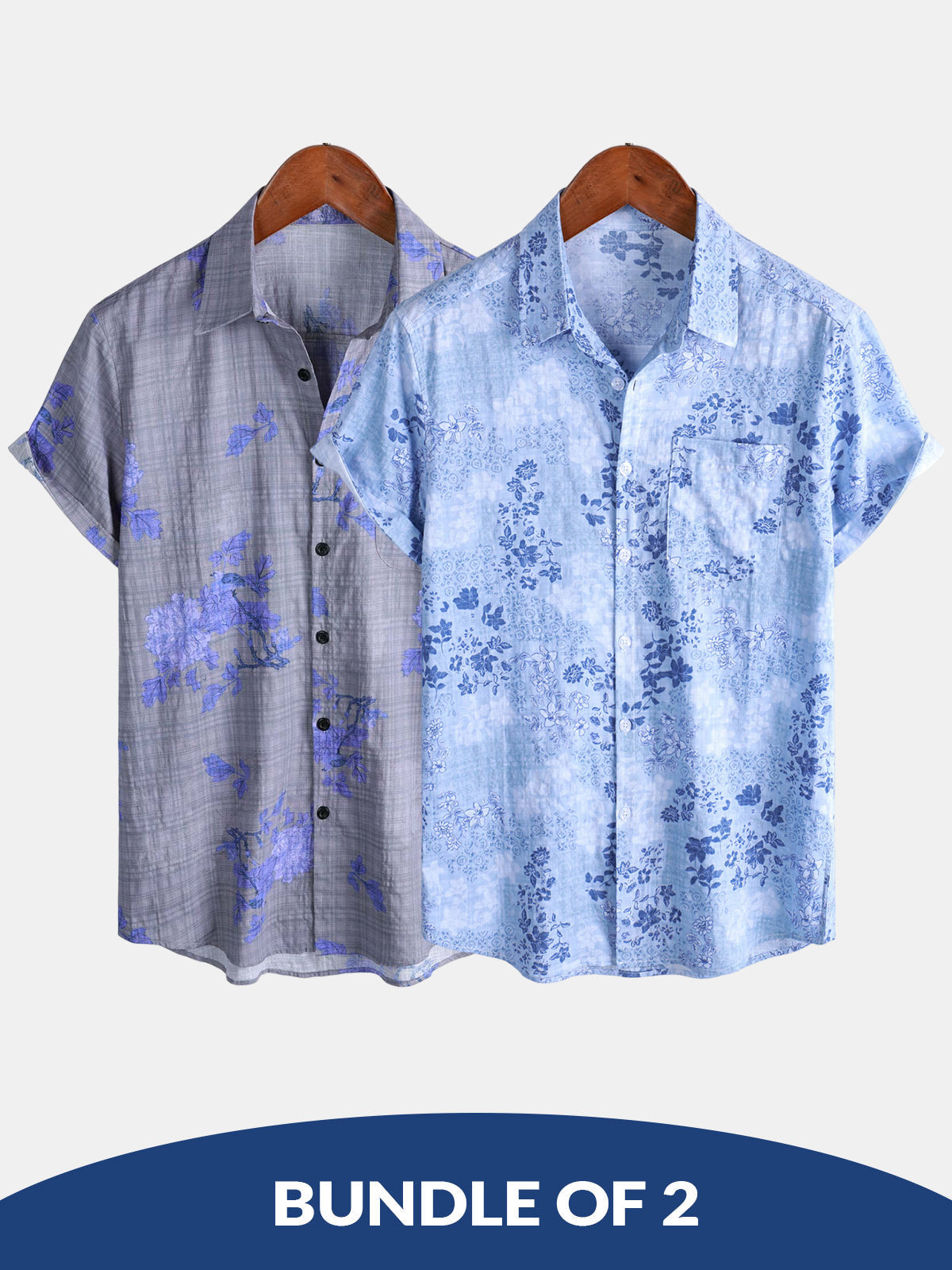 Bundle Of 2 | Men's Blue Floral Print Short Sleeve Shirt