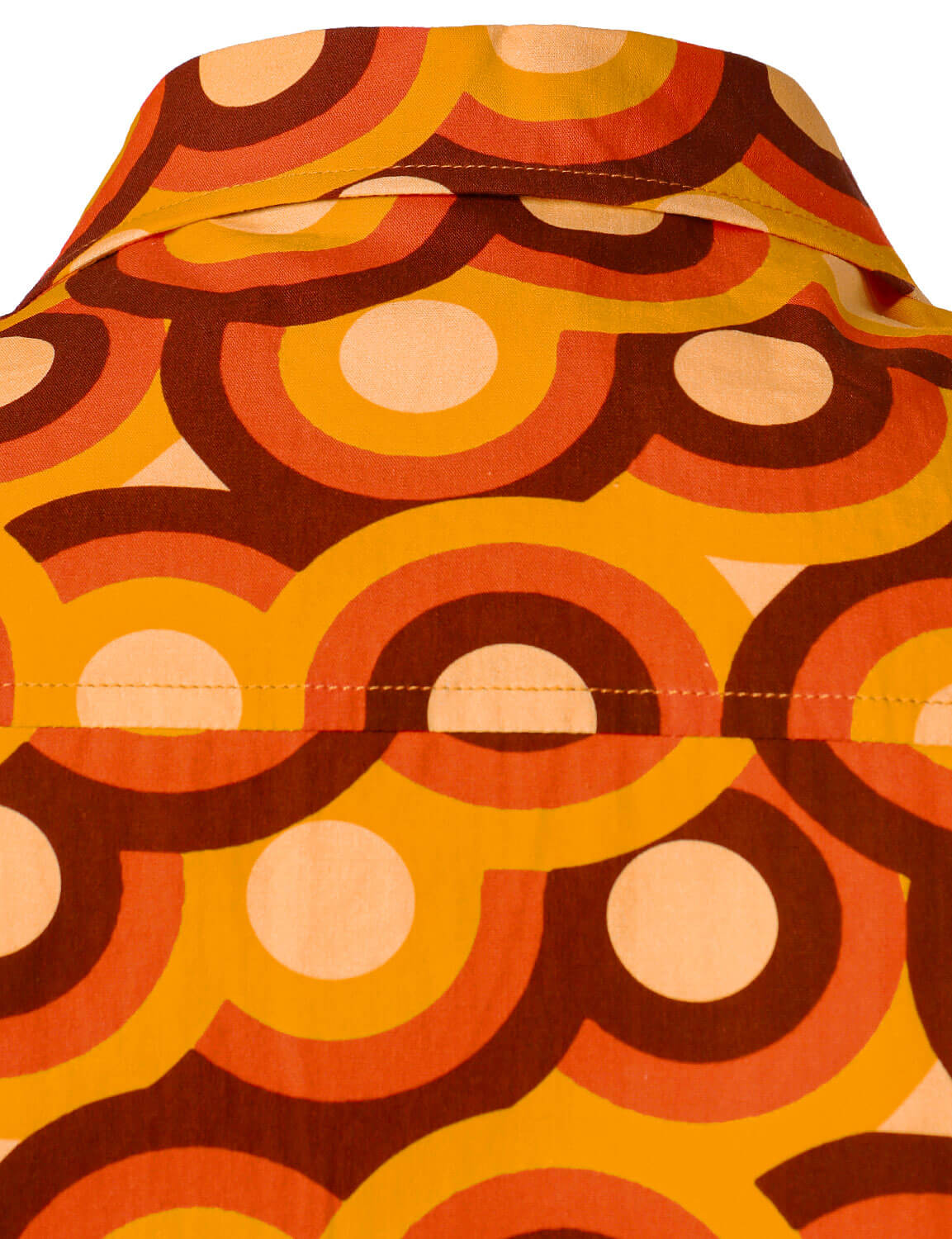 Bundle Of 2 | Men's Orange 70s Retro Vintage Geometric Circle Long Sleeve Shirt & Disco Slim Fit Retro Flared Trousers