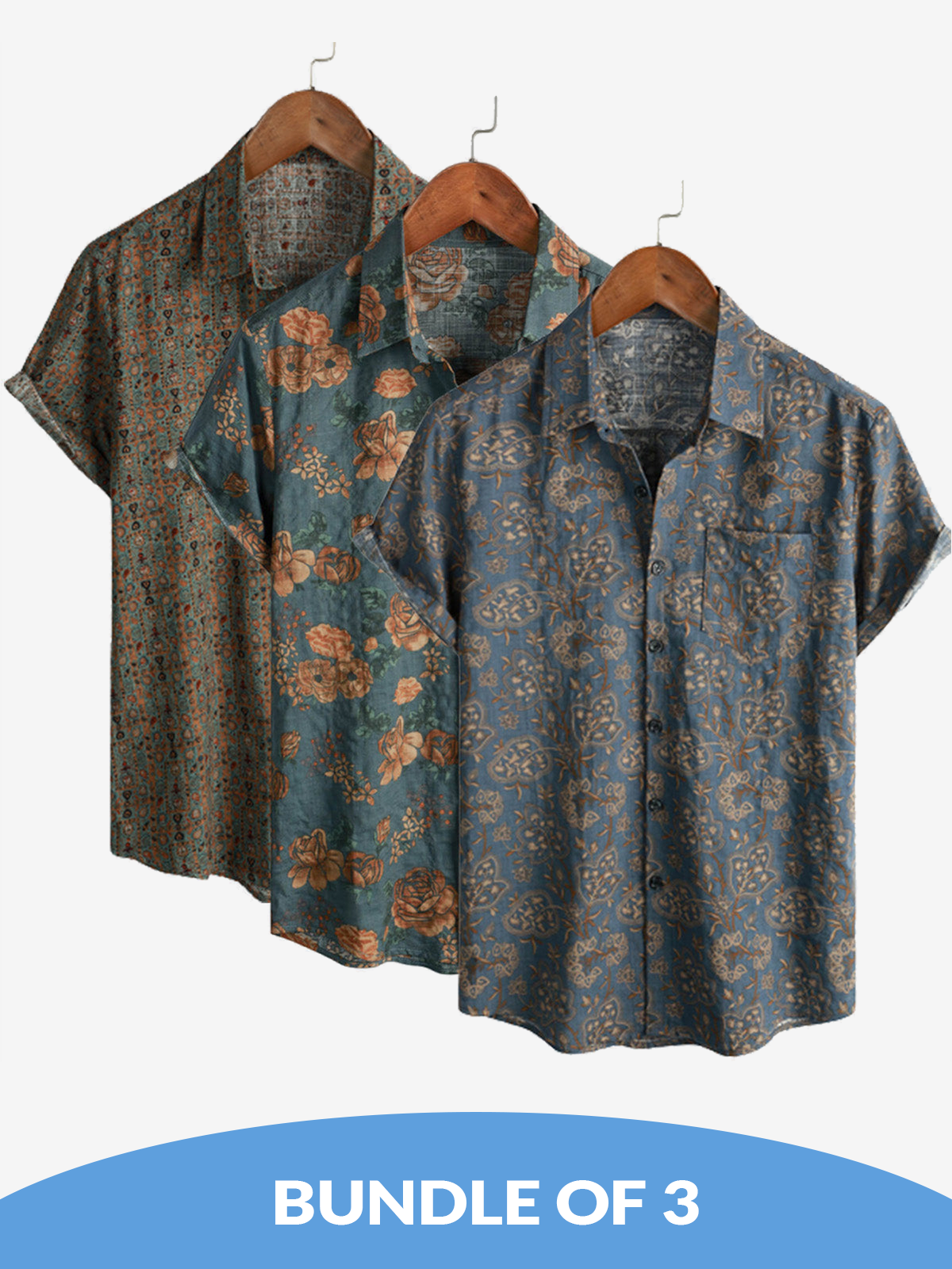 Bundle Of 3 | Men's Vintage Floral Retro Summer Holiday Short Sleeve Shirts