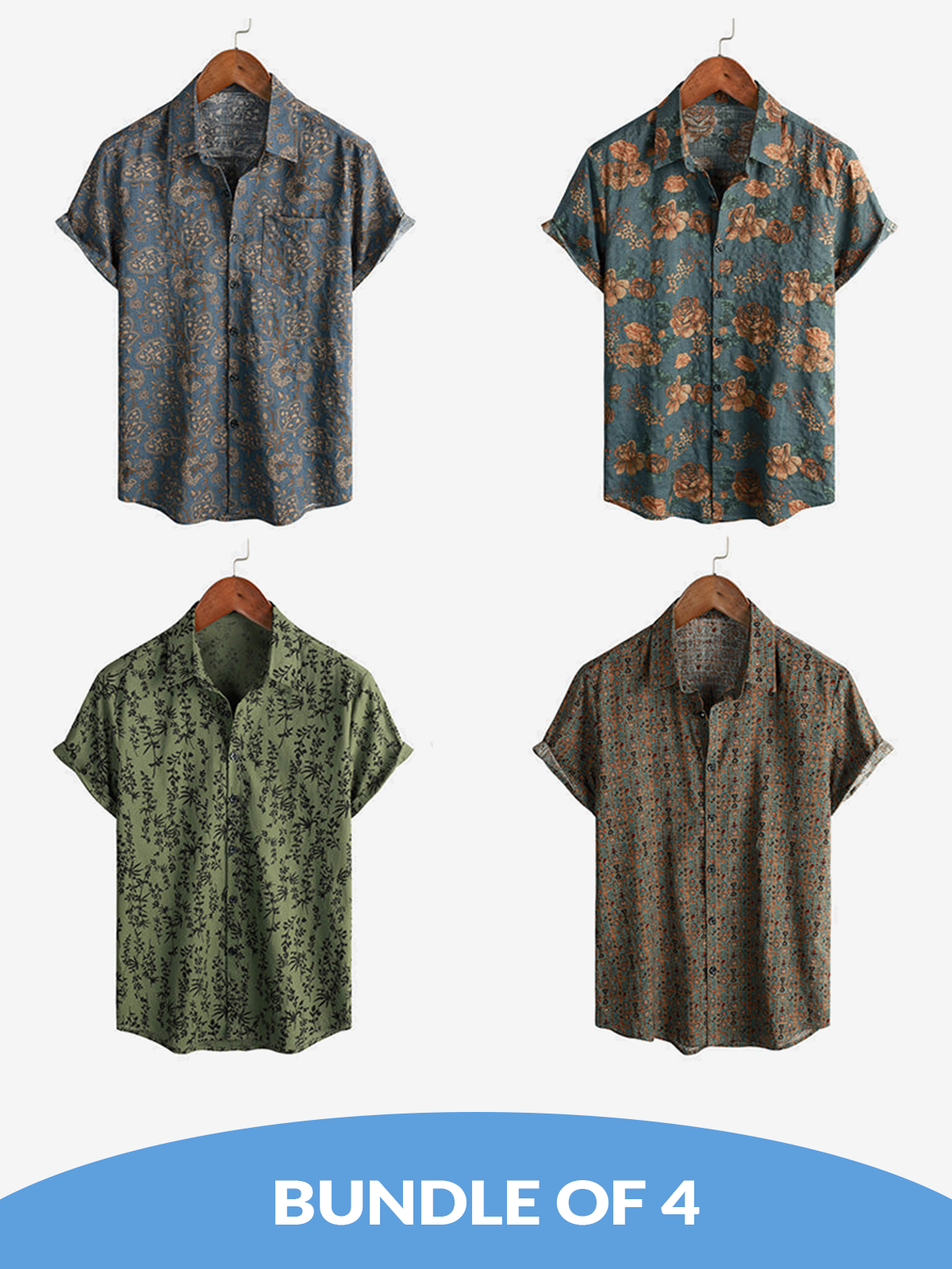 Bundle Of 4 | Men's Hawaiian Summer Vintage Floral Holiday Cruise Short Sleeve Shirts