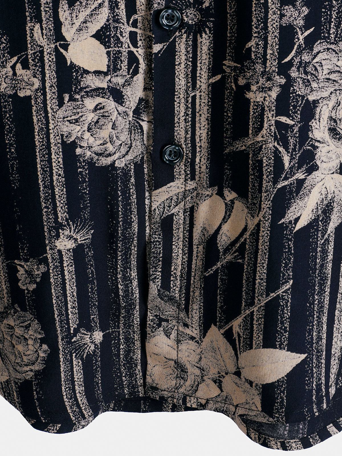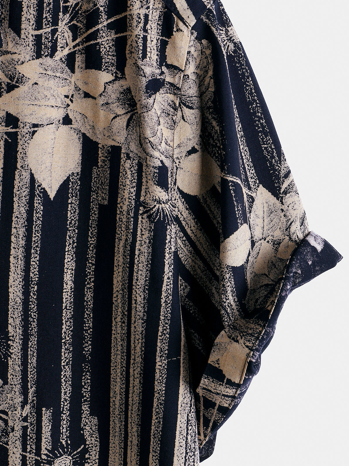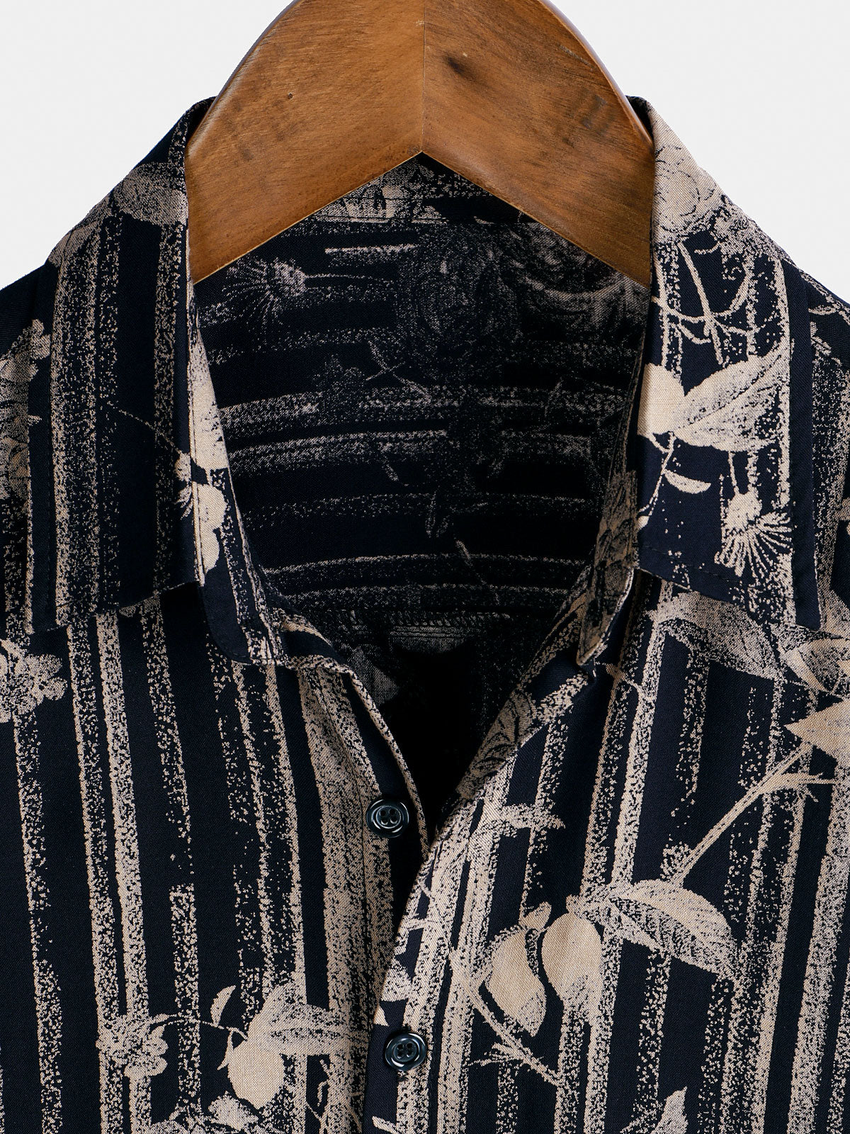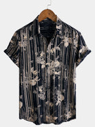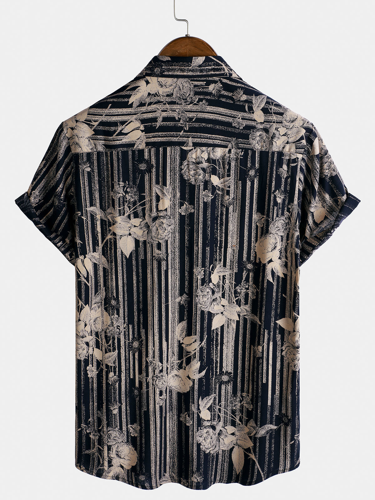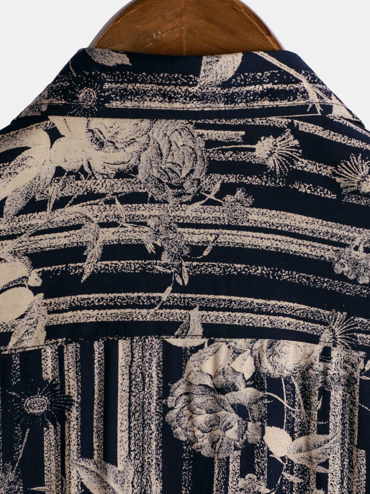 Men's Breathable Rayon Vintage Floral Print Vacation Striped Shirt