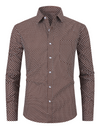 Men's Casual Print Button Up Brown Vintage Long Sleeve Dress Shirt