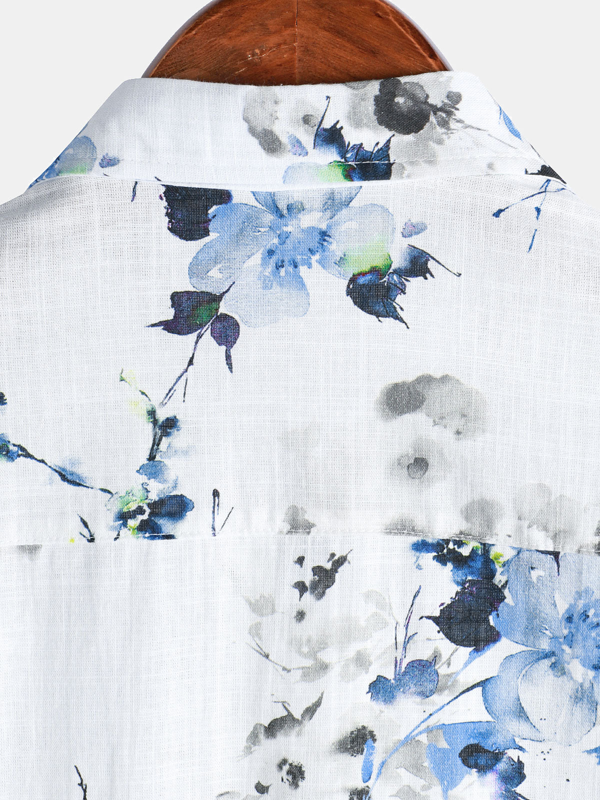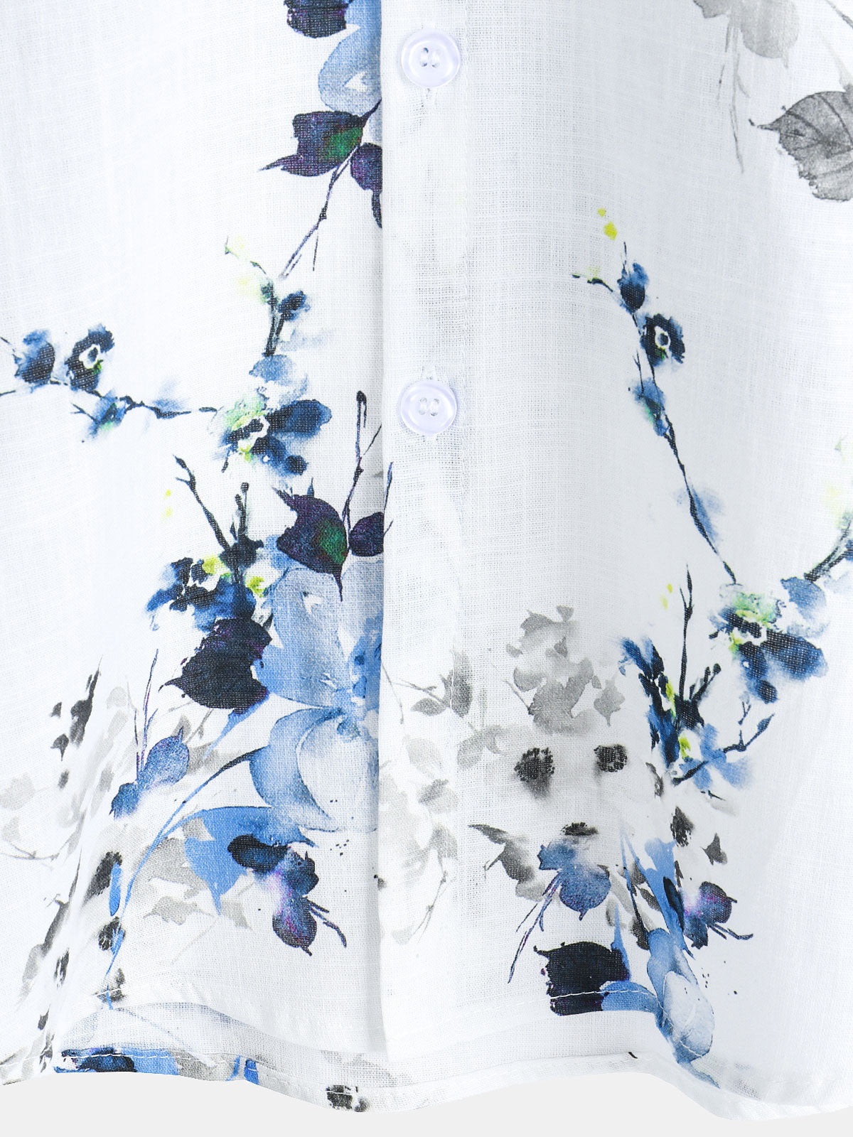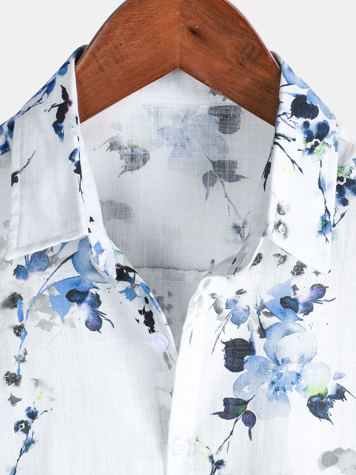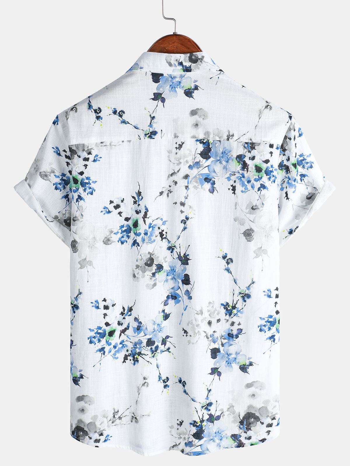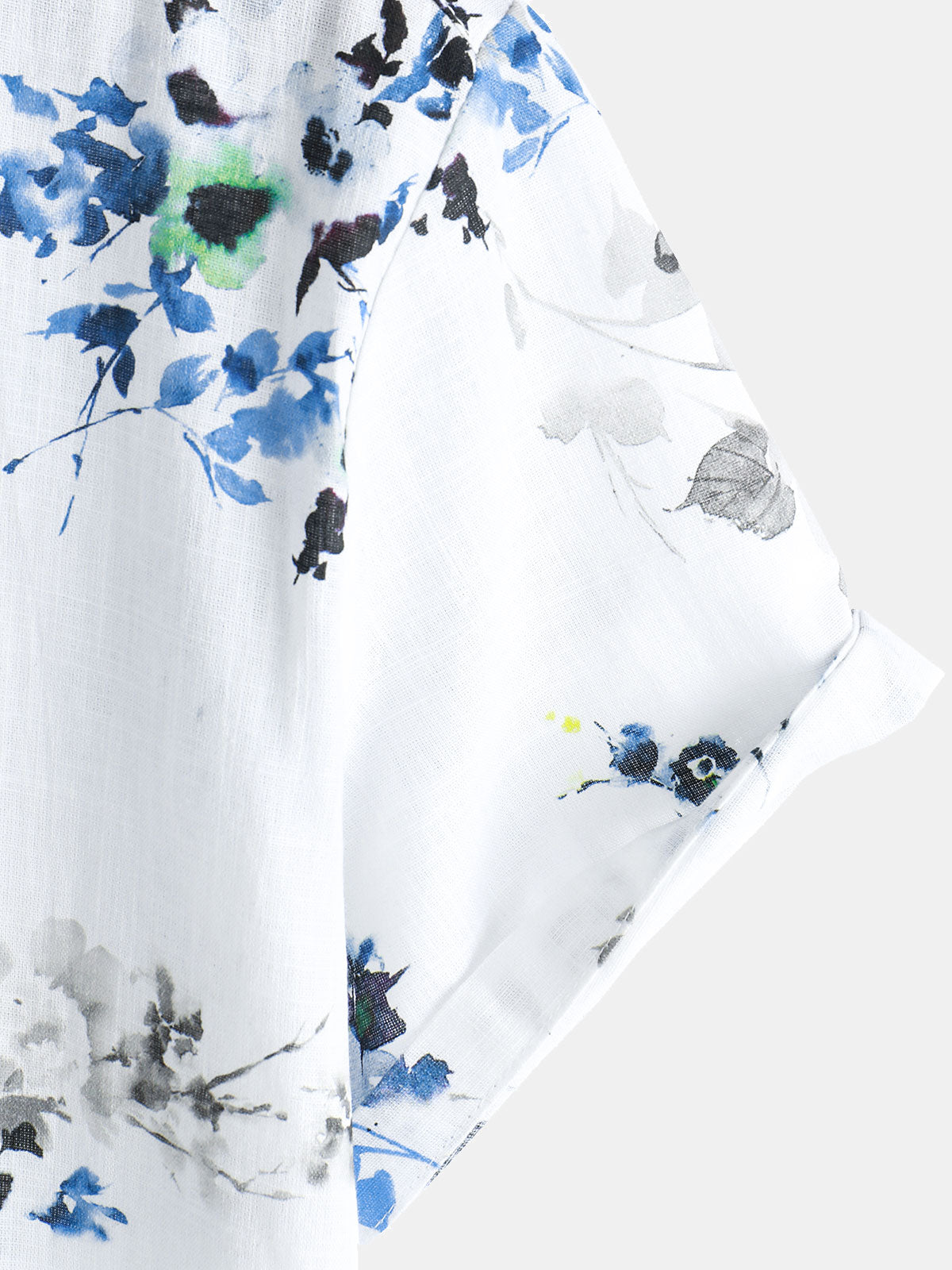 Men's Casual Summer Vintage Floral Print Short Sleeve Cotton Shirt