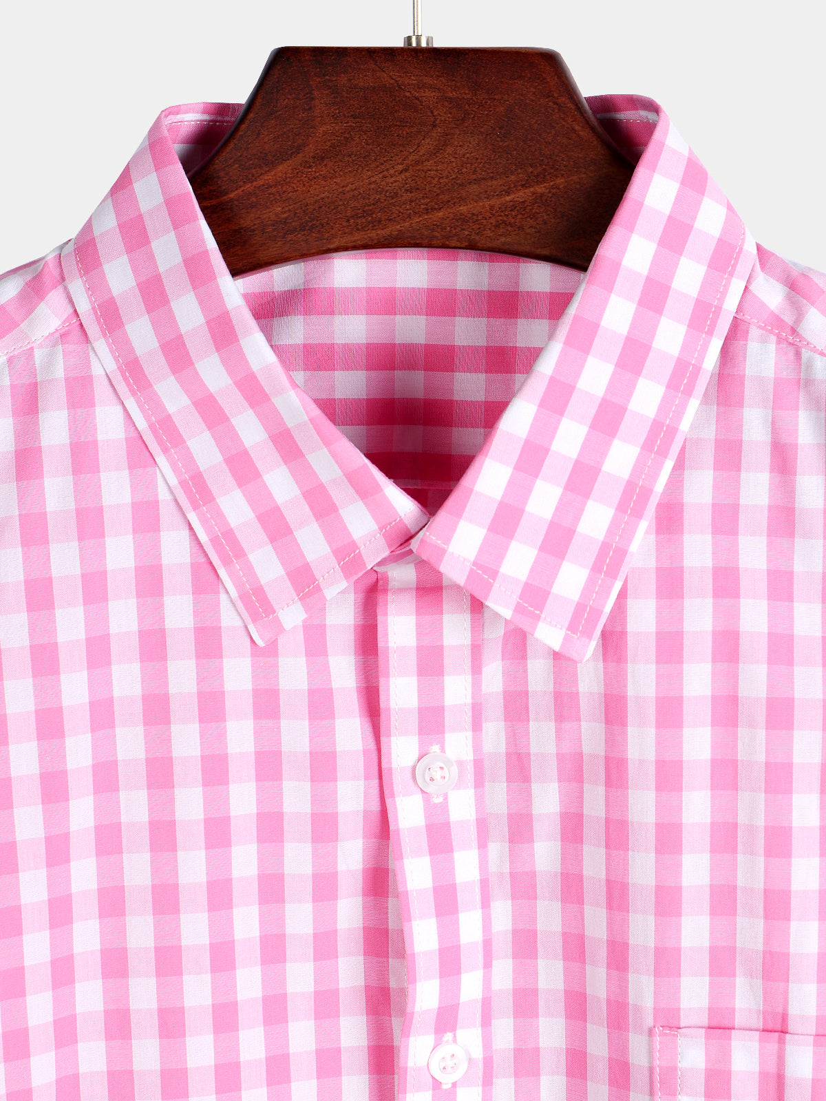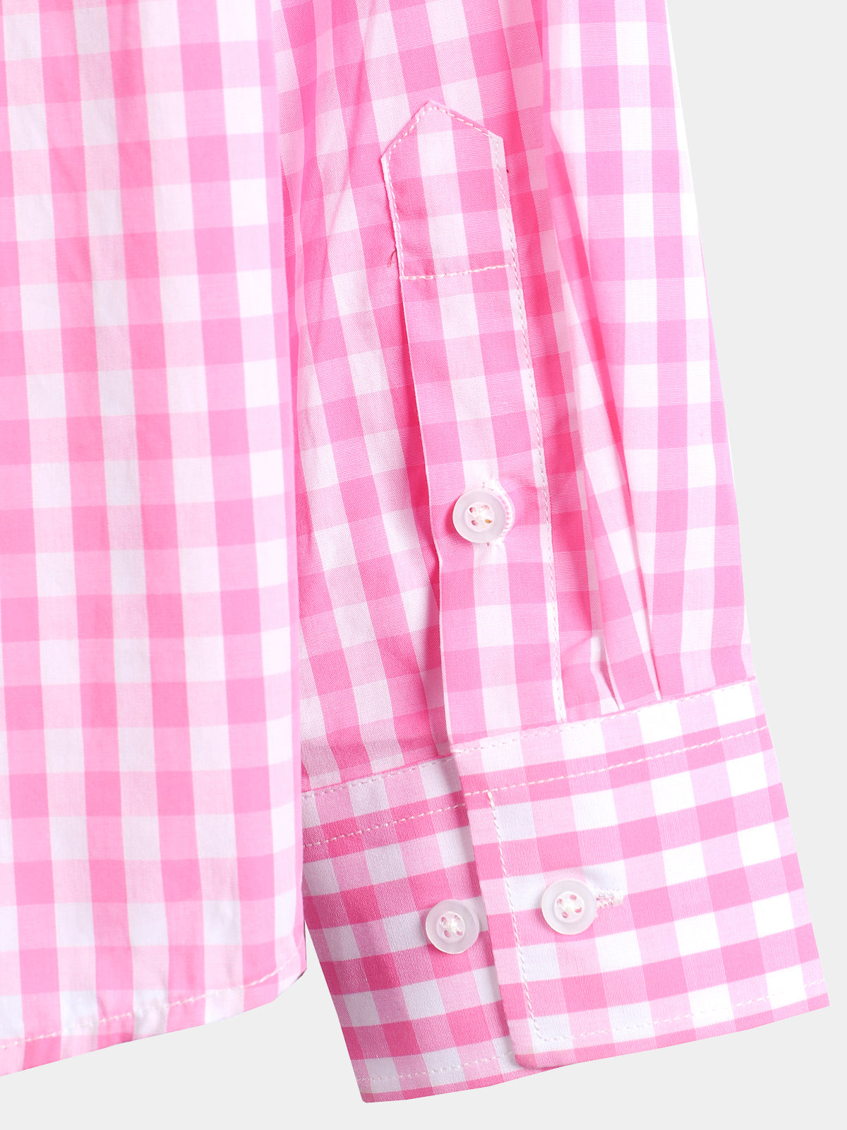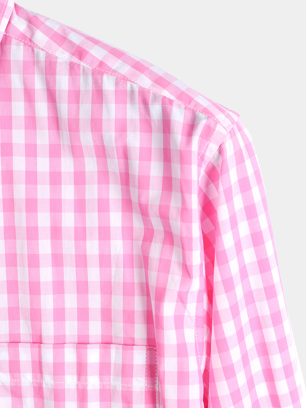 Men's 100% Cotton Long Sleeve Pink Plaid Print Shirt