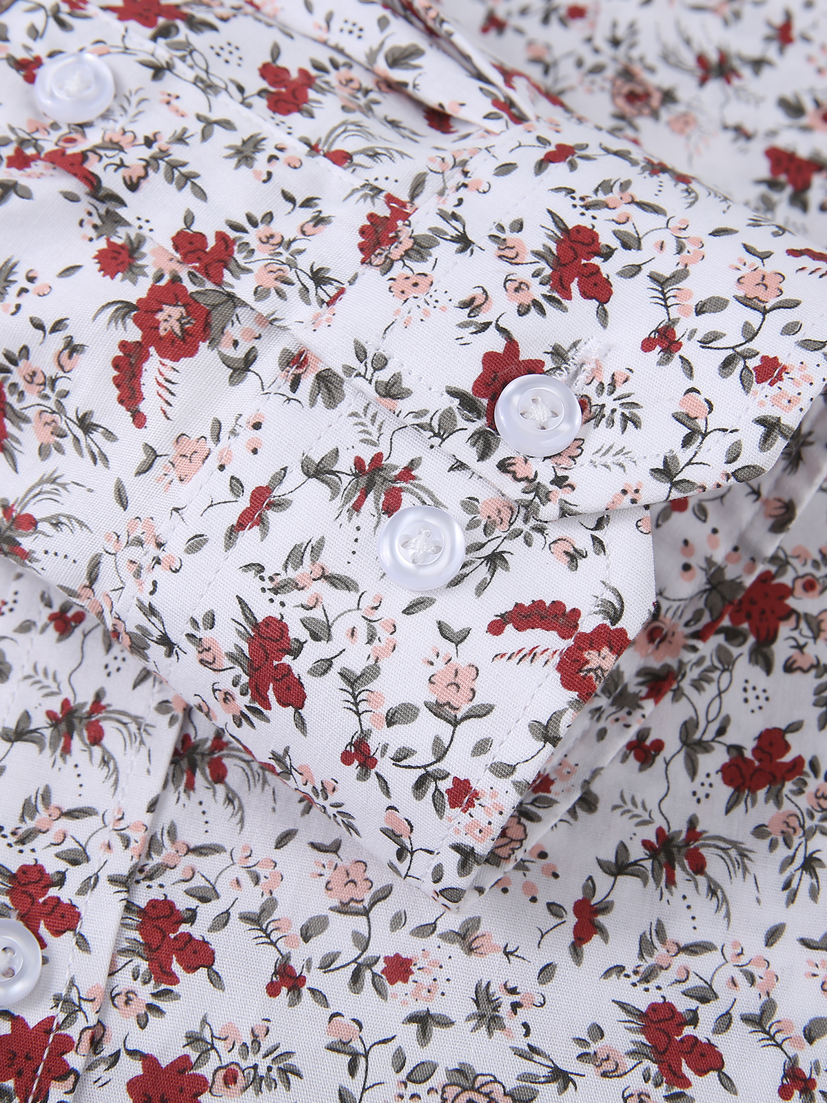 Men's Floral Print Vintage Button Up Long Sleeve Dress Shirt