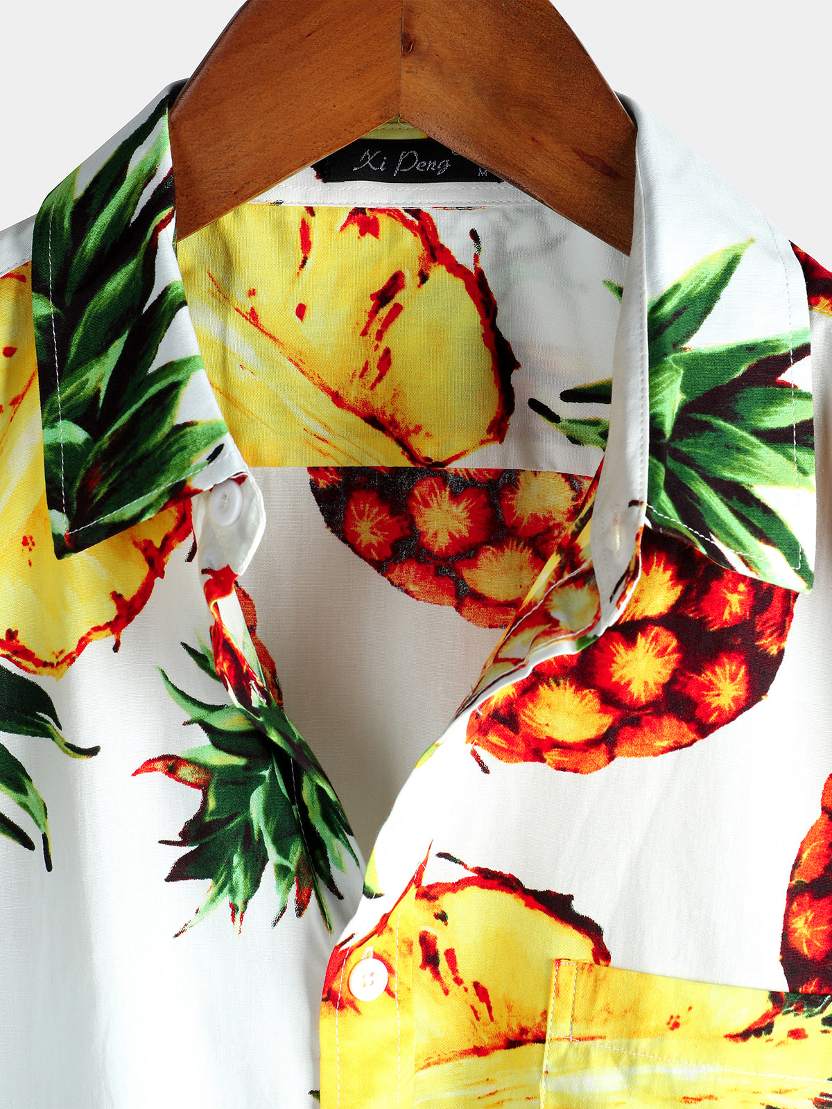 Men's Pineapple Print Holiday Pocket Cotton Shirt