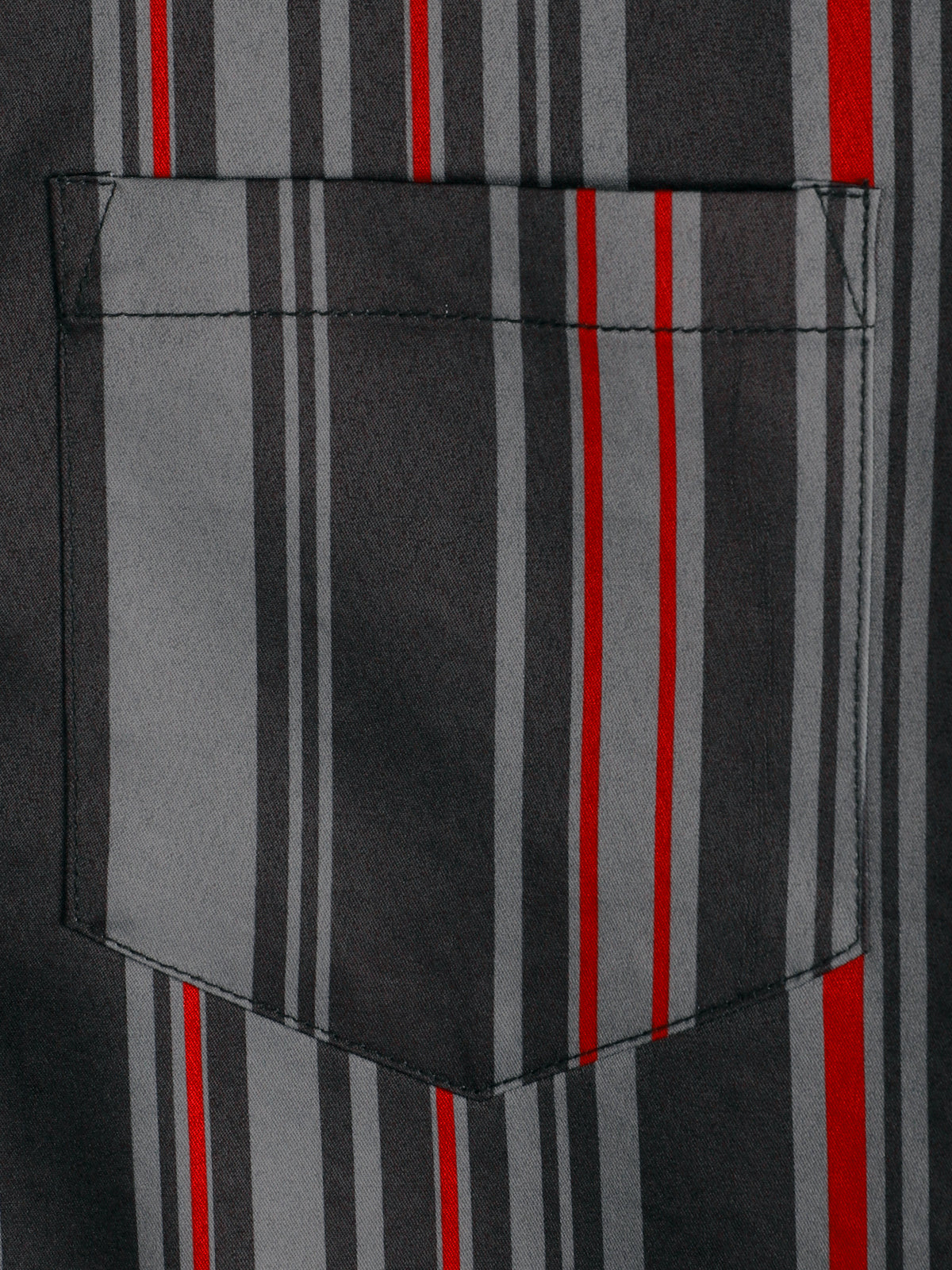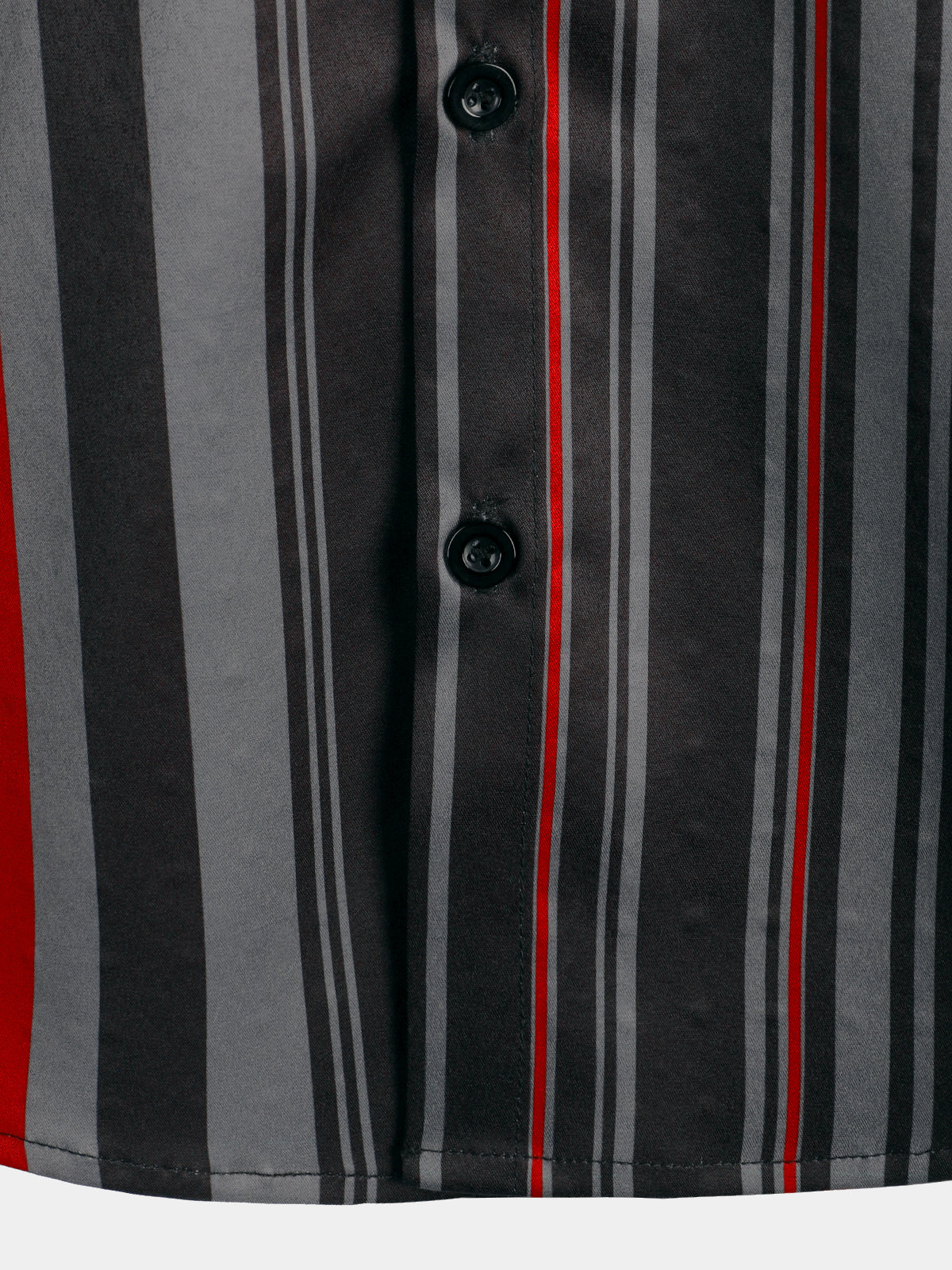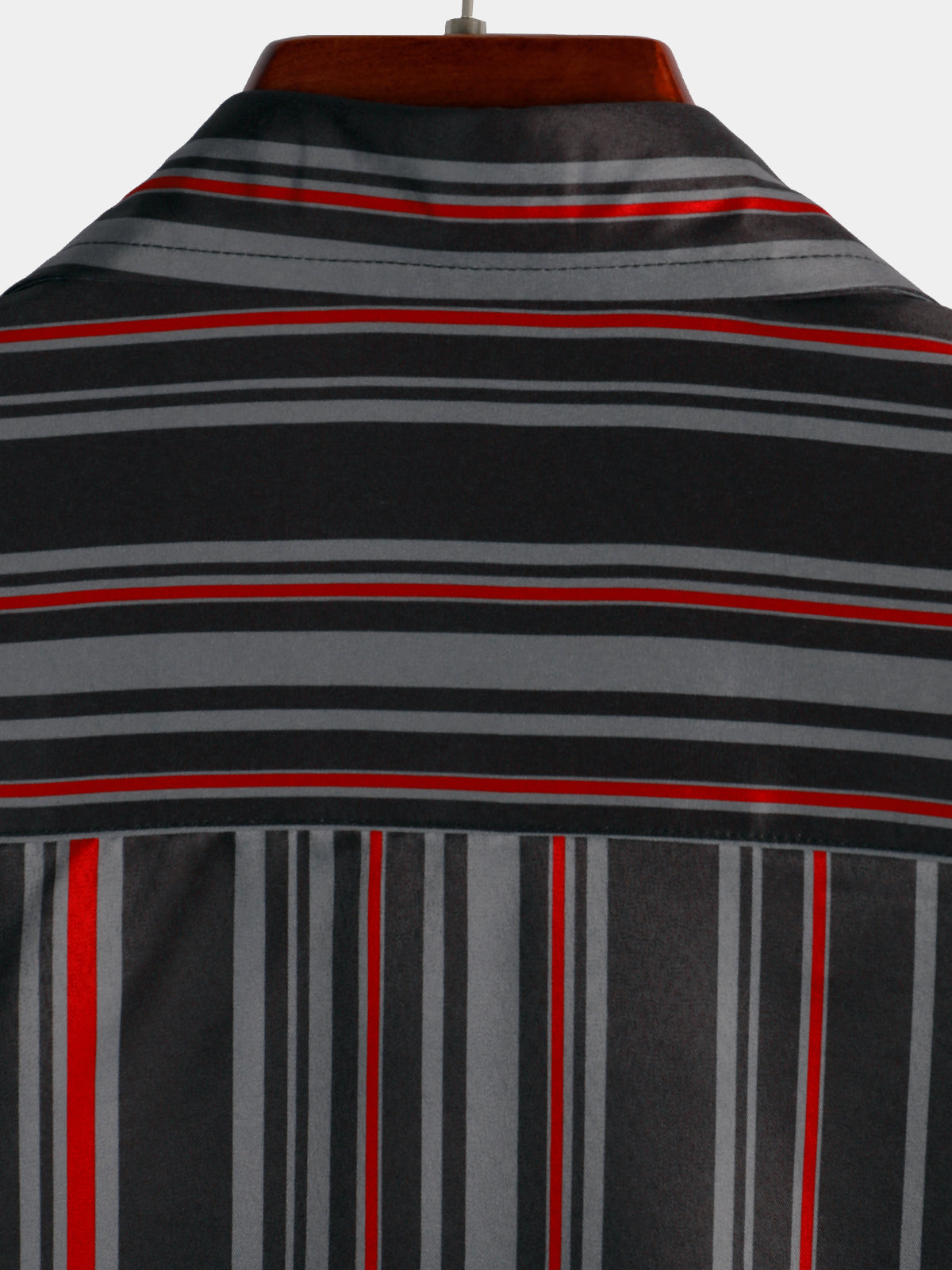 Men's Retro Black And Red Vertical Striped Pocket Vintage 70s Short Sleeve Shirt