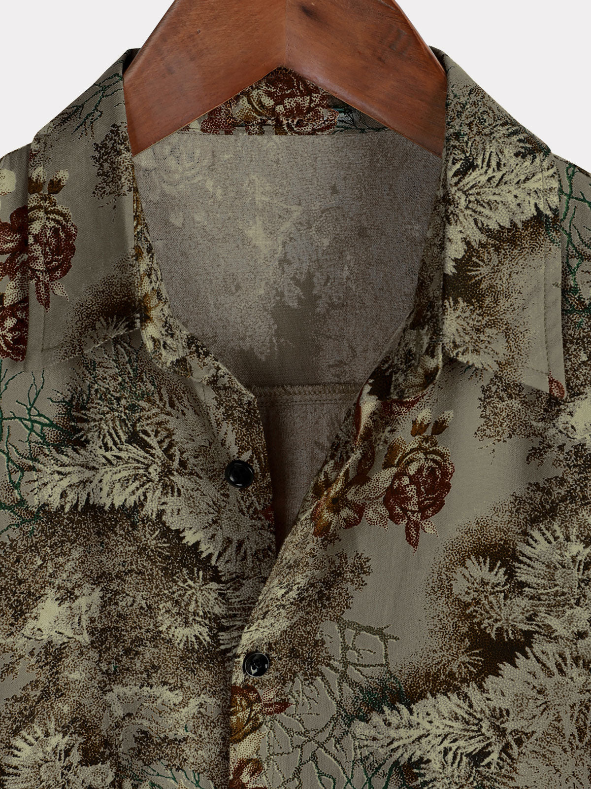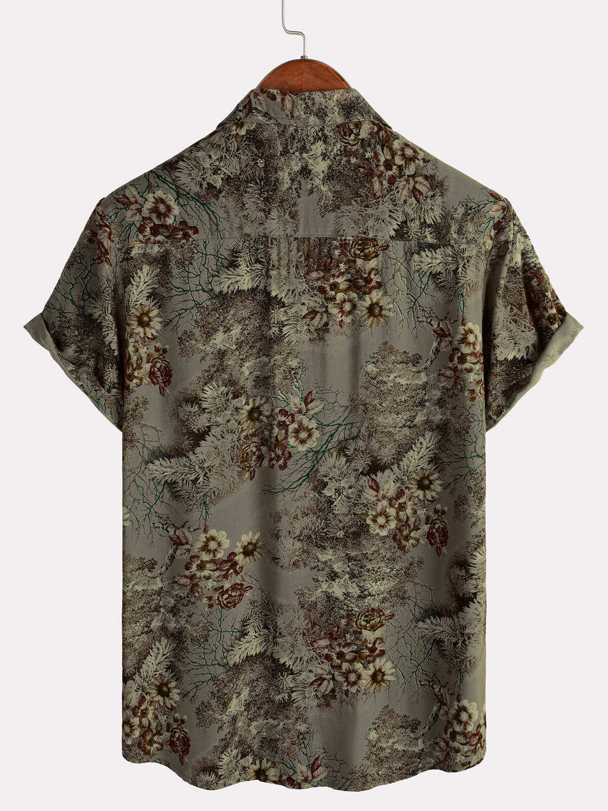 Men's Retro Floral Casual Vintage Summer Holiday Short Sleeve Shirt