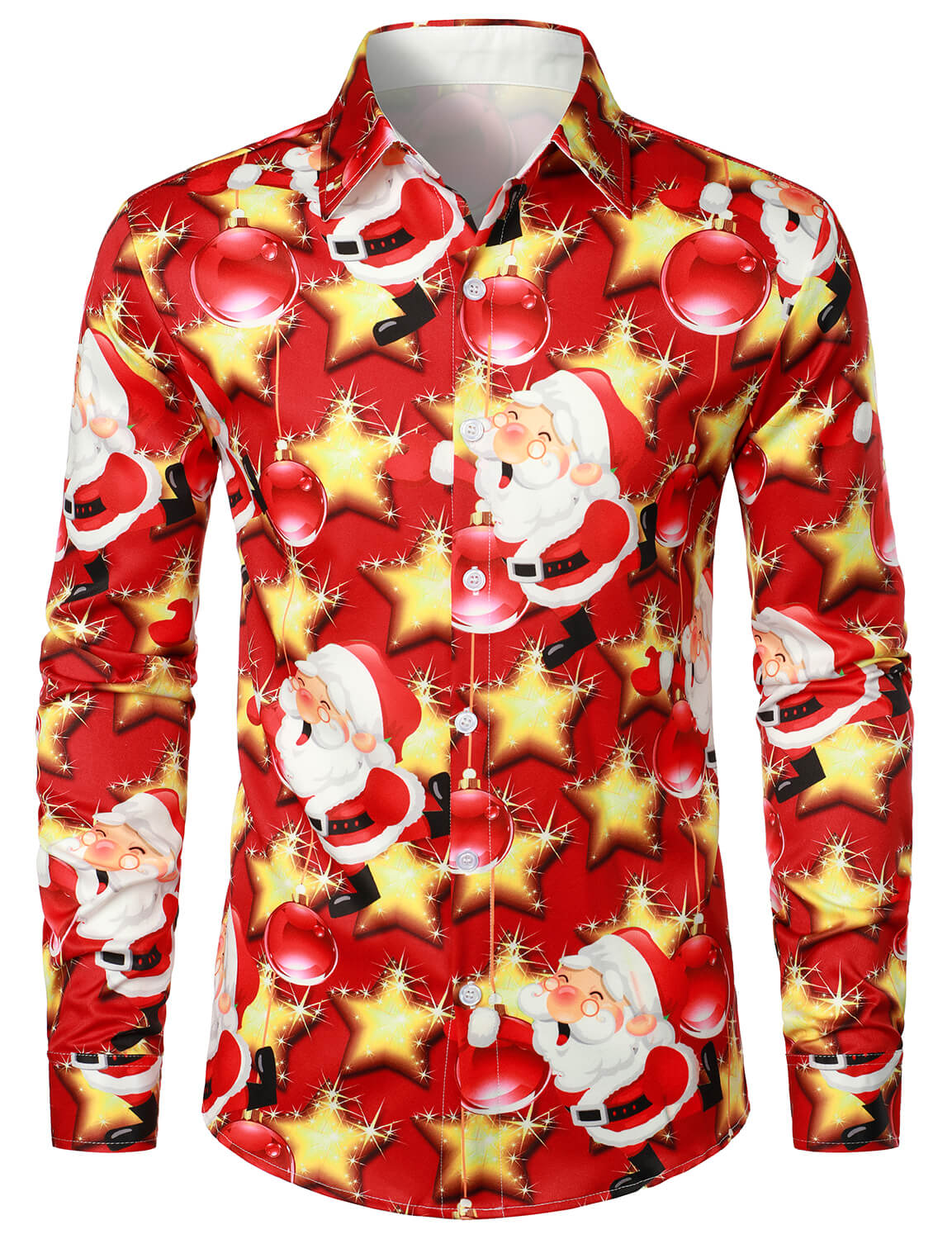 Men's Santa Claus Shiny Stars Christmas Party Funny Holiday Long Sleeve Shirt