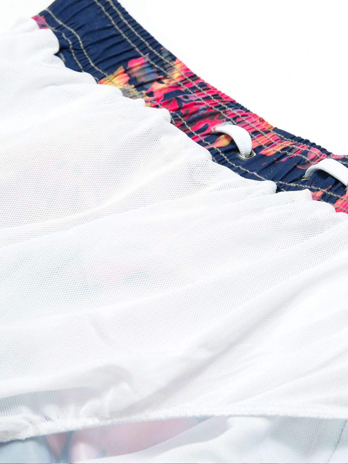 Men's Summer Tropical Leaf Print Beach Shorts Navy Blue Swimming Trunks