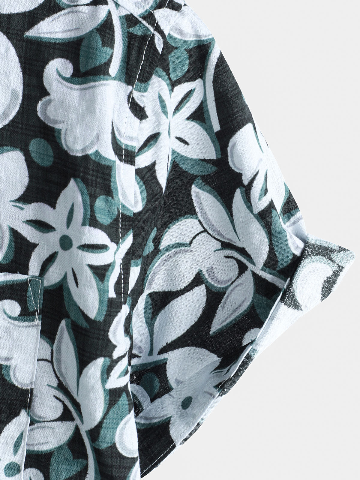 Men's Tropical Vintage Floral Short Sleeve Holiday Shirt