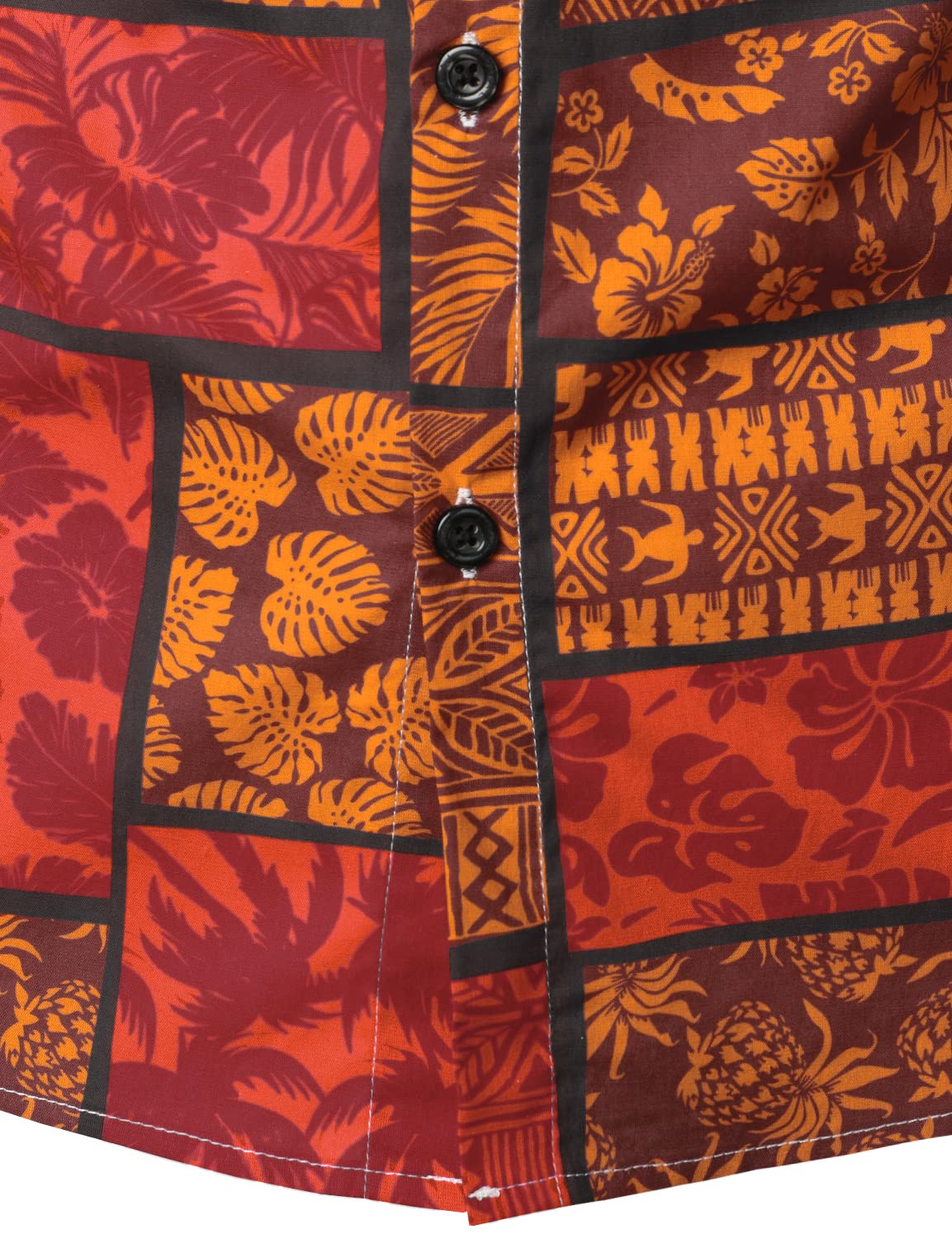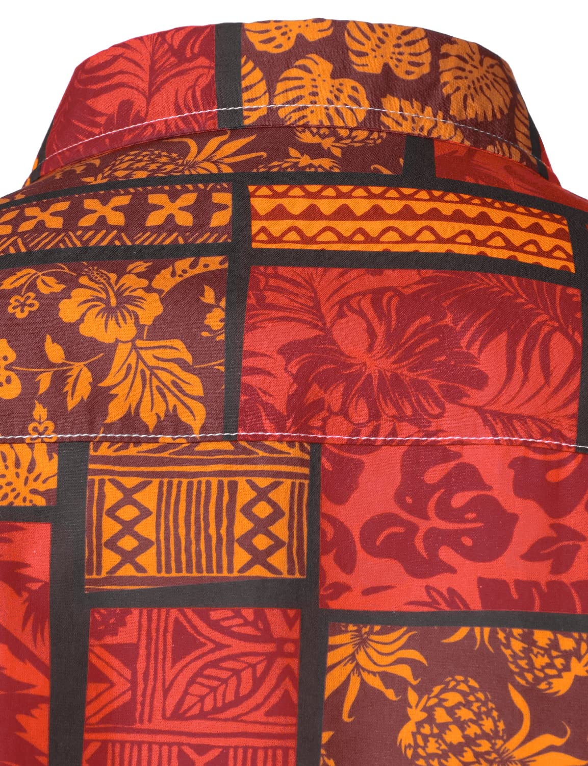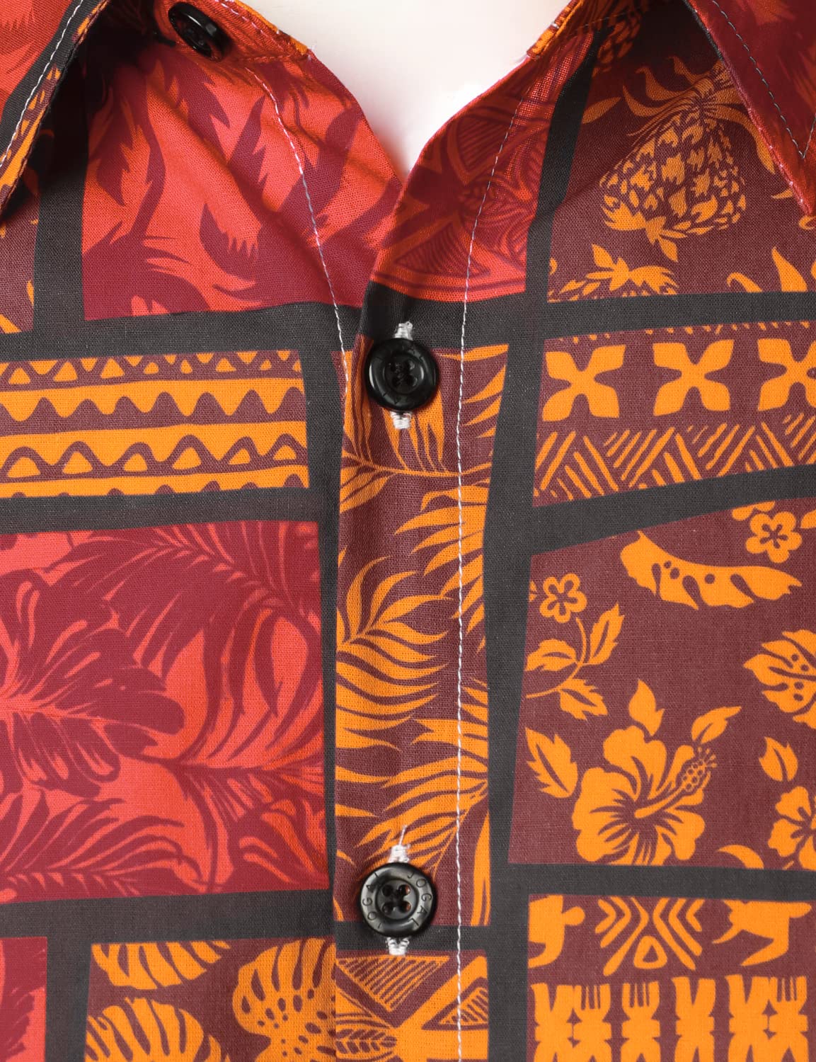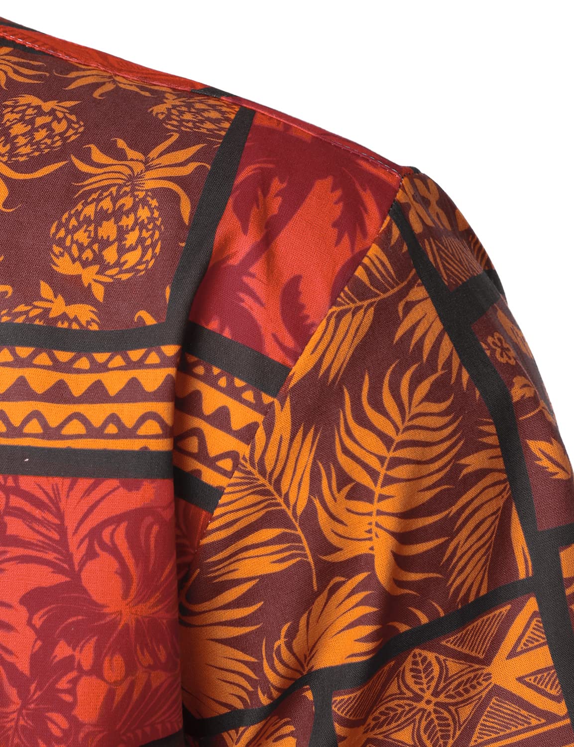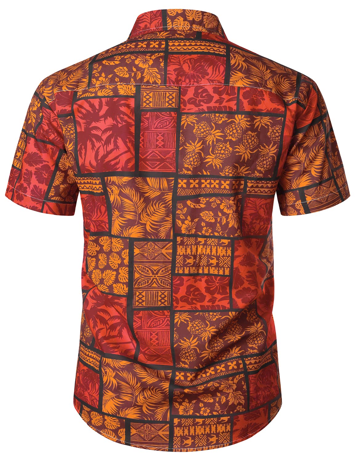 Men's Tropical Vintage Hawaiiwan Red Cotton Pineapple Floral Beach Button Short Sleeve Shirt