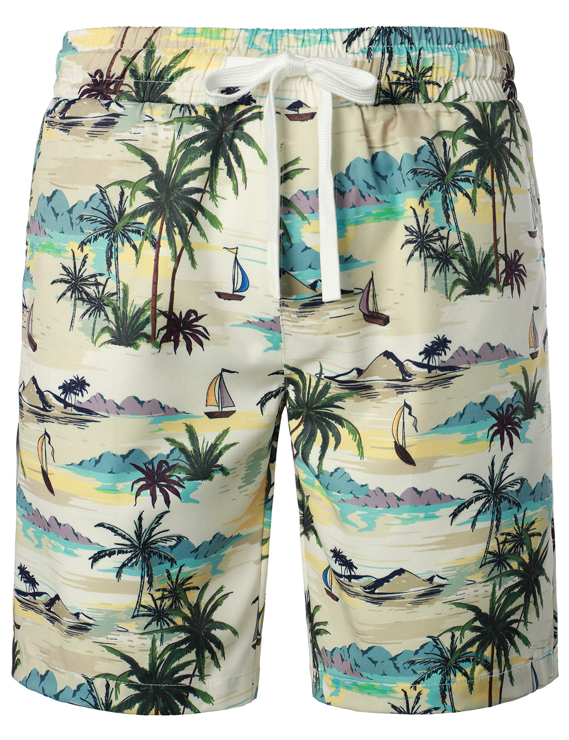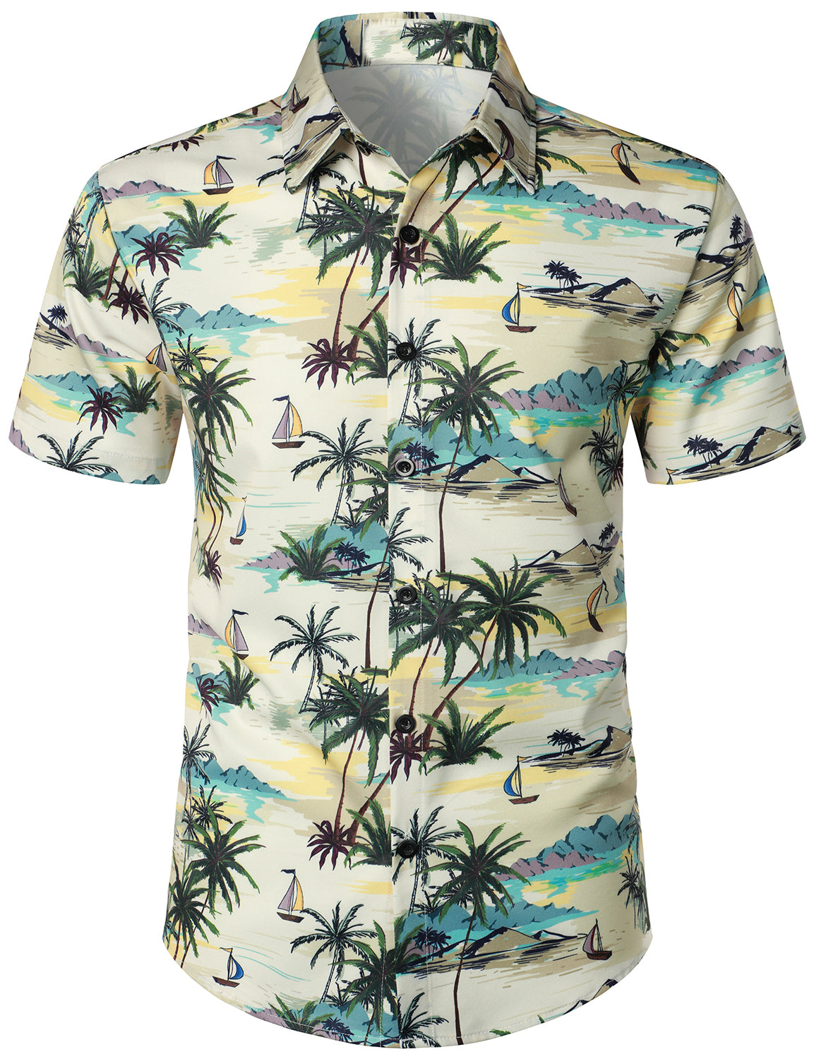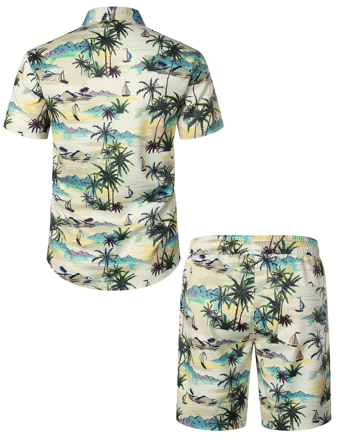 Men's Palm Tree Beige Island Summer Casual Hawaiian Matching Shirt and Shorts Set