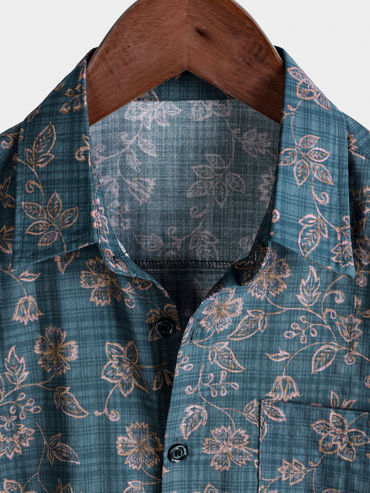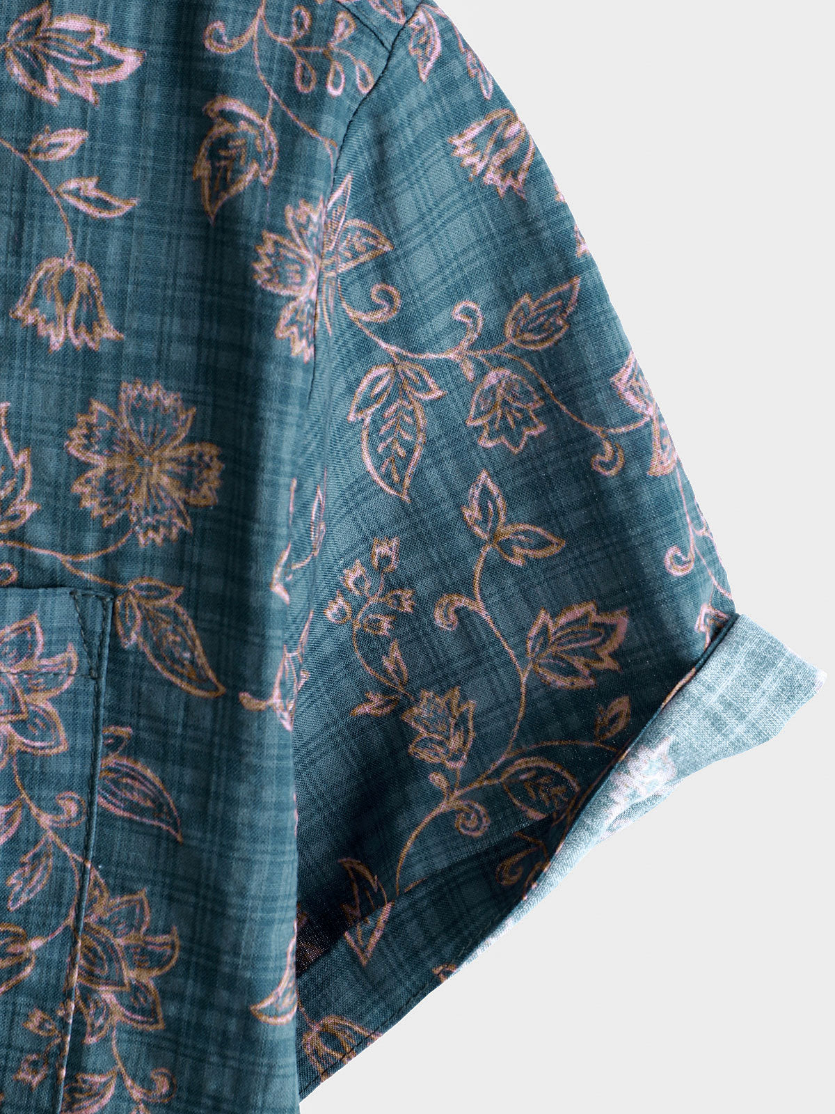 Men's Vintage Floral Breathable Cotton Short Sleeve Shirt