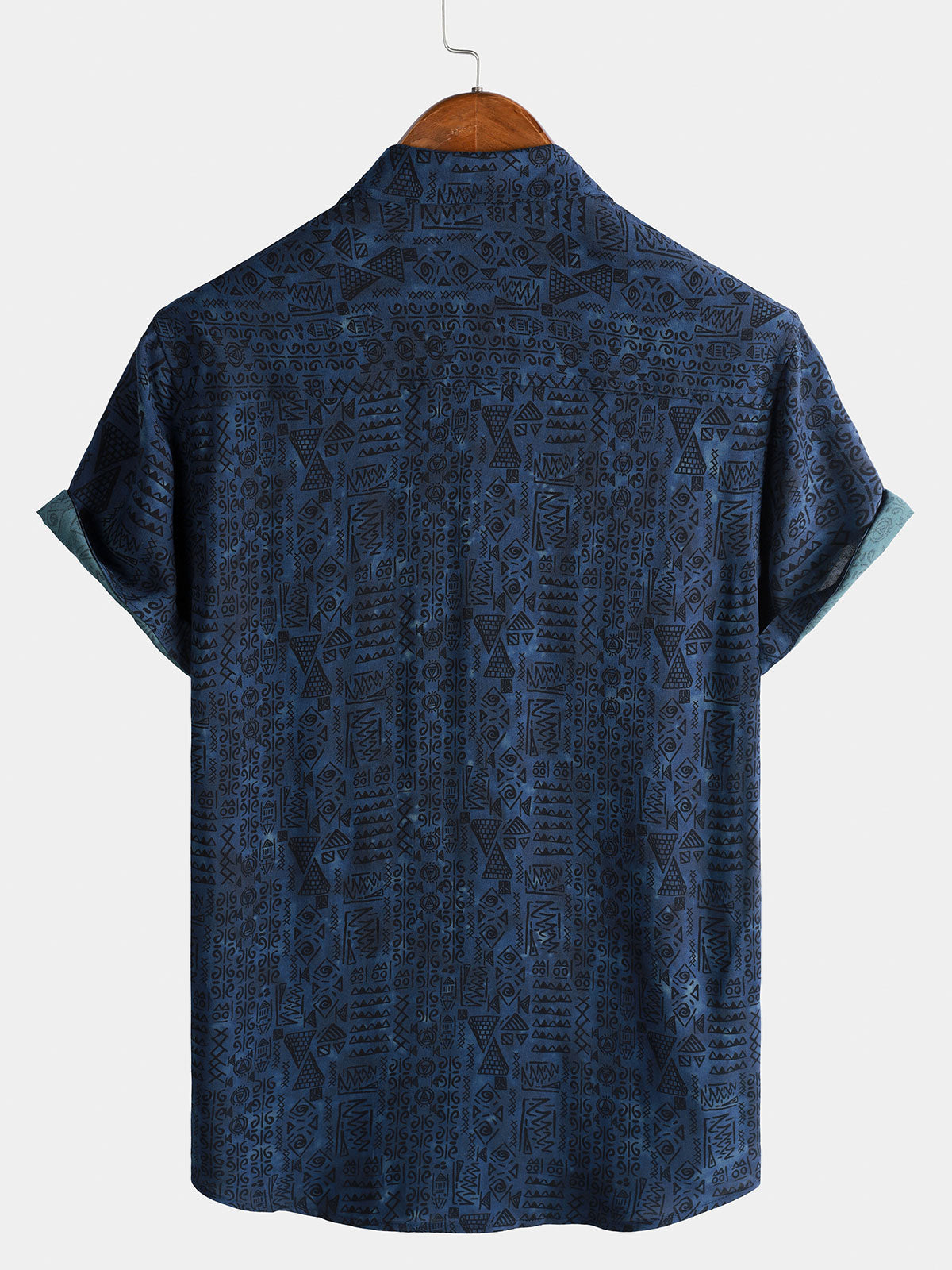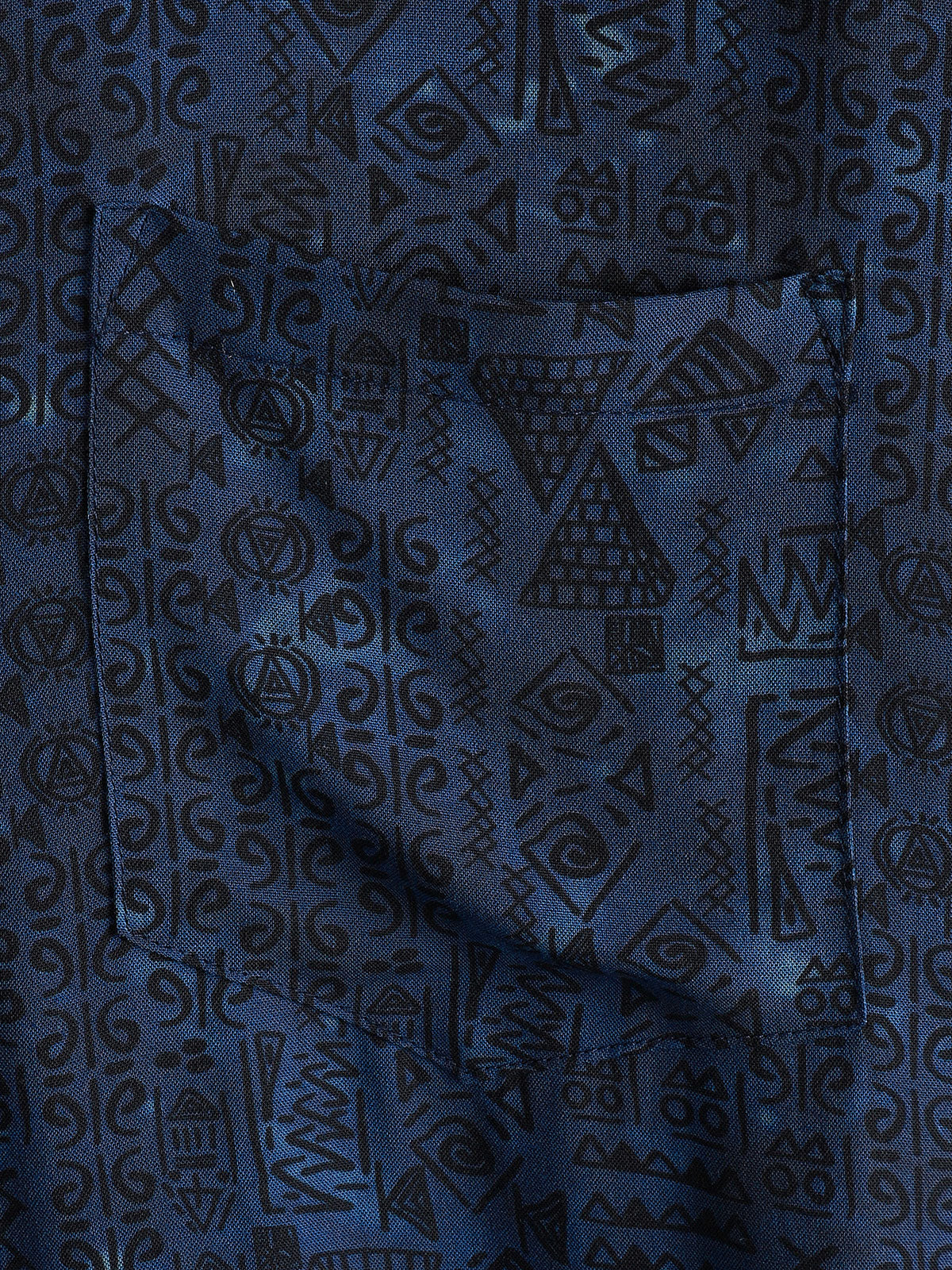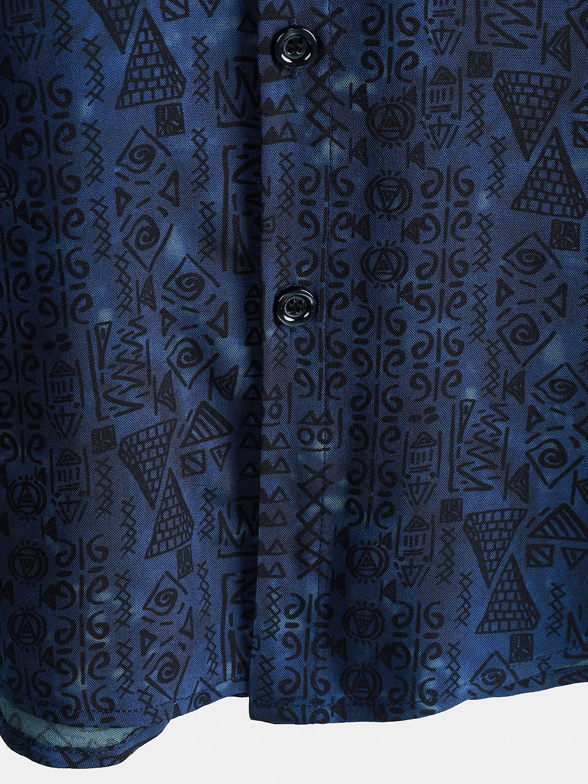 Men's Rayon Navy Blue Geometric Tribal Print Boho Short Sleeve Shirt