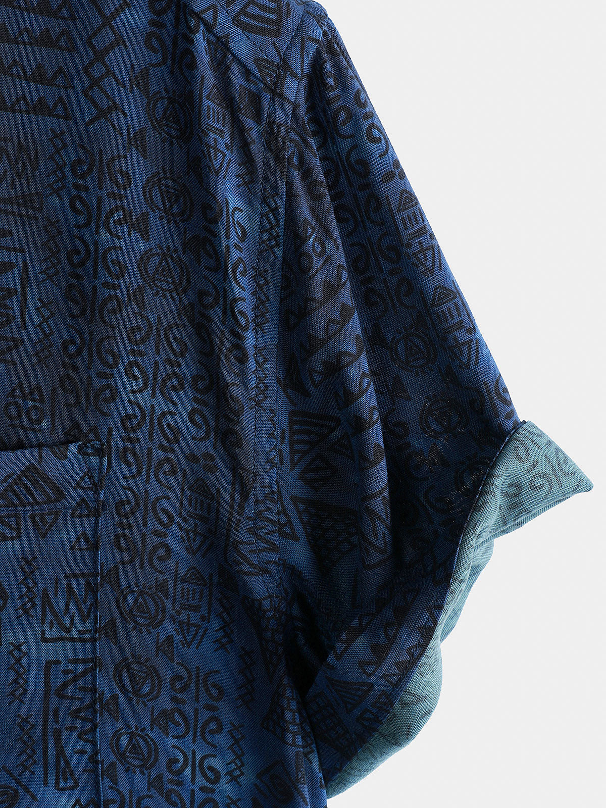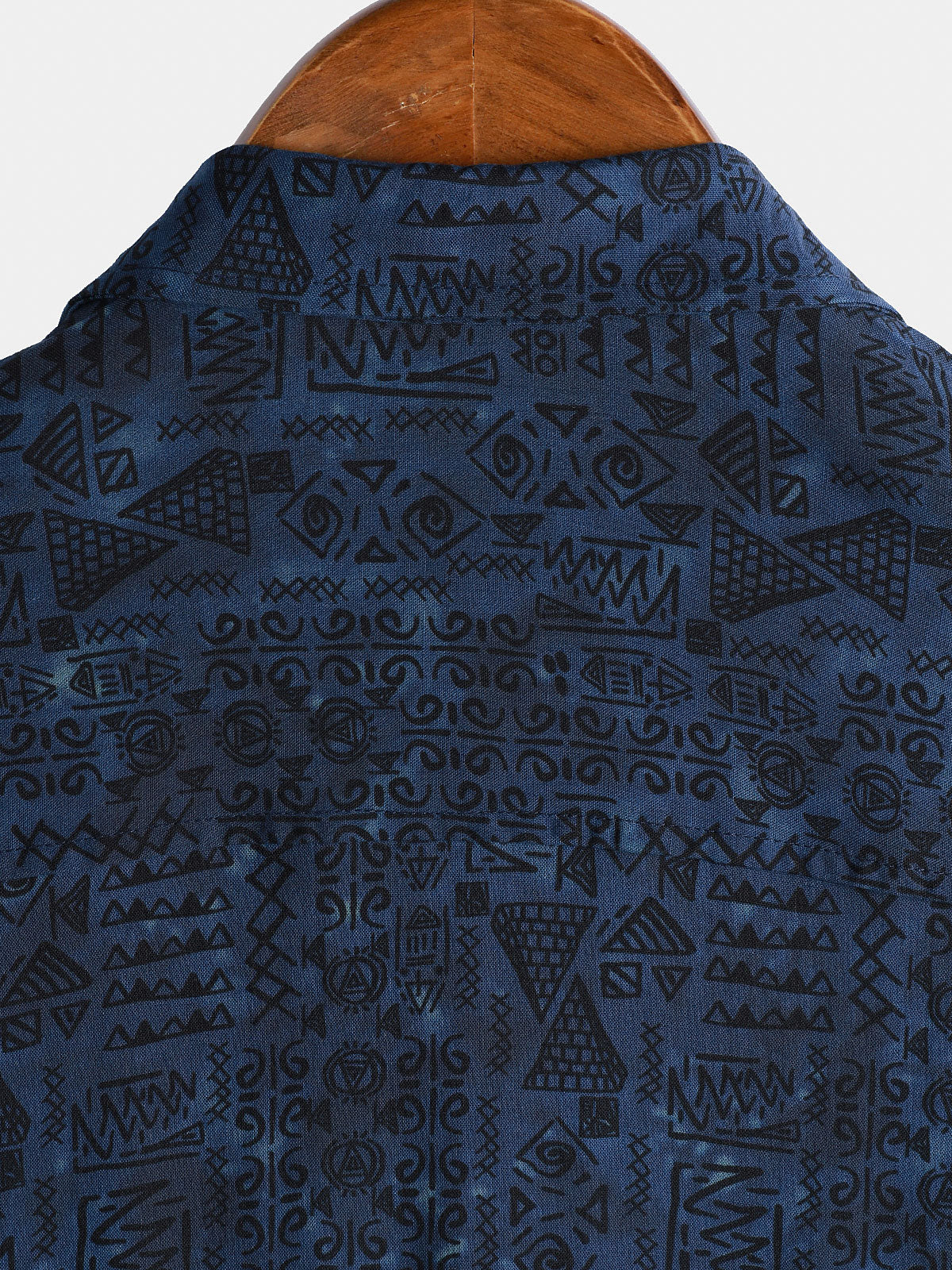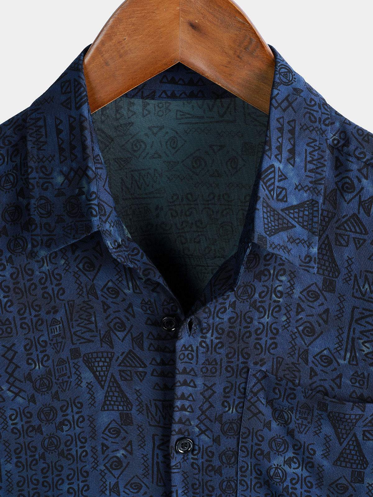 Men's Rayon Navy Blue Geometric Tribal Print Boho Short Sleeve Shirt