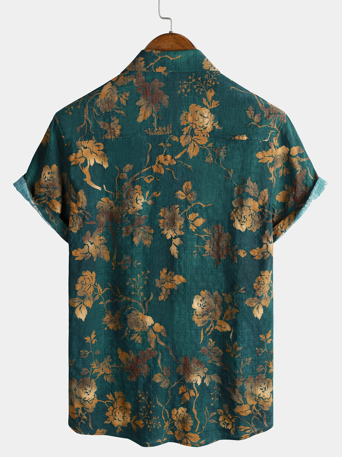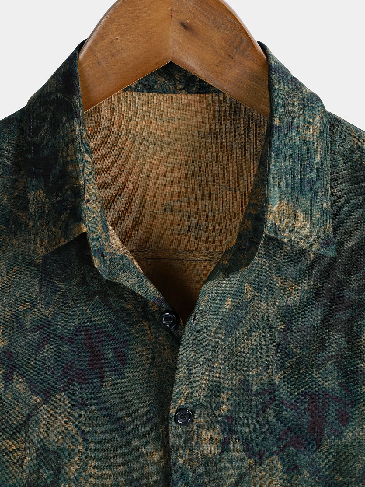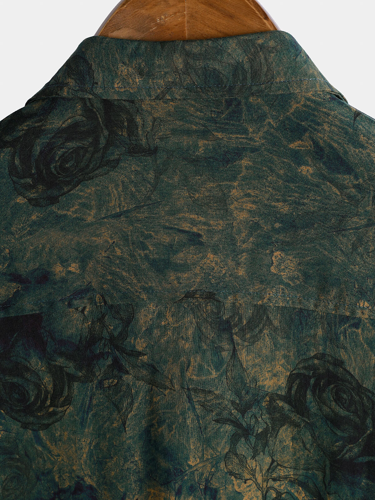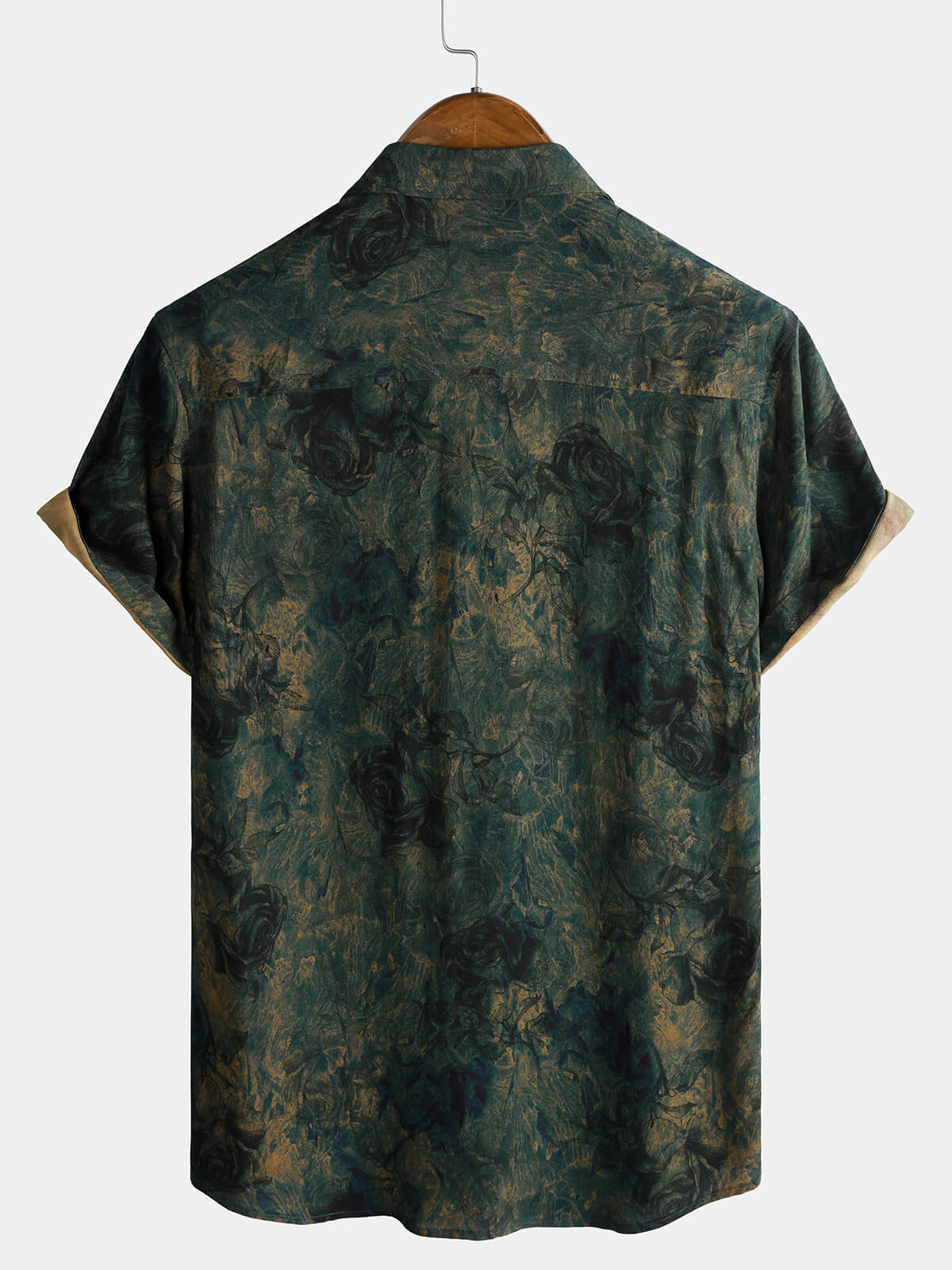 Men's Rayon Green Rose Print Vintage Short Sleeve Shirt