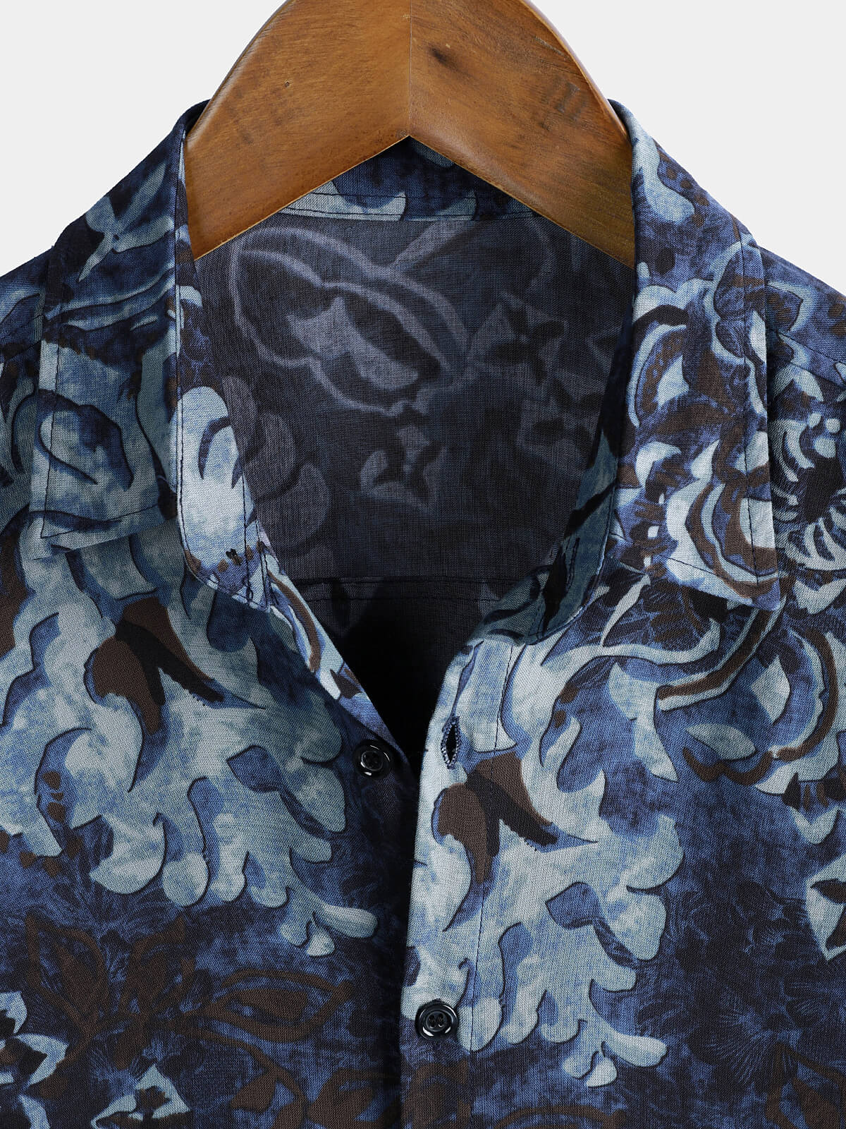 Men's Blue Floral Breathable Cotton Hawaiian Tropical Beach Vacation Resort Shirt