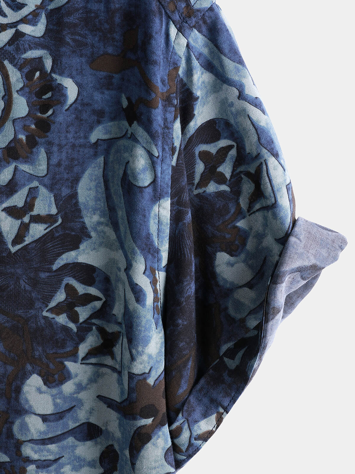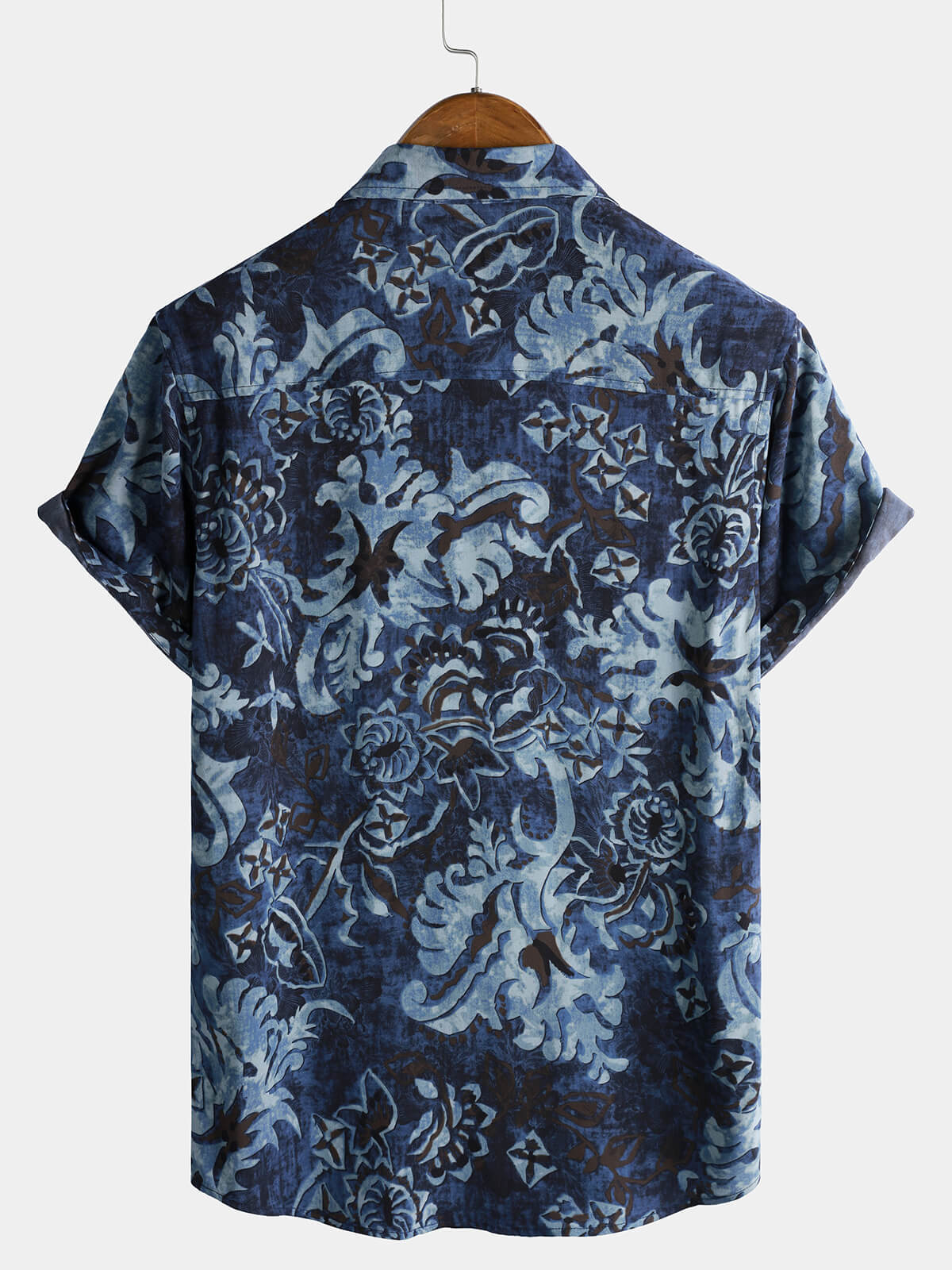 Men's Rayon Blue Floral Print Vintage Casual Short Sleeve Shirt