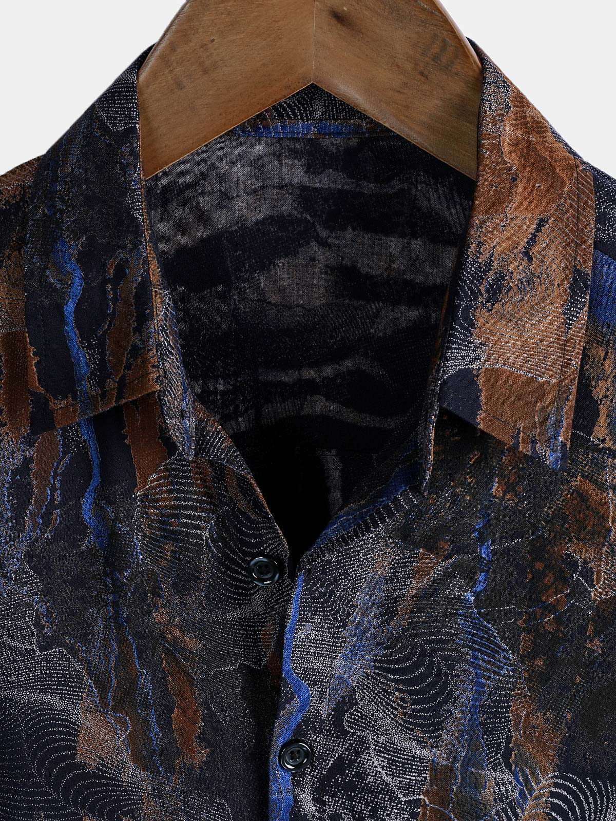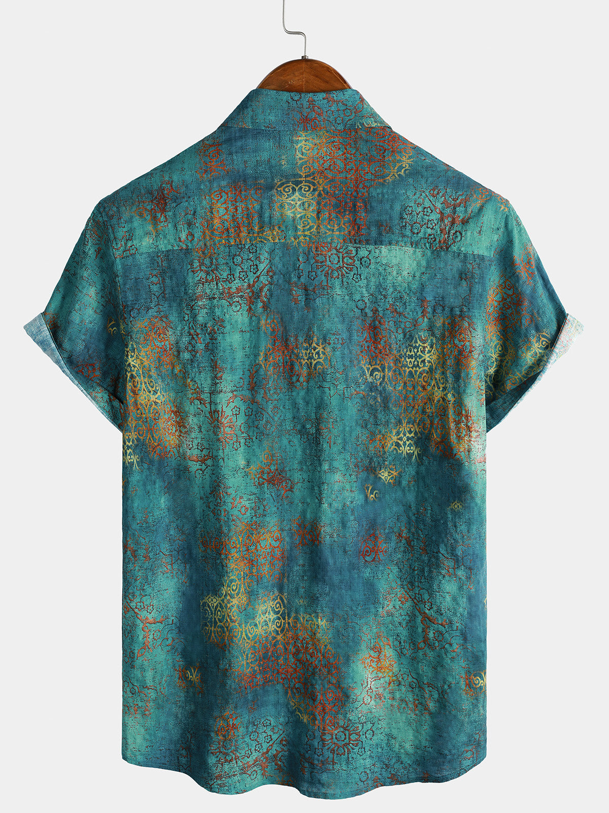 Men's Vintage Floral Graphic Breathable Rayon Lightweight Outdoor Leisure Shirt