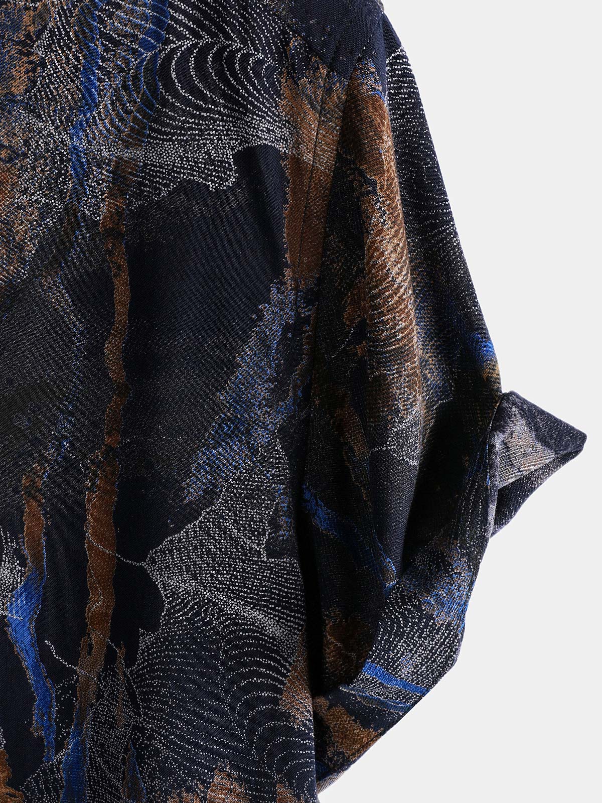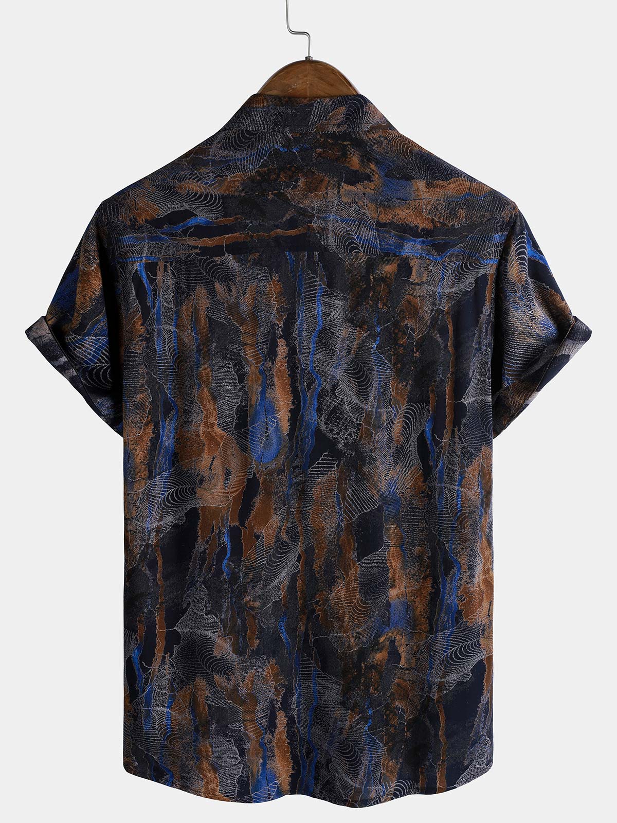 Men's Patchwork Print Breathable Cotton Short Sleeve Button Down Shirt