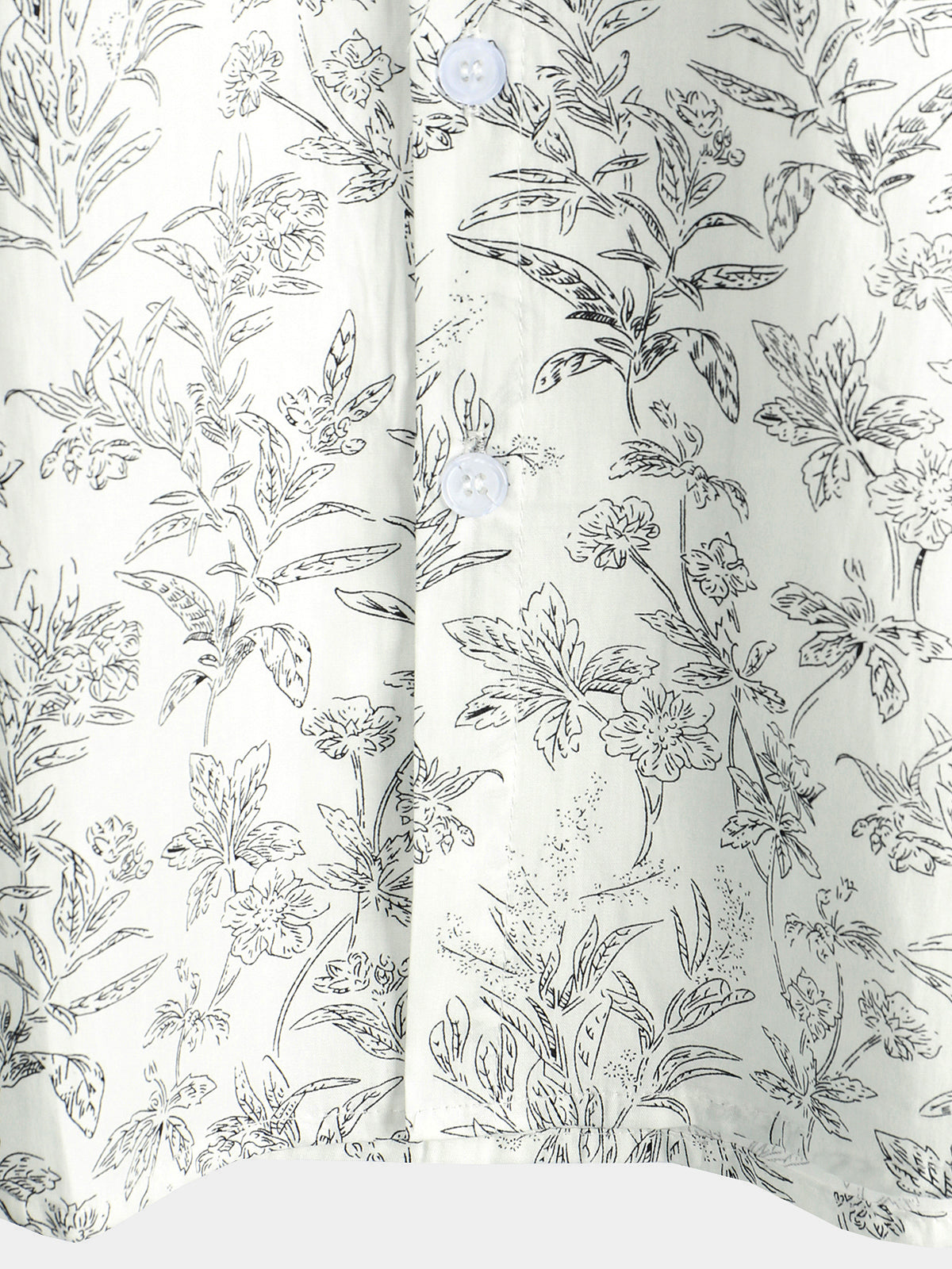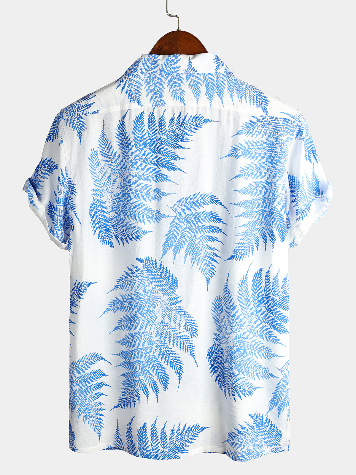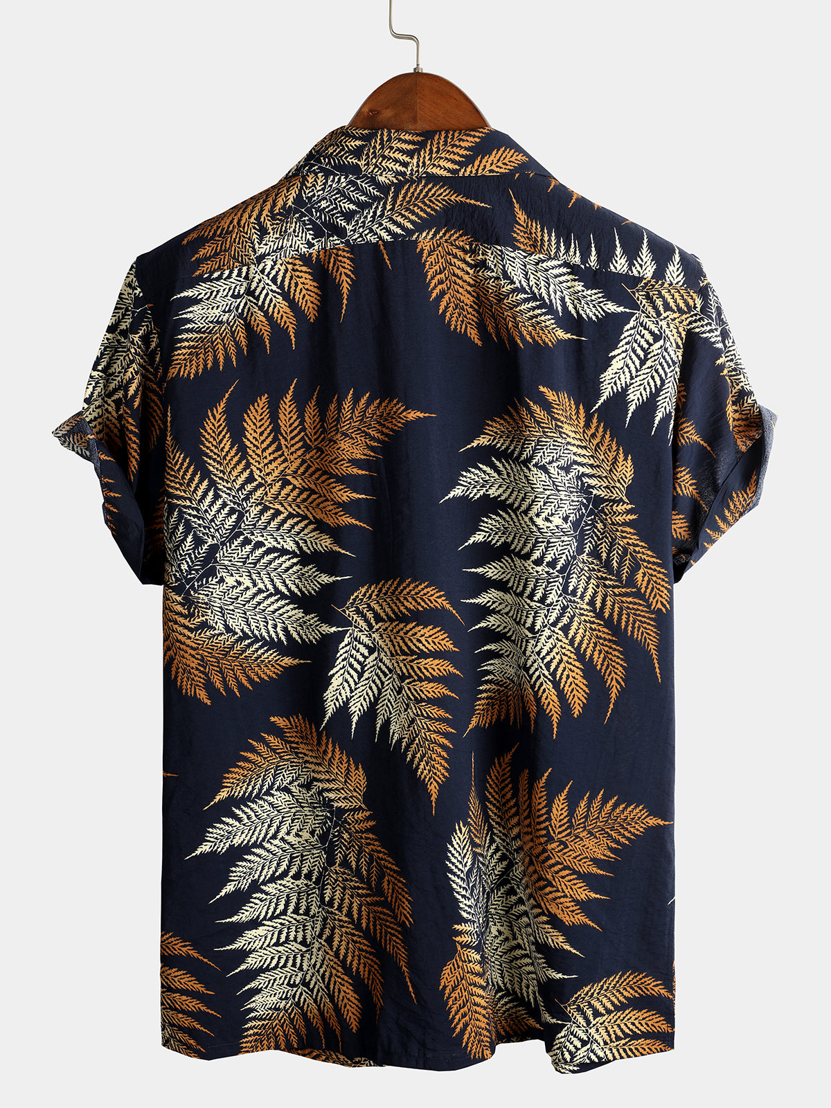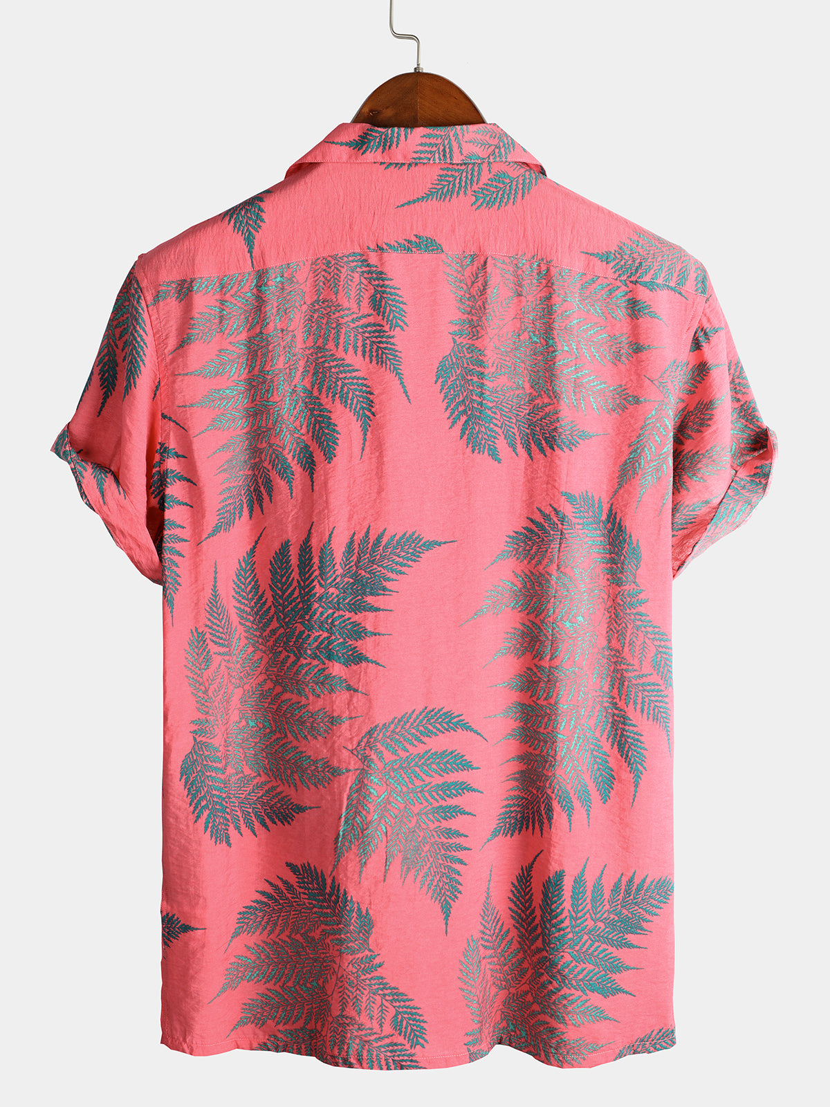 Men's Hawaii Tropical Plant Print Floral Cotton Shirt