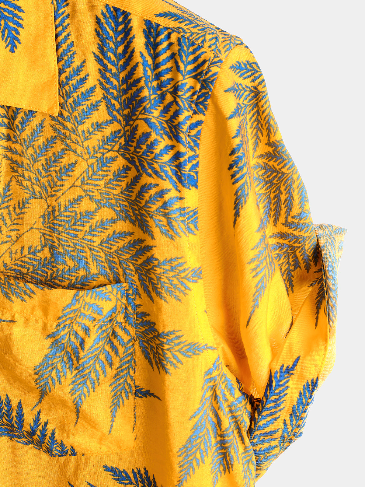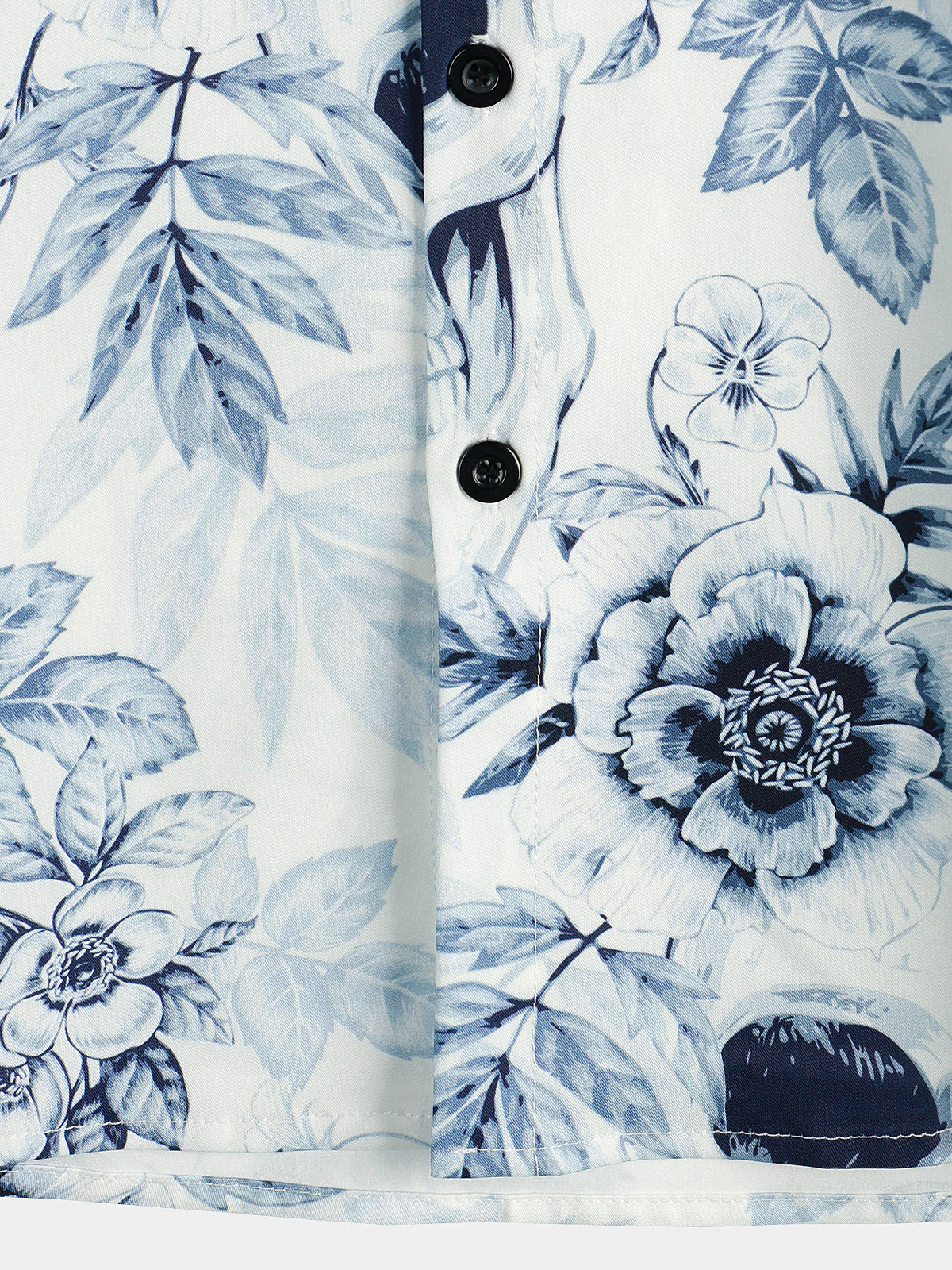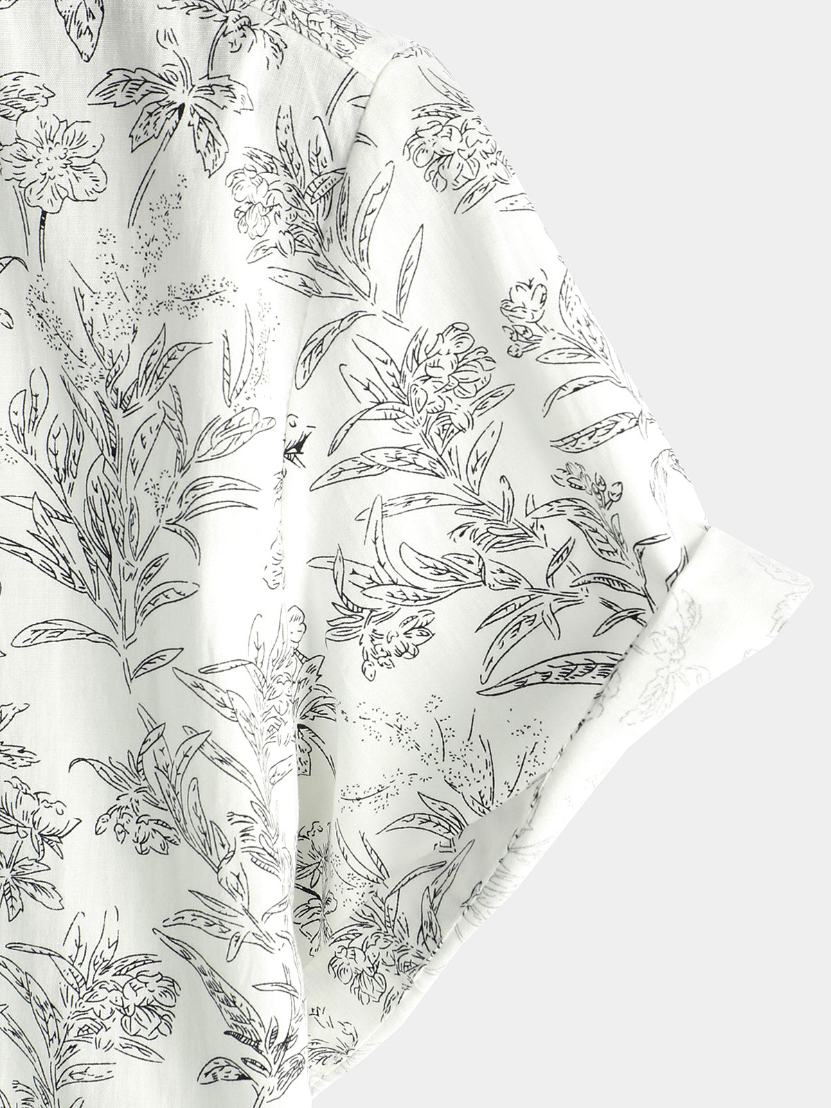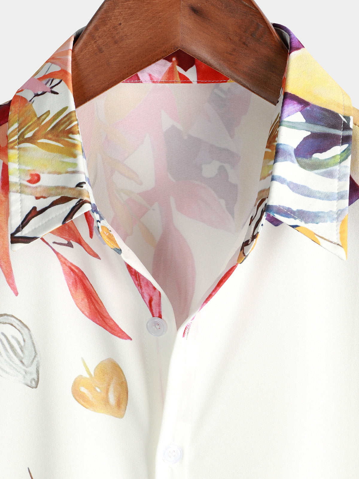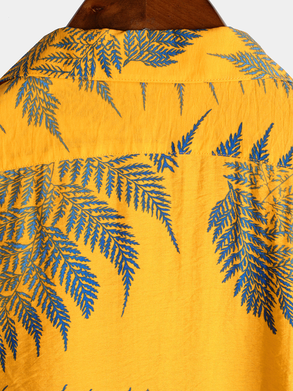 Men's Hawaii Tropical Plant Print Floral Cotton Shirt