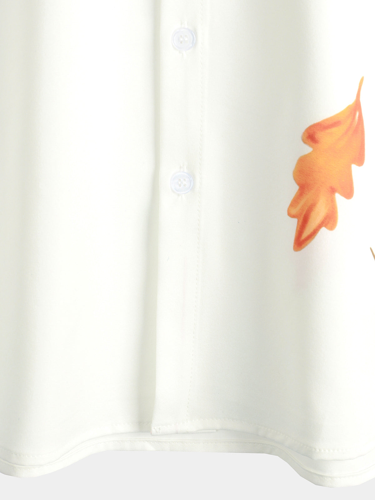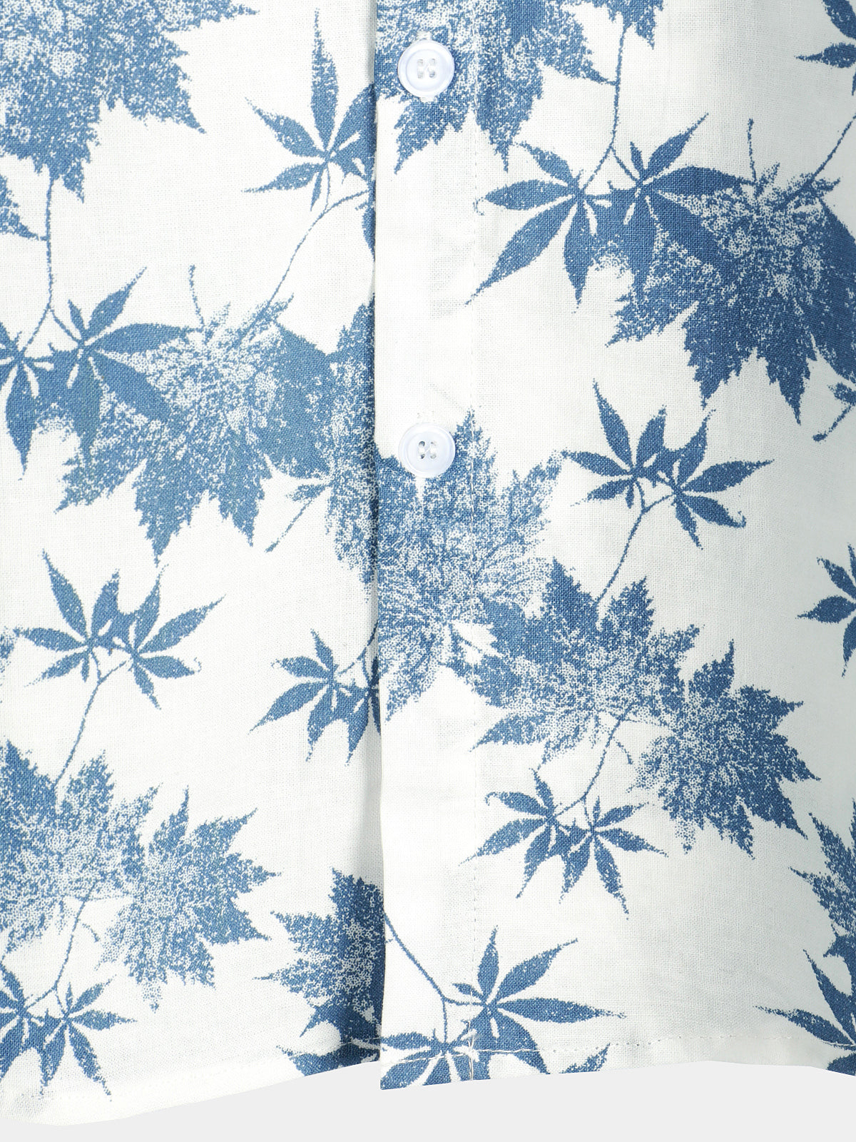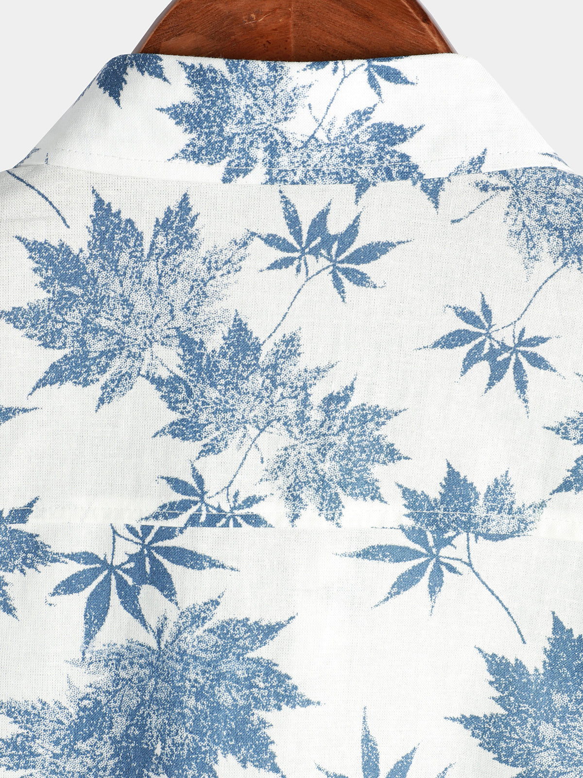 Men's Cotton Linen Maple Leaf Print Breathable Short Sleeve Shirt