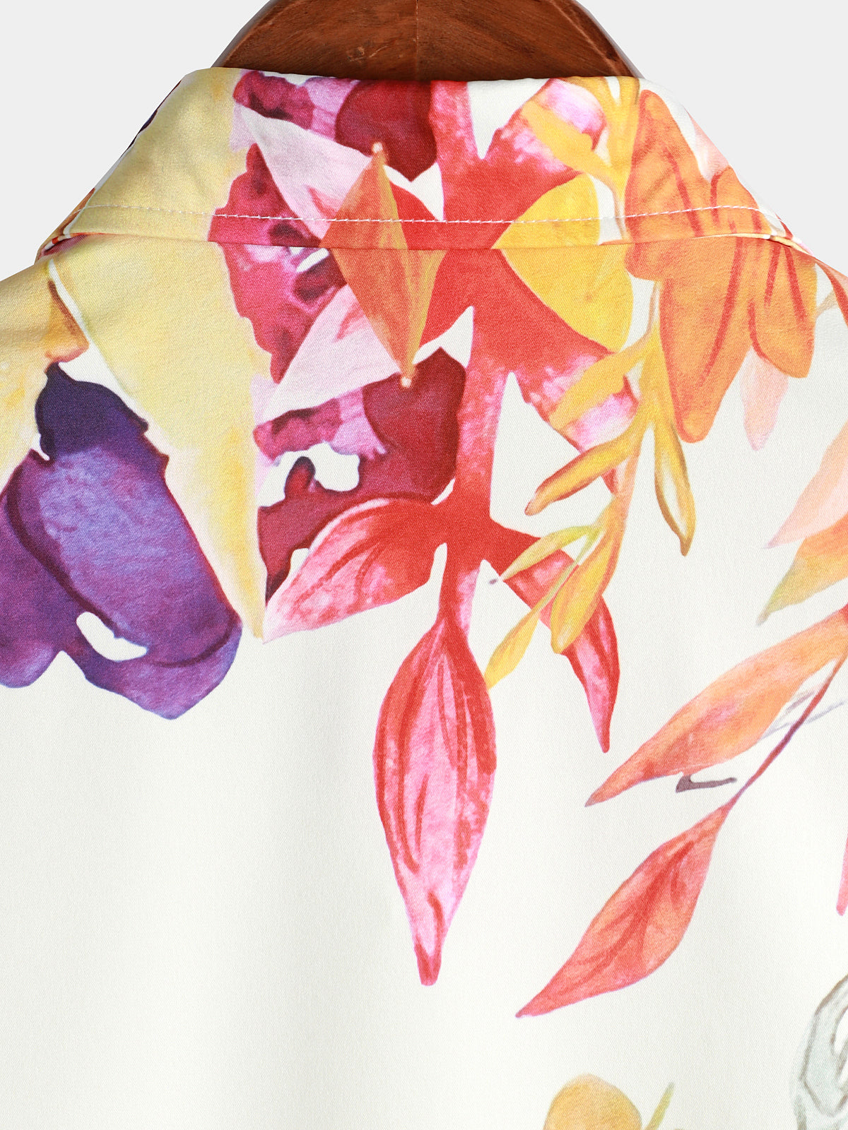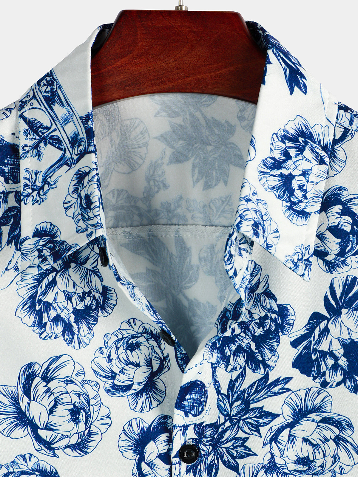 Men's Floral Casual Beach Summer Button Up Holiday Short Sleeve Shirt