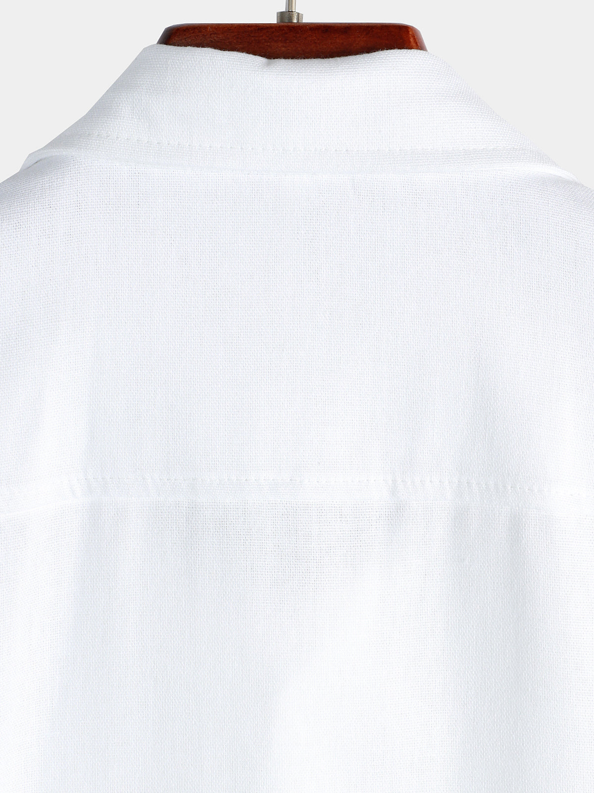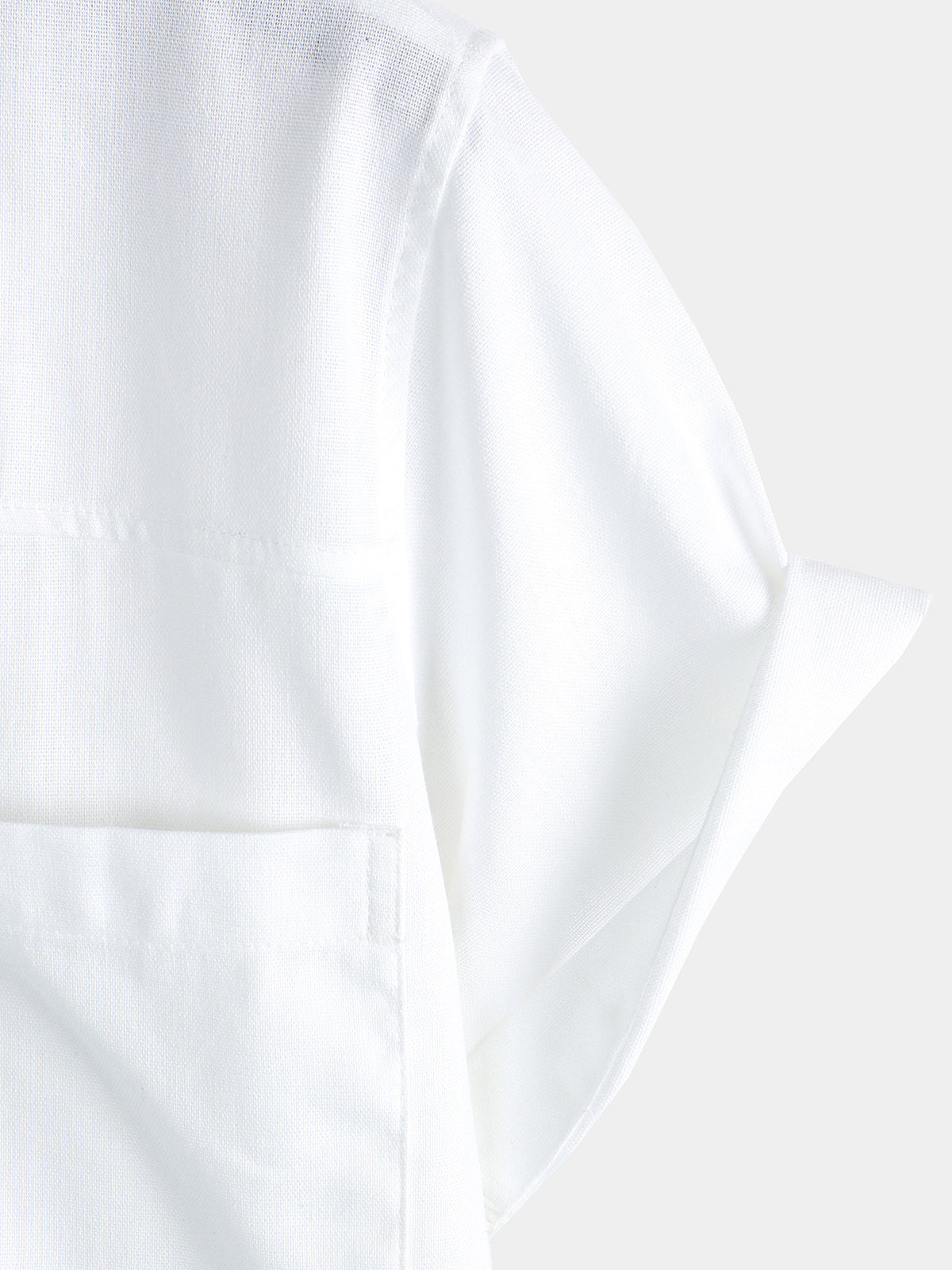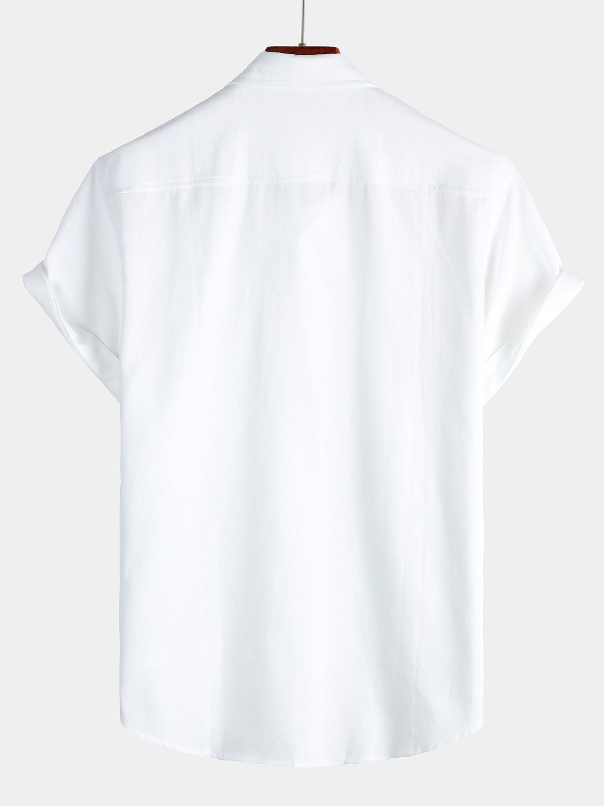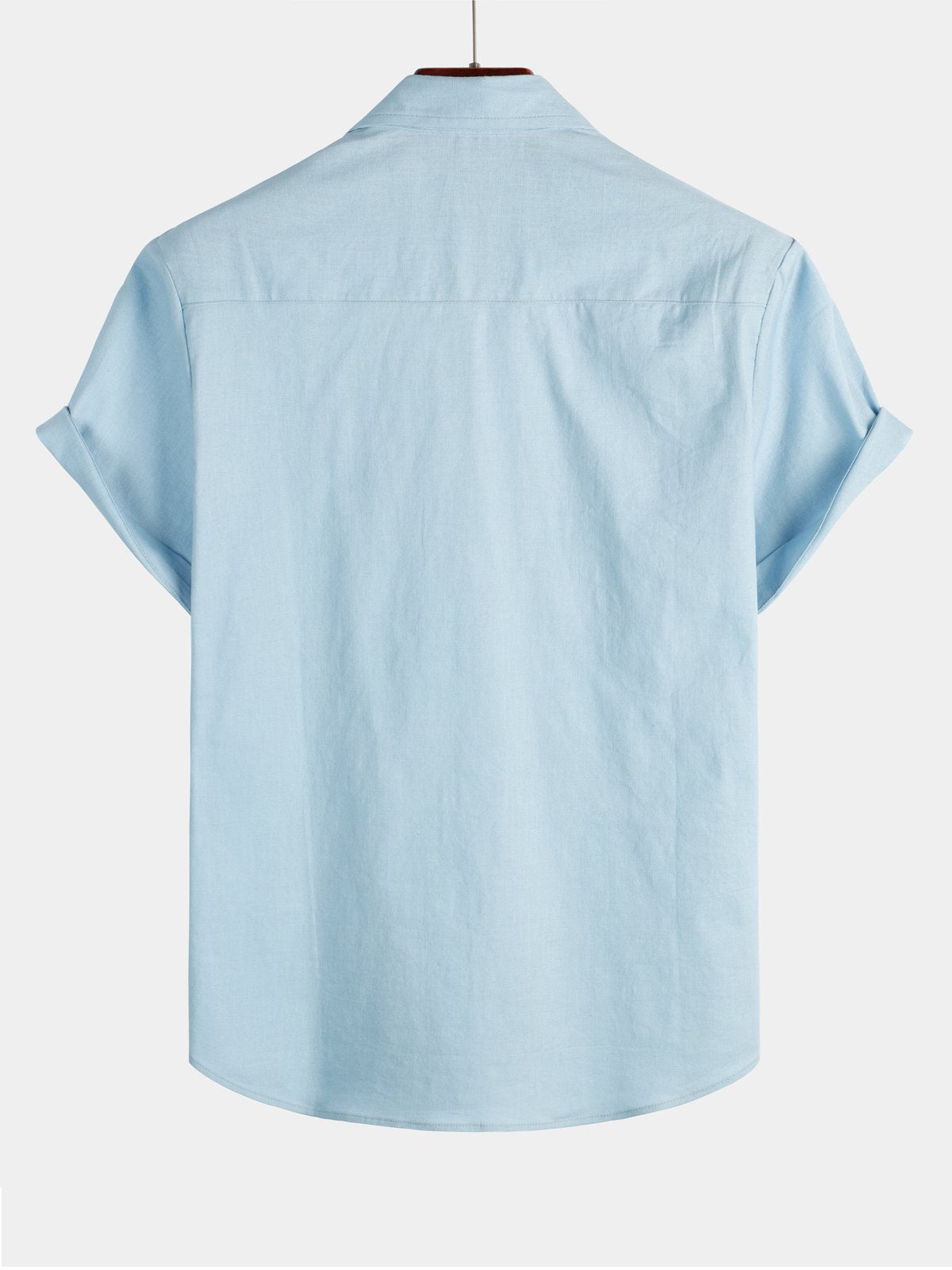 Men's Solid Color Linen Cotton Pocket Casual Short Sleeve Shirt