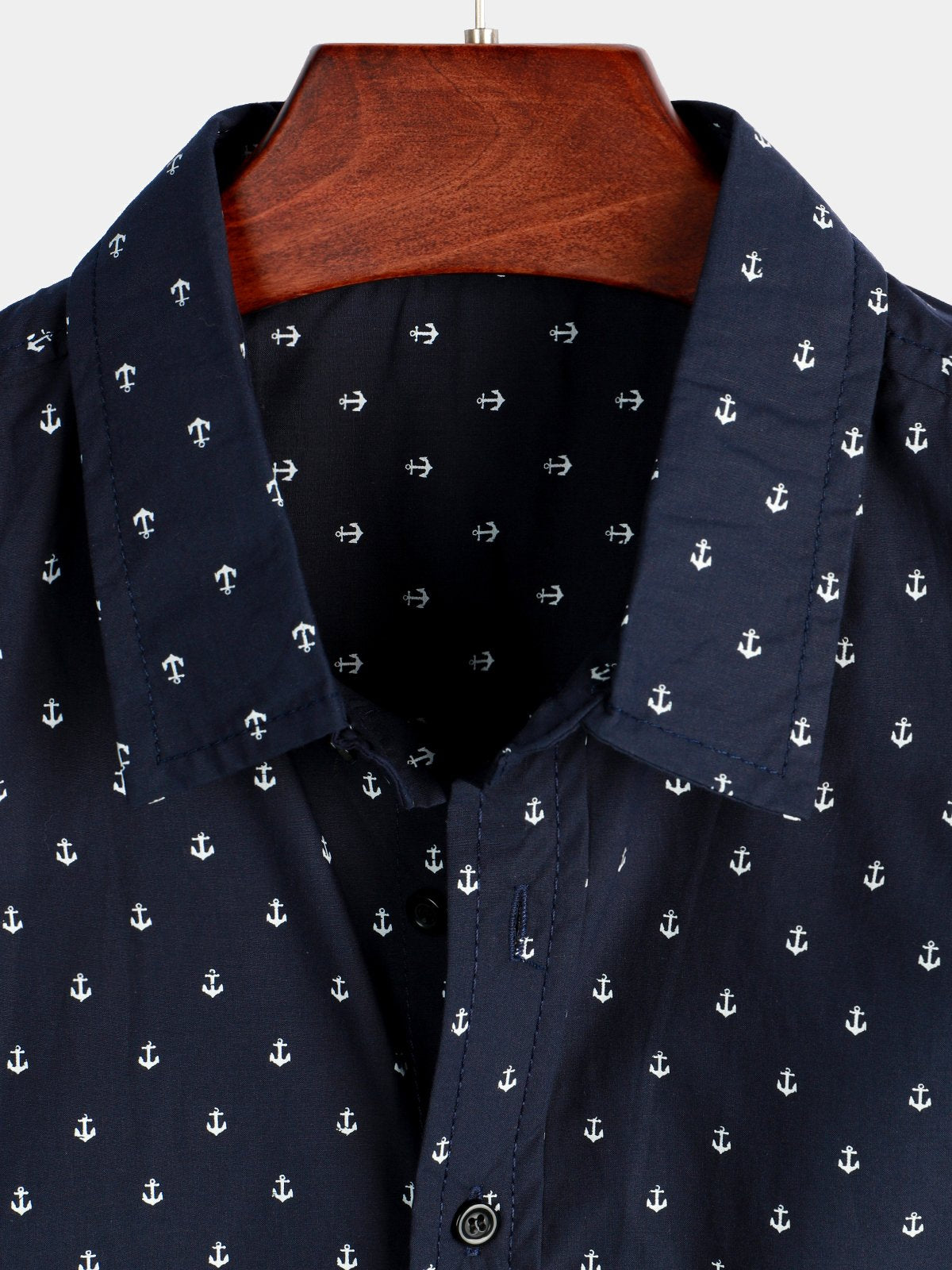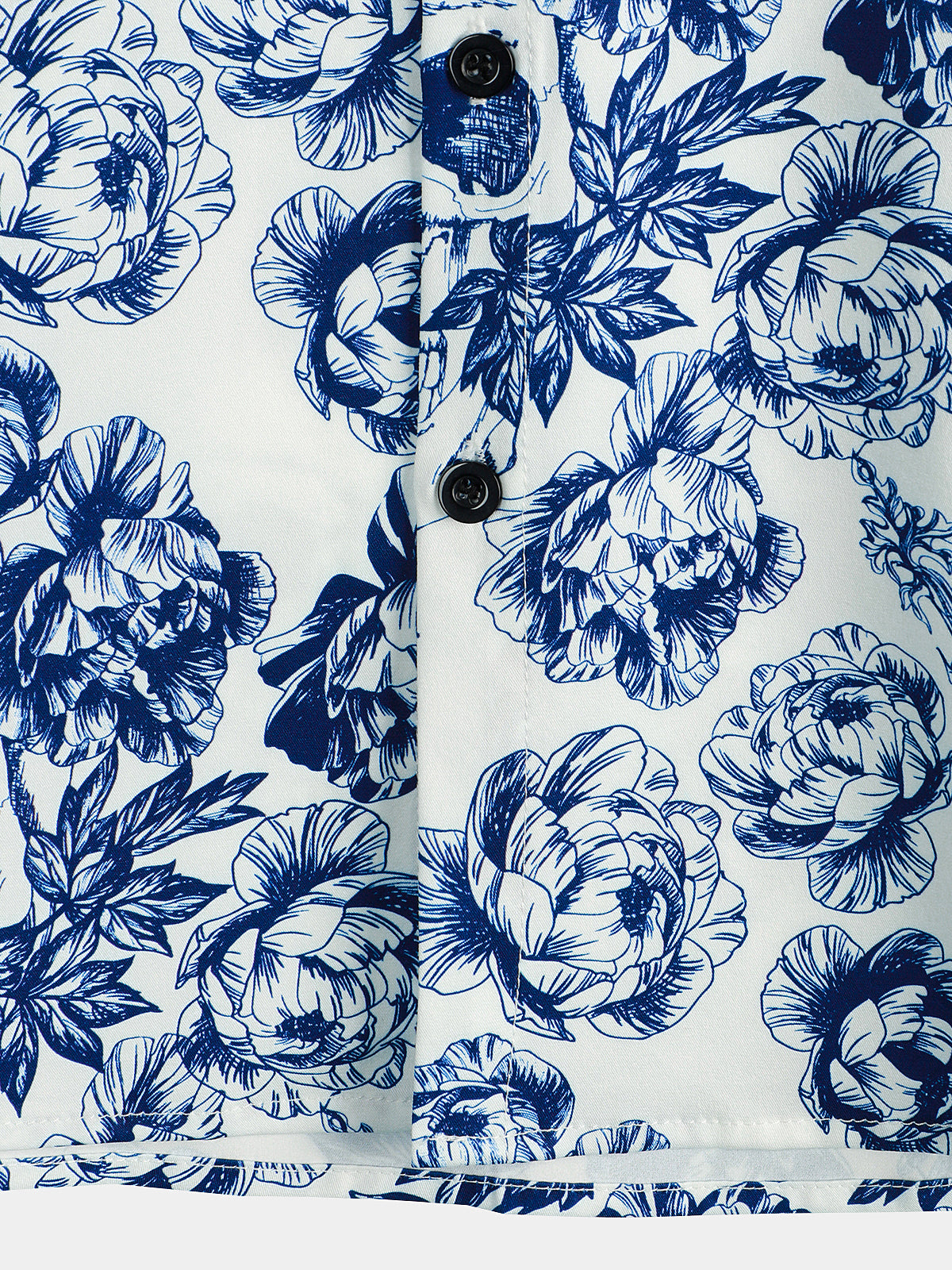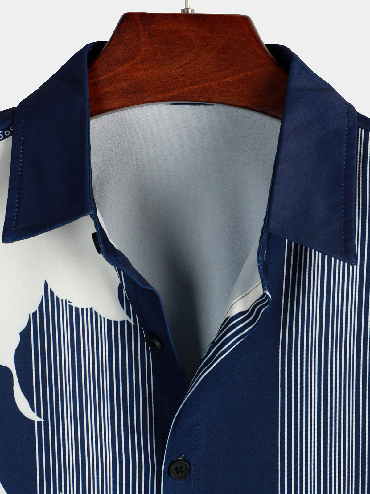 Men's Floral Print Vintage Navy Blue Casual Short Sleeve Lapel Shirt