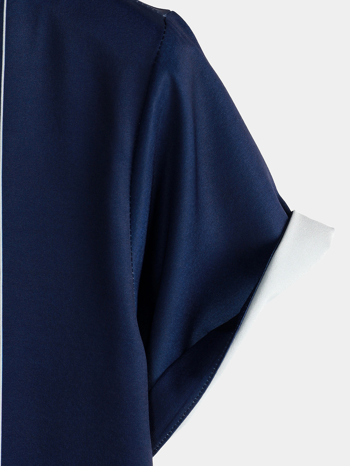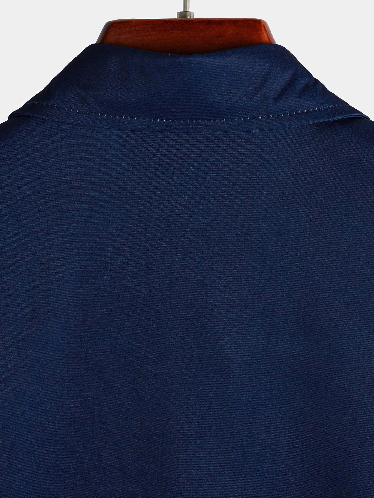 Men's Cotton Striped Stand Collar Short Sleeve Shirt