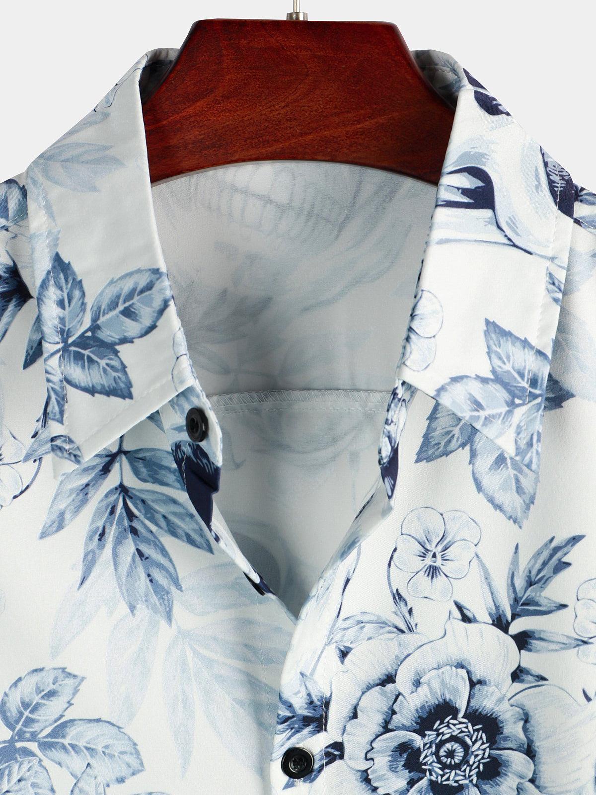 Men's Summer Floral Print Holiday Flower Resort Casual Lapel Light Blue Short Sleeve Shirt
