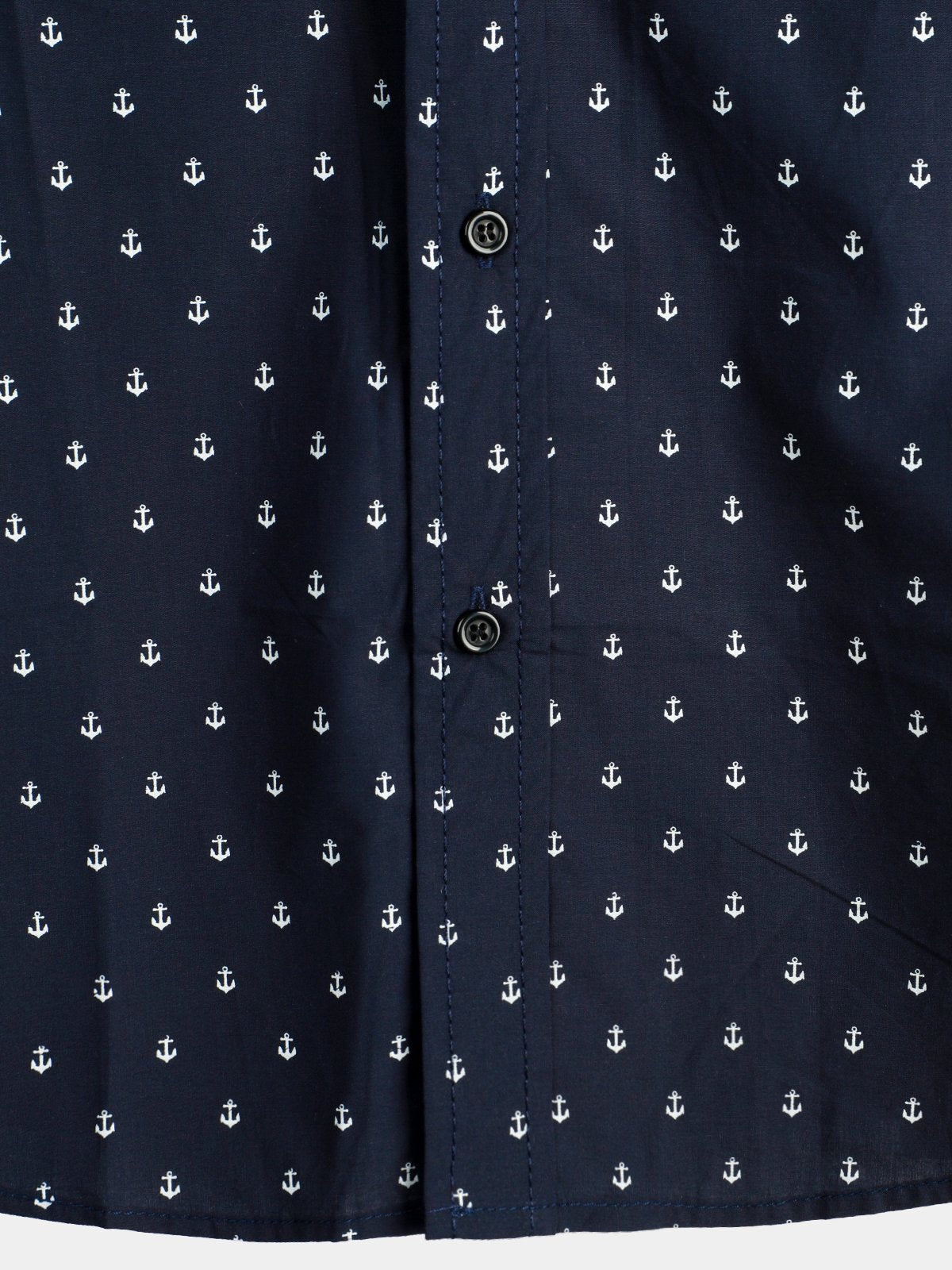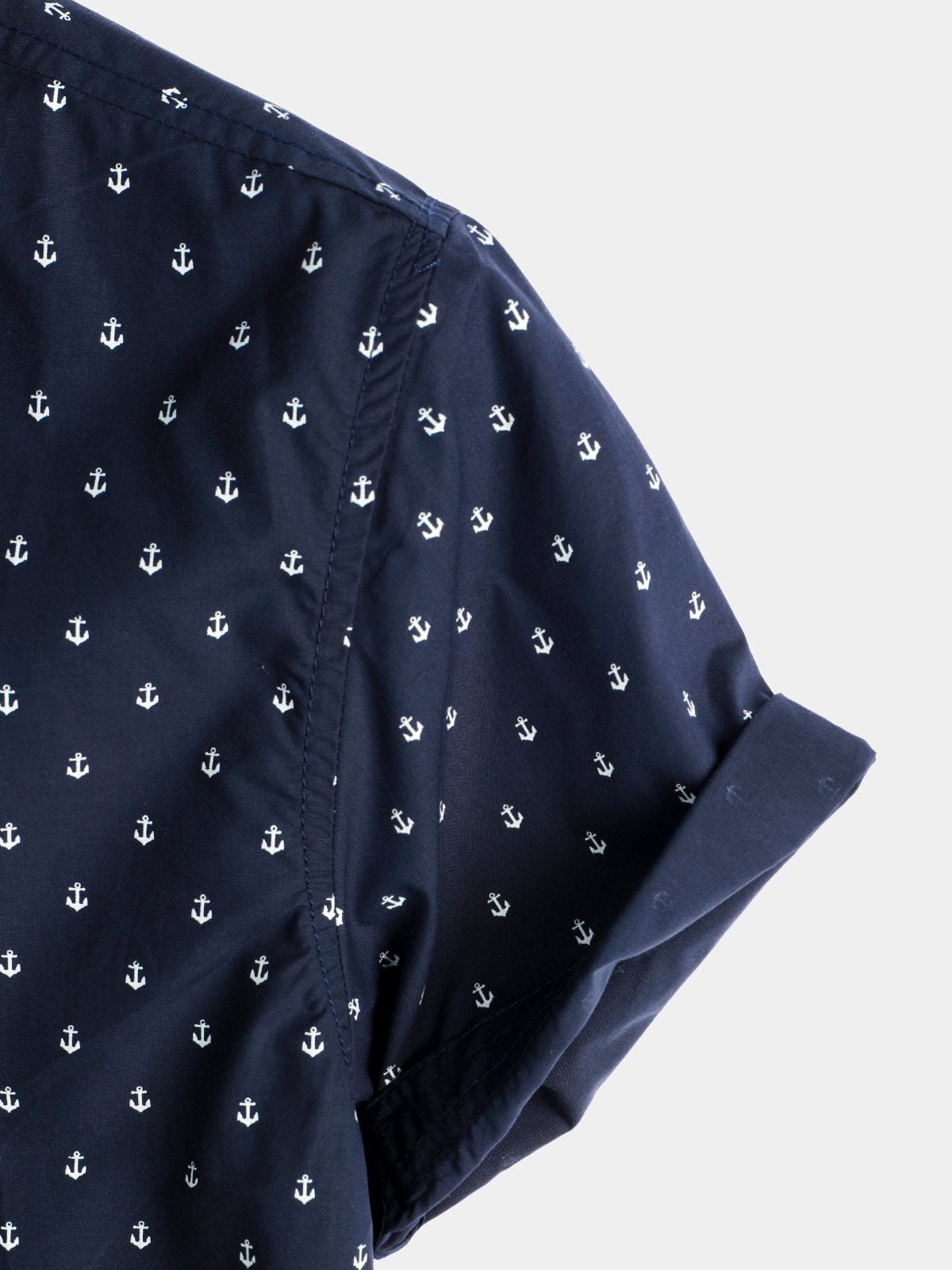 Men's Vintage Floral Print Holiday Navy Blue Button Up Short Sleeve Shirt