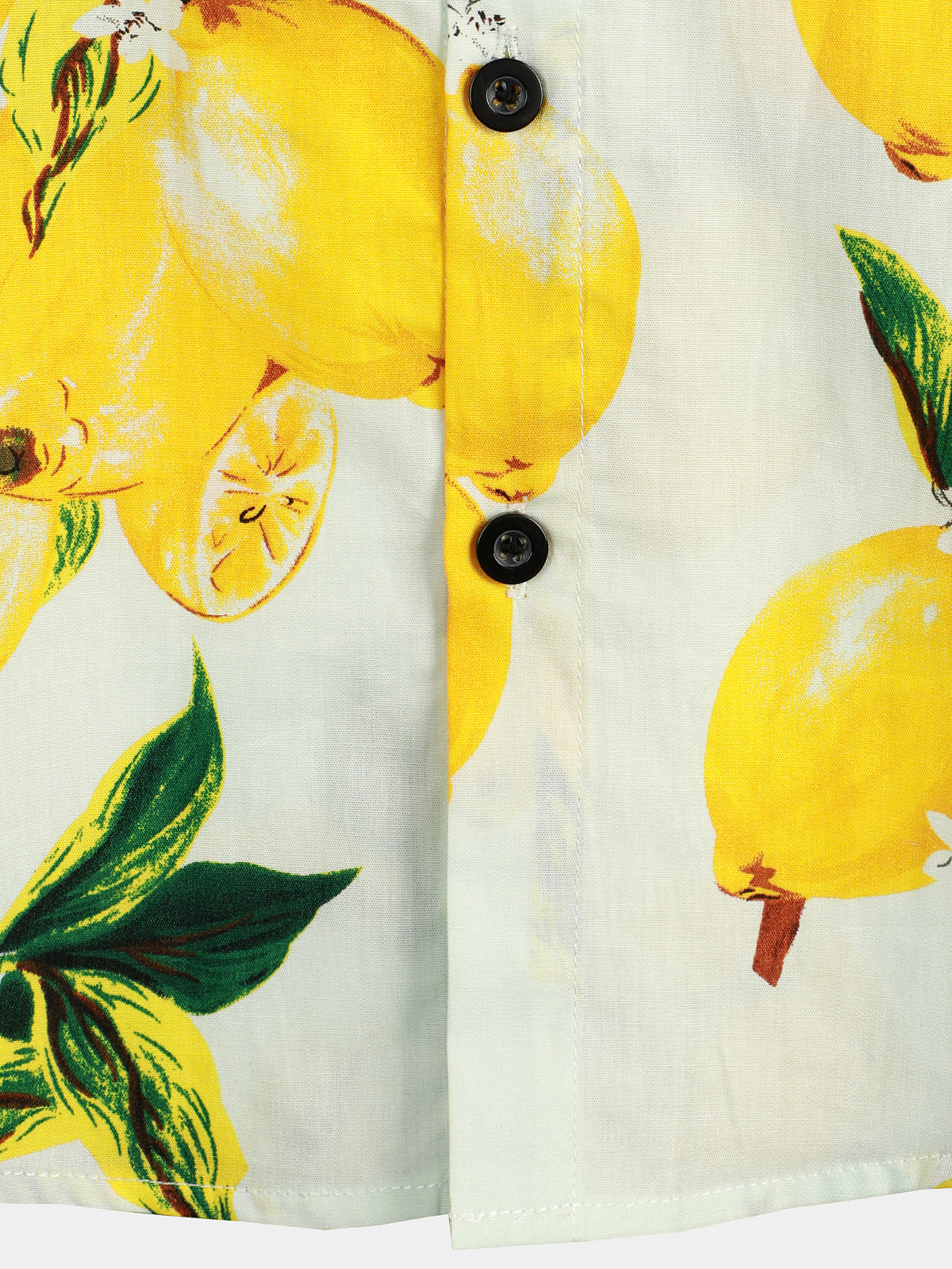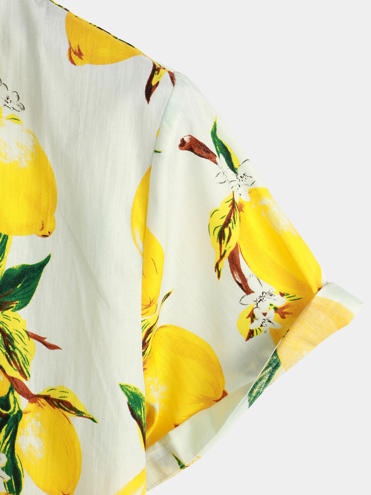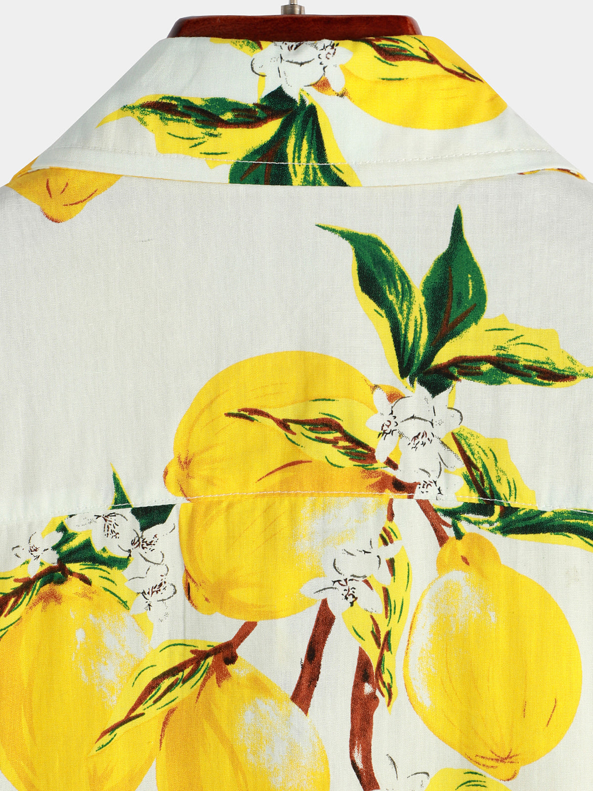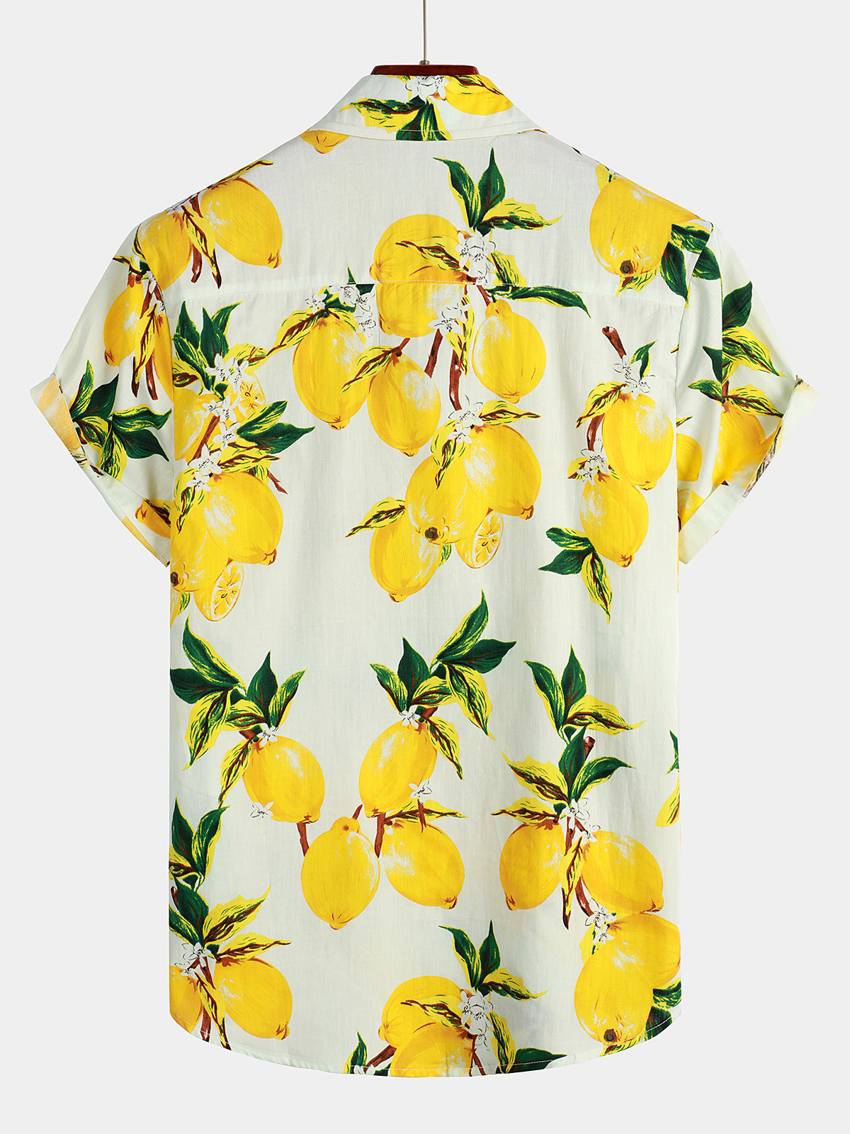 Men's Lemon Print Short Sleeve Button Up Beach Summer Hawaiian Shirt
