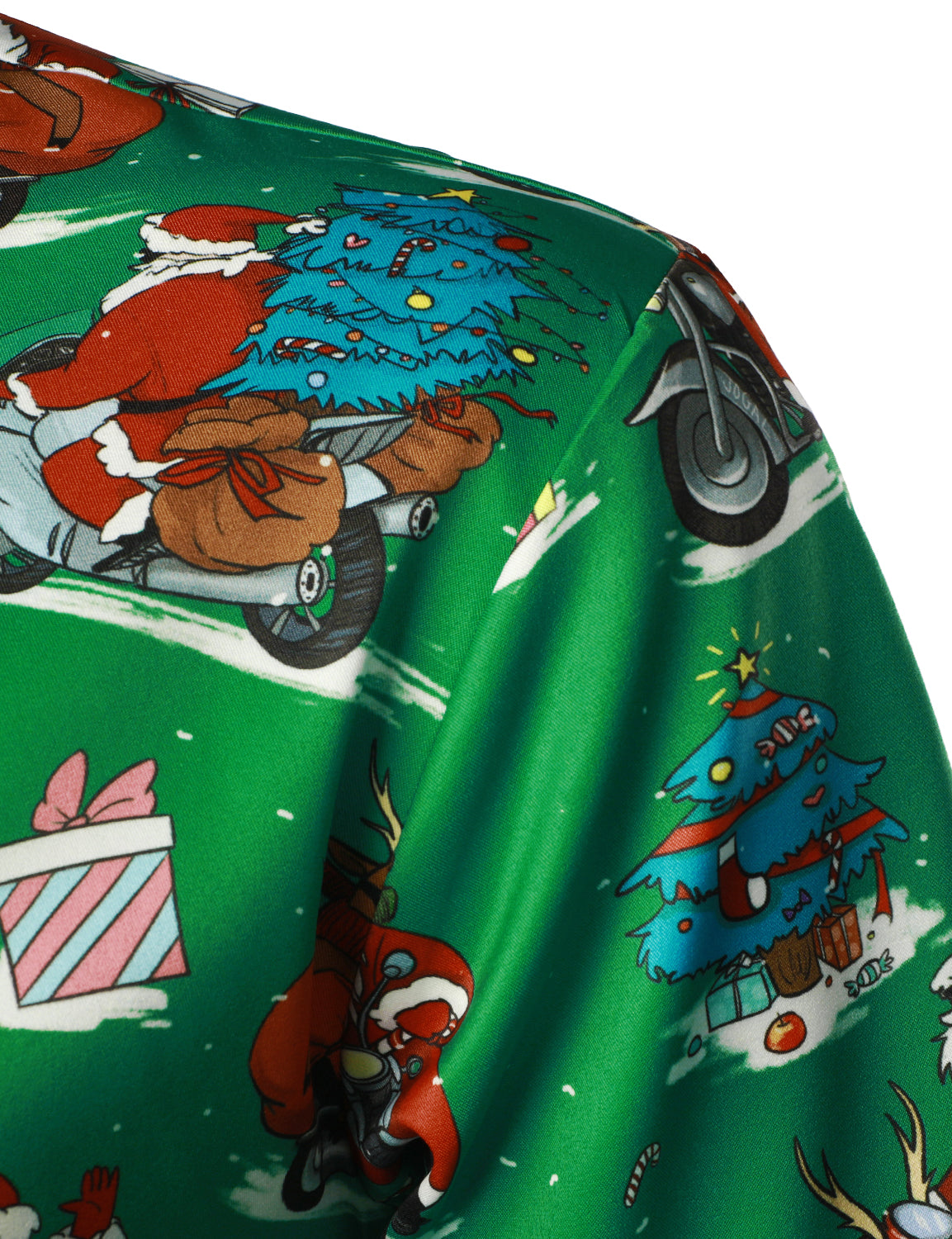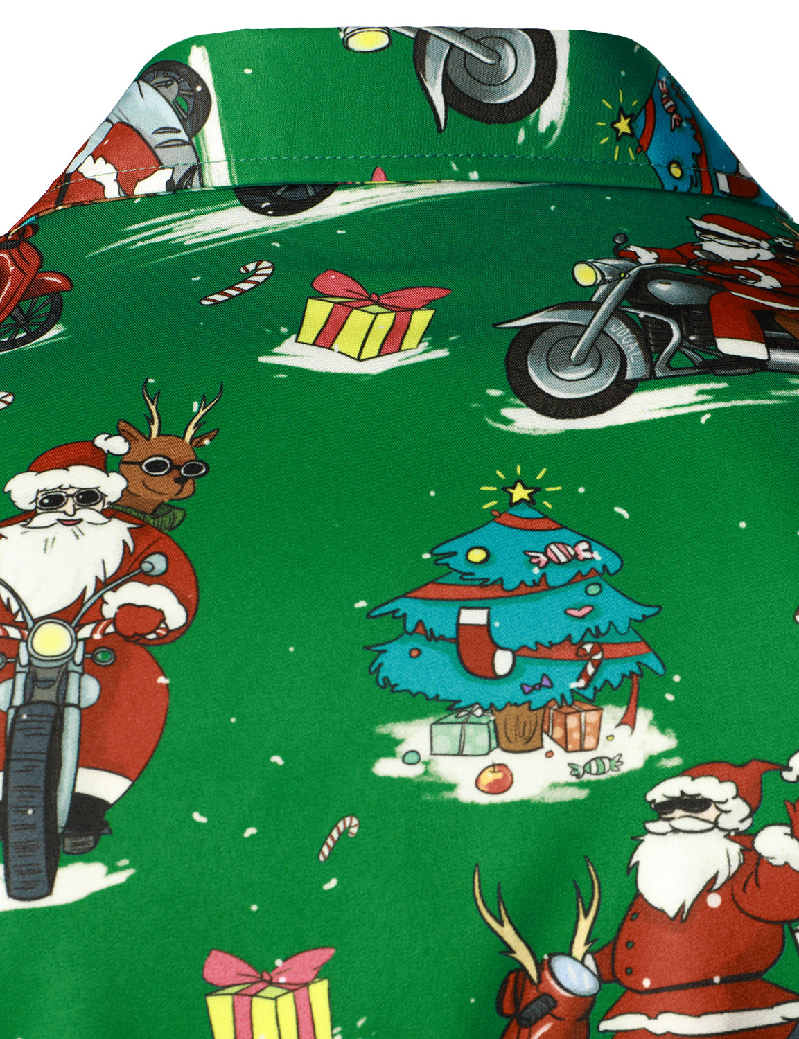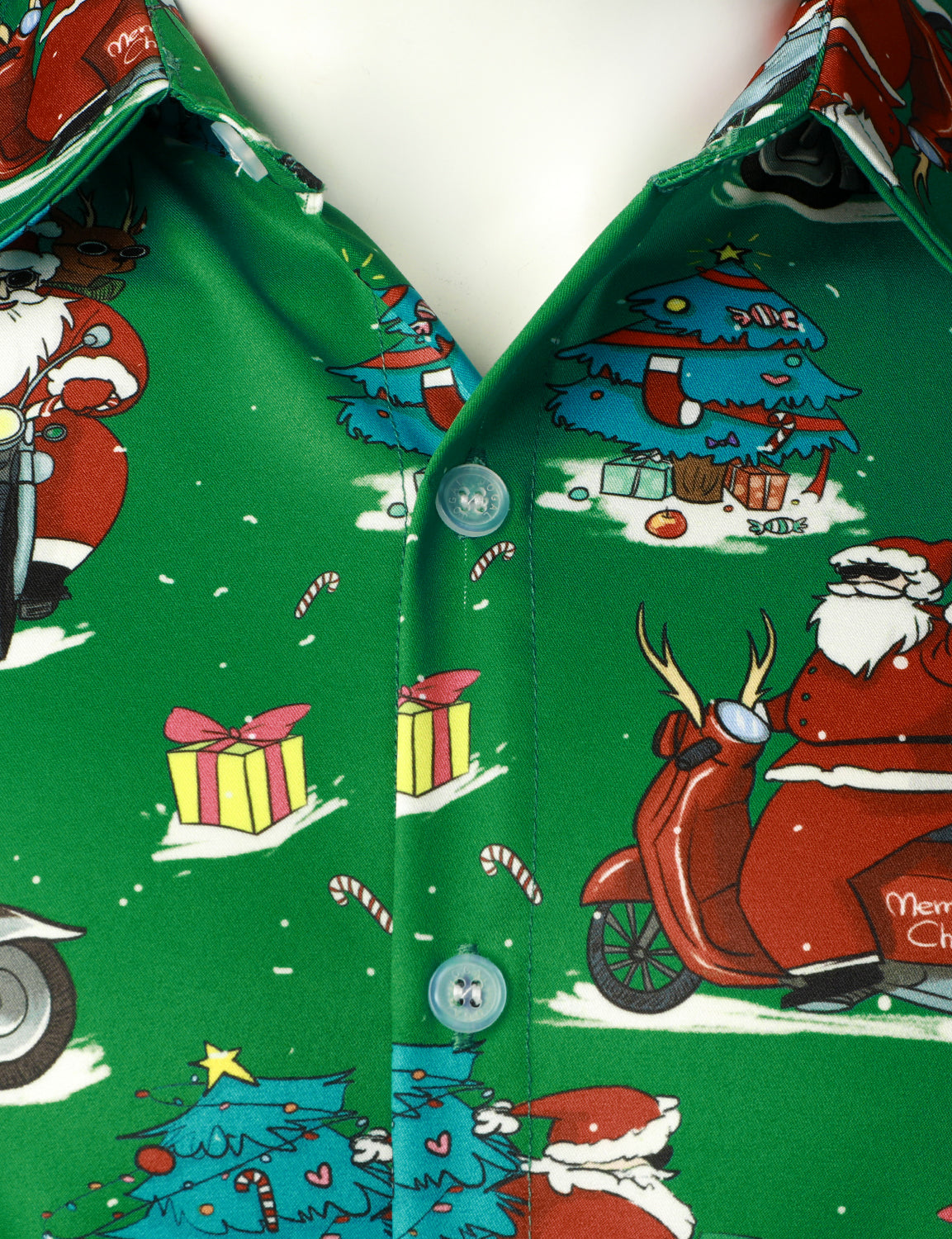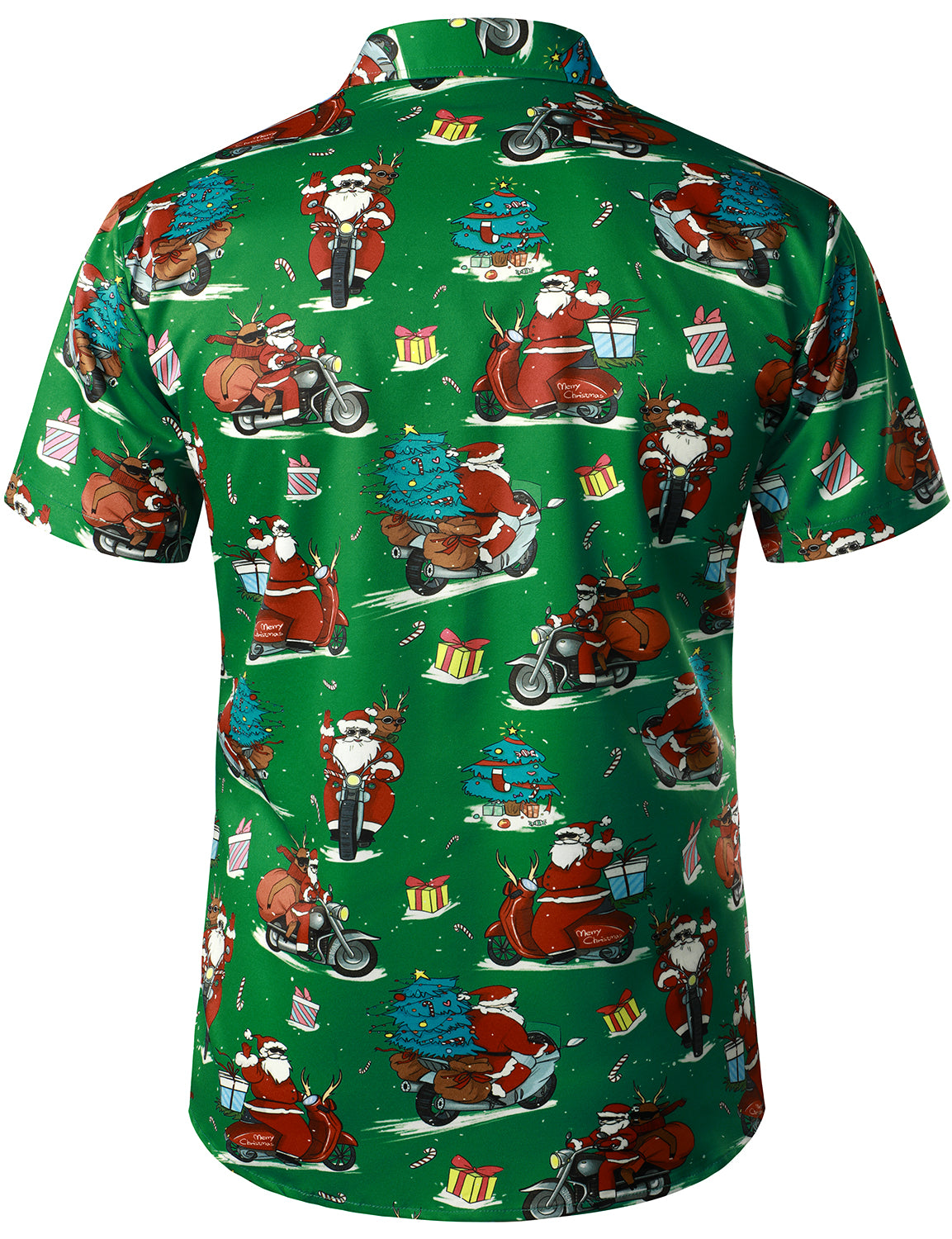 Men's Christmas Santa Claus and Motorcycle Print Button Up Short Sleeve Shirt
