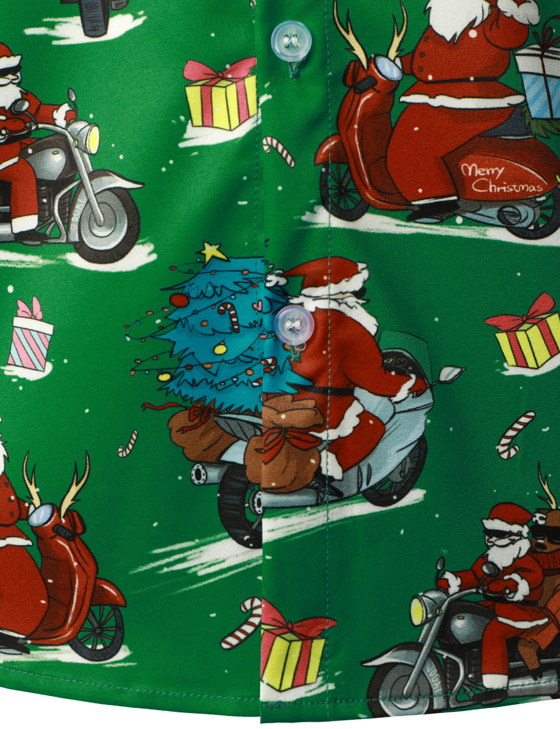Men's Funny Christmas Motorcycle Santa Holiday Button Long Sleeve Shirt