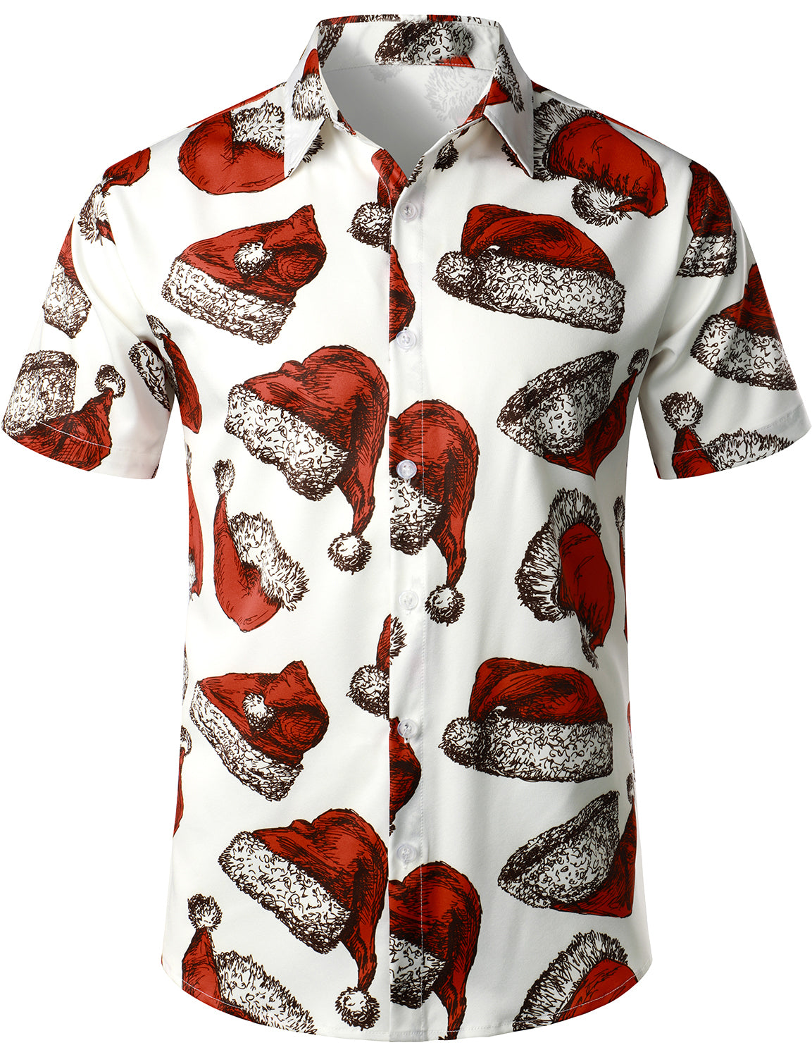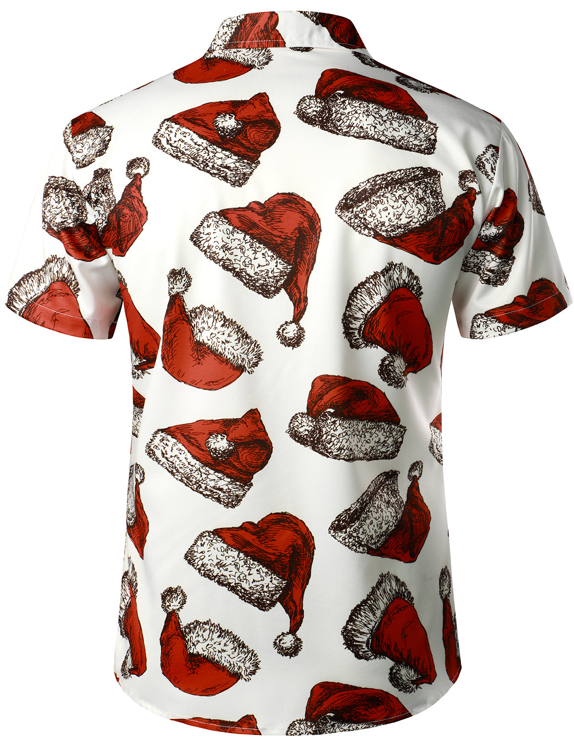 Men's Santa Hat Ugly Christmas Print Short Sleeve Shirt