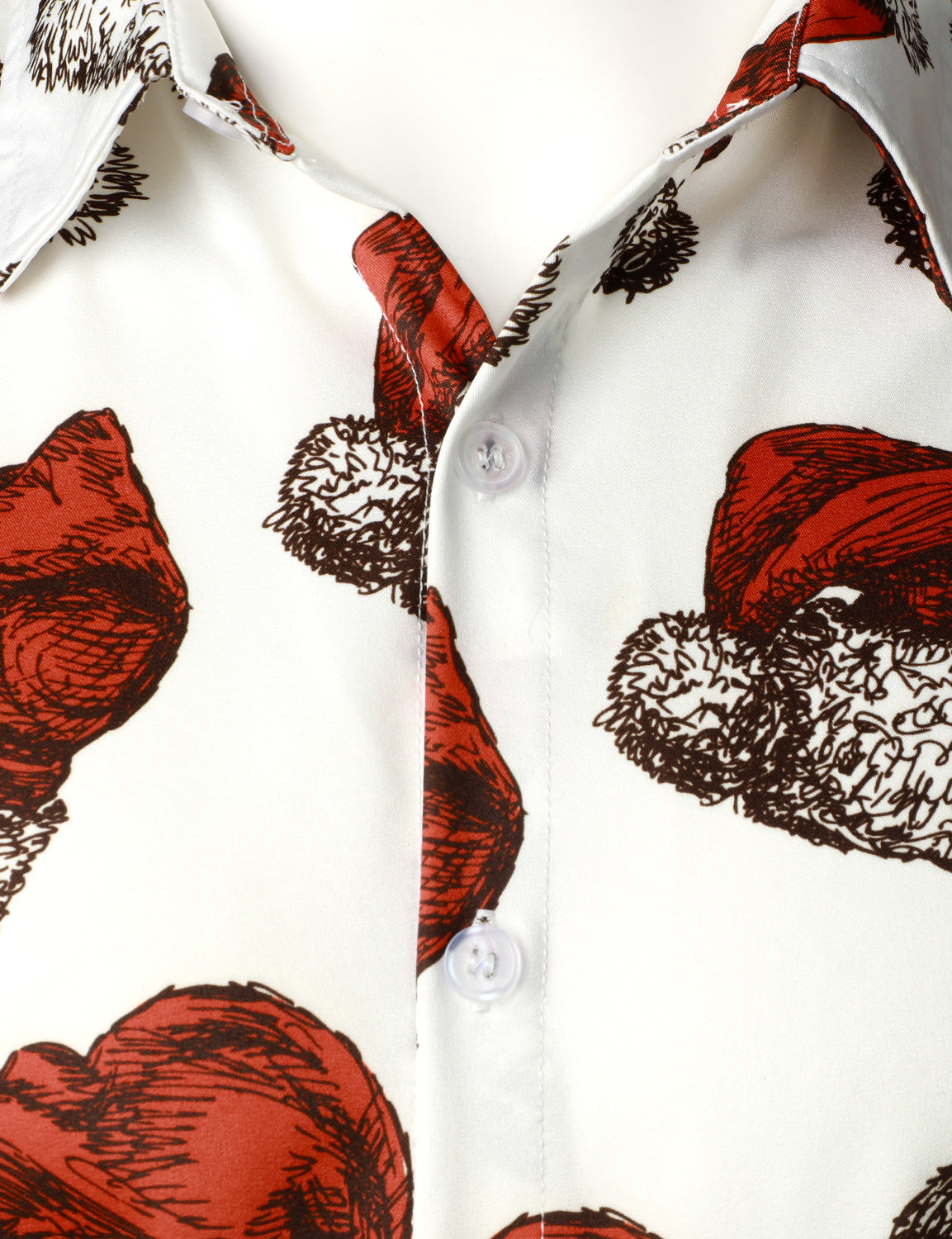Men's Green Christmas Santa Hat Print Button Up Long Sleeve Shirt