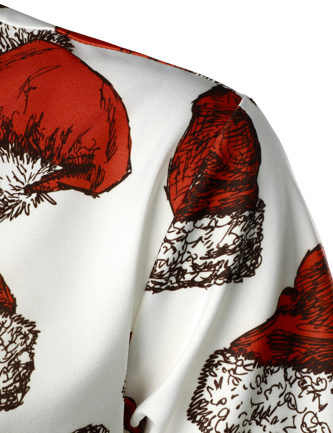 Men's Holiday Forest Animal and Tree Christmas Print Button Up White Long Sleeve Shirt