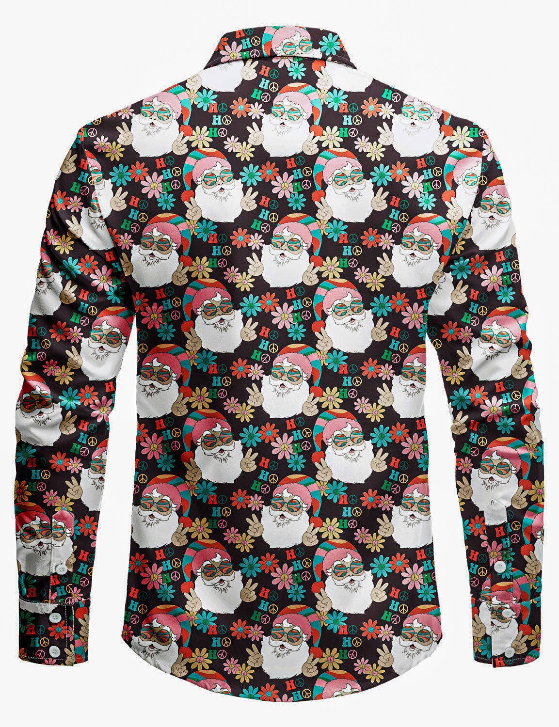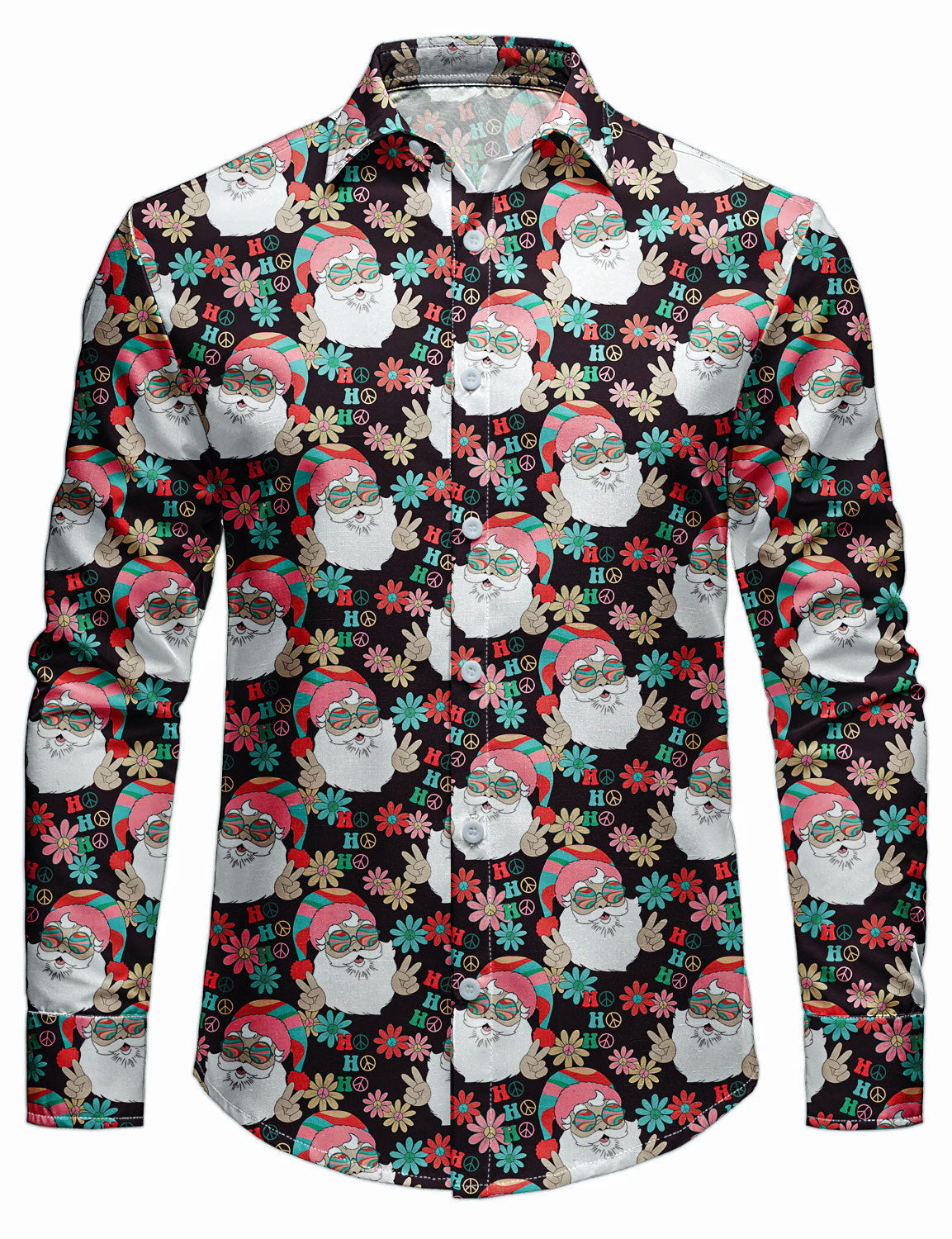 Men's Retro Groovy Santa Christmas HO HO Funny Print Holiday Long Sleeve Shirt