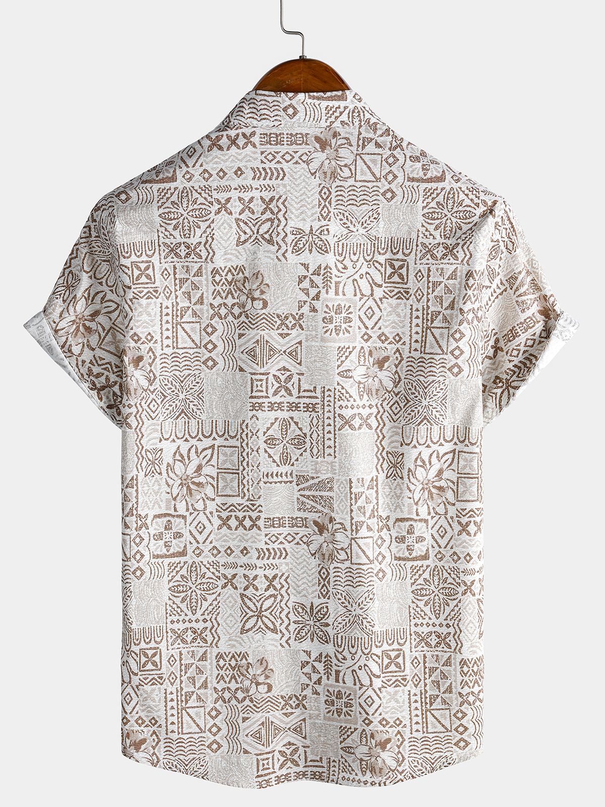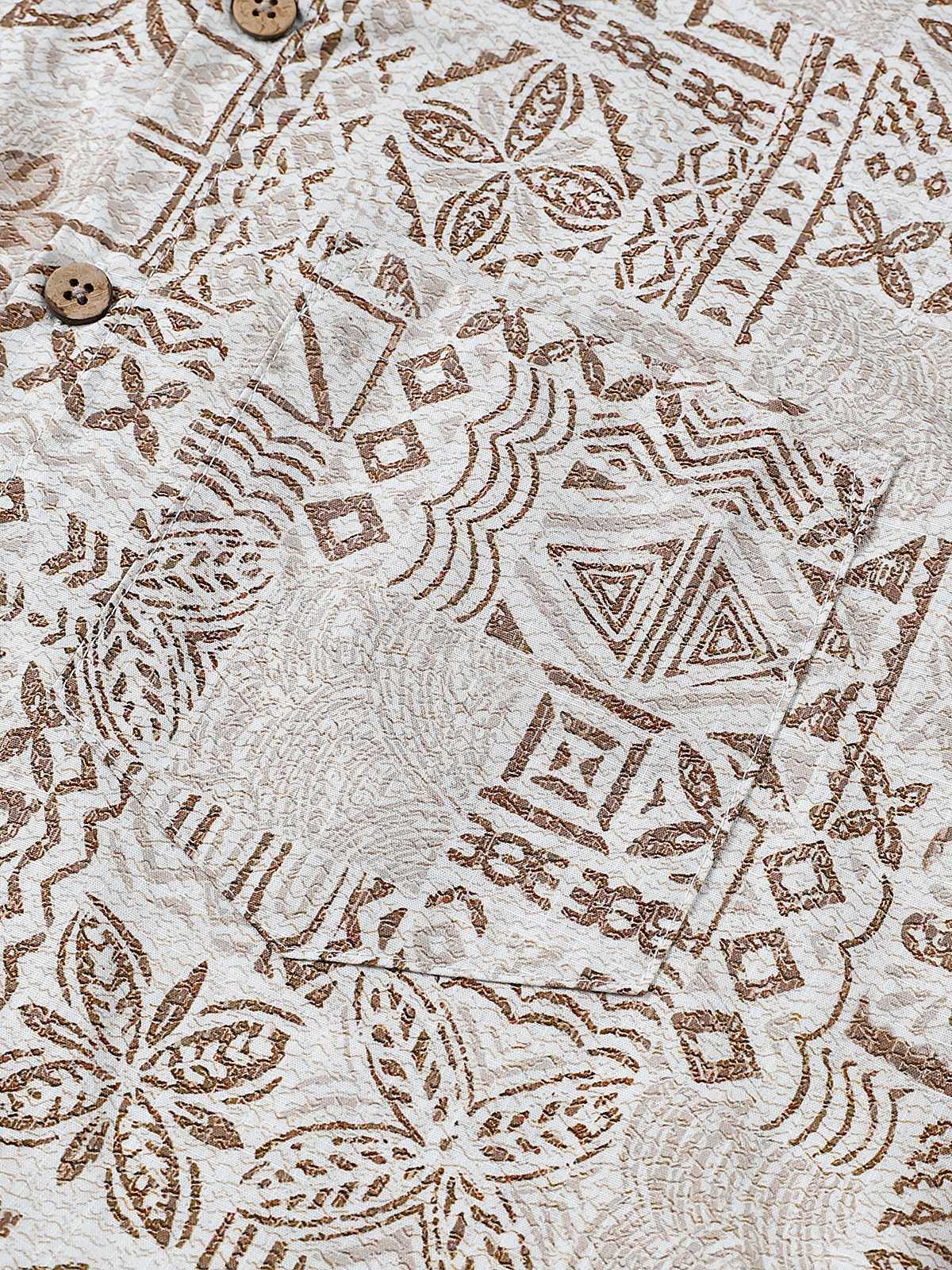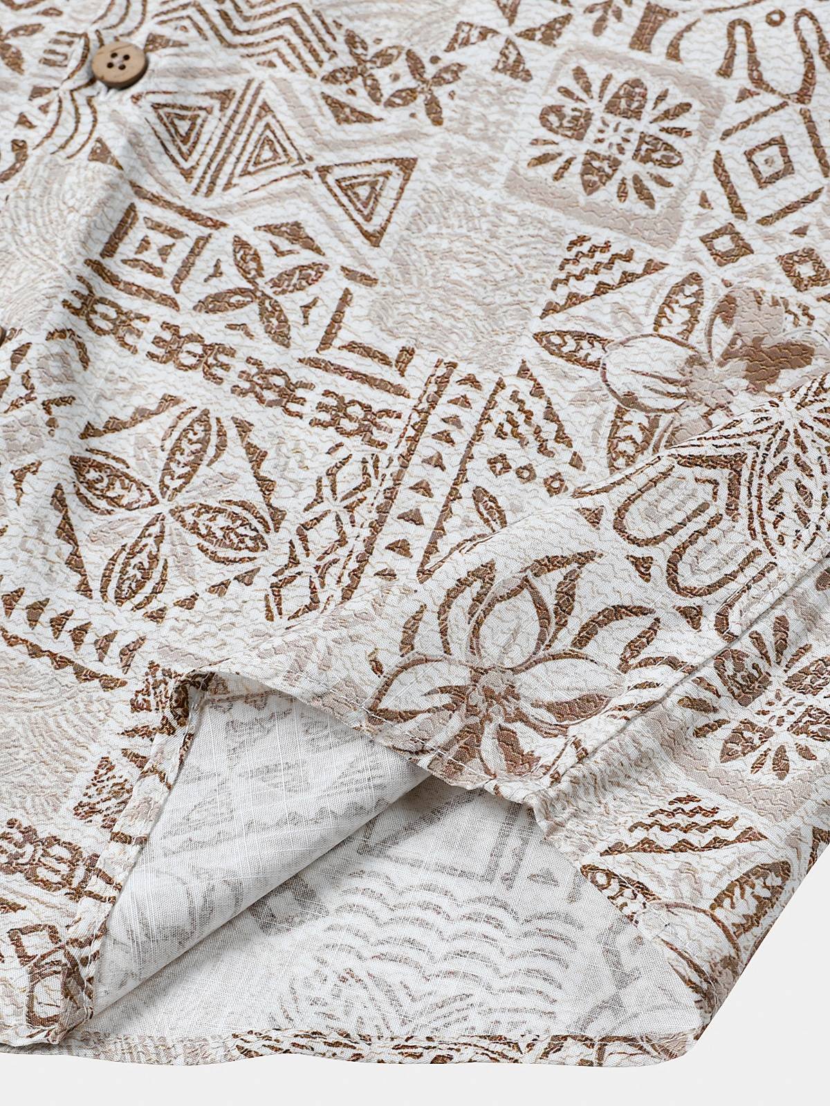 Men's Short Sleeve Cotton Breathable Bohemian Retro Geometric Print Resort Shirt