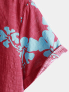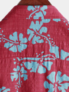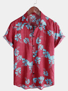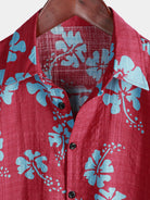 Men's Short Sleeve Red Floral Button Up Beach Tropical Hawaiian Shirt