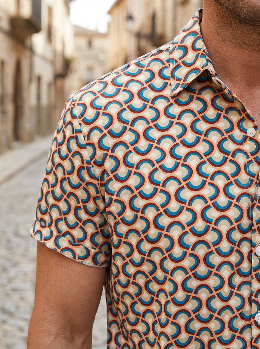Men's Retro Button Up Vintage Geometric Circle Cool Summer Beach Short Sleeve Shirt