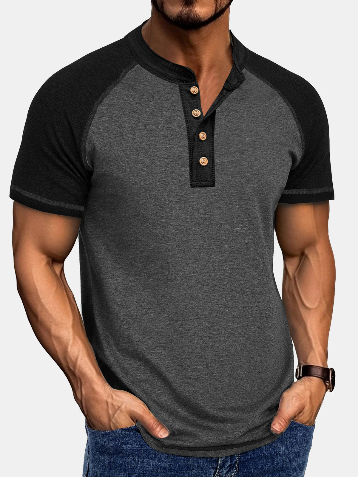 Men's Casual Henley Two-tone Short Sleeve T-Shirt