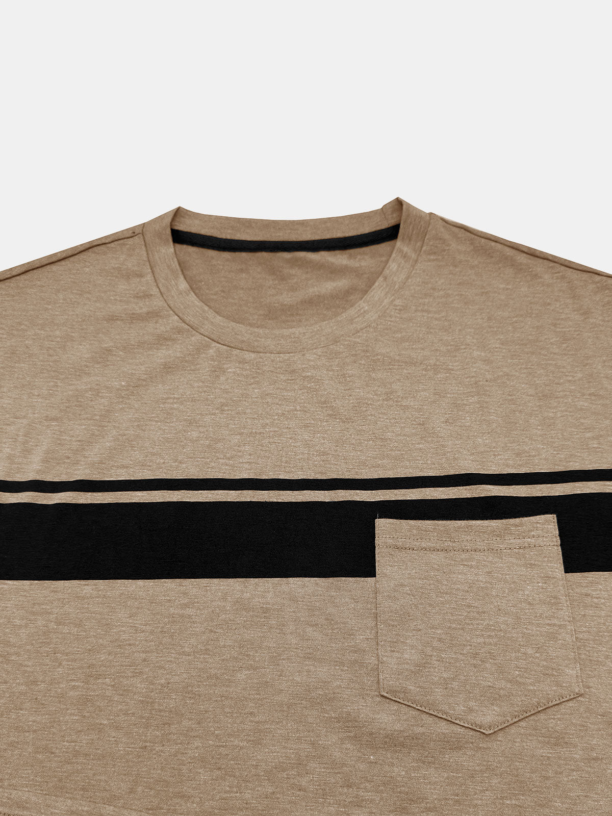 Men's Comfort Striped Patchwork Pocket T-Shirt