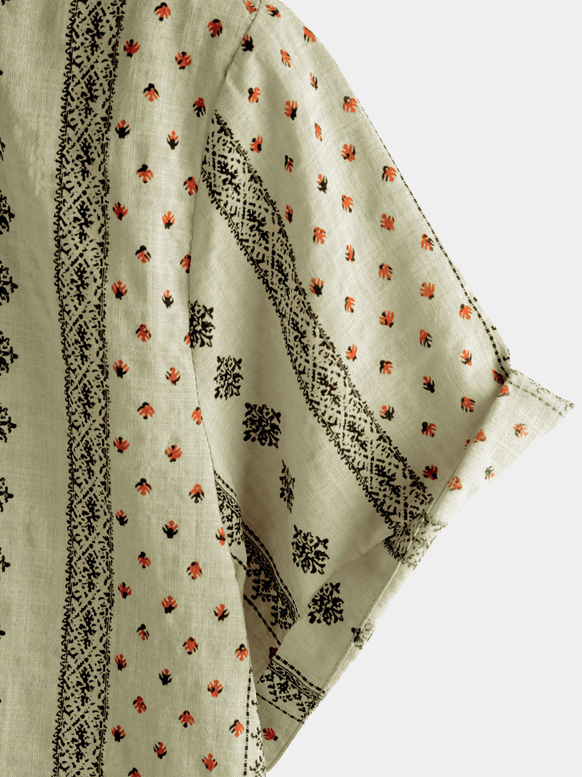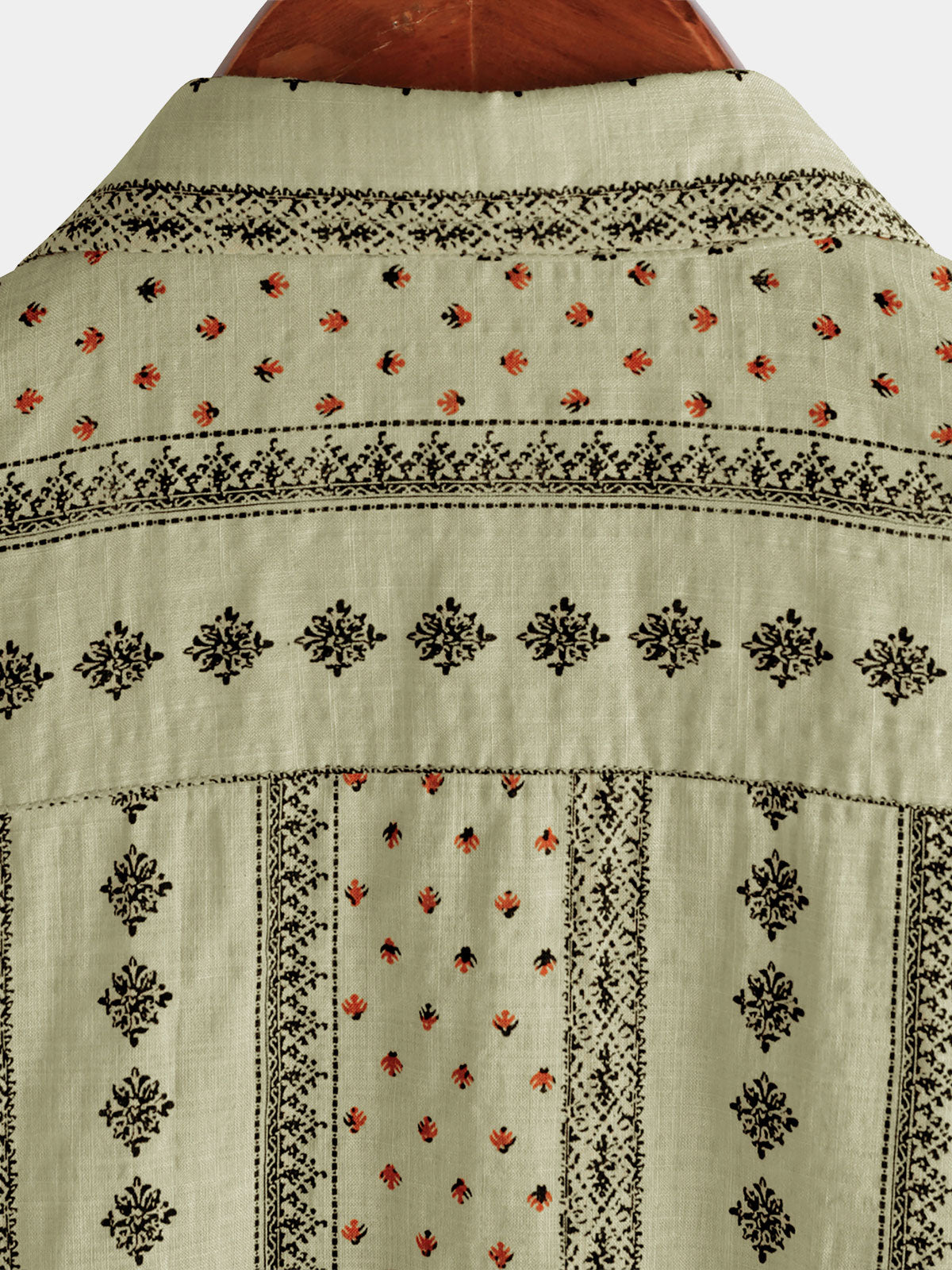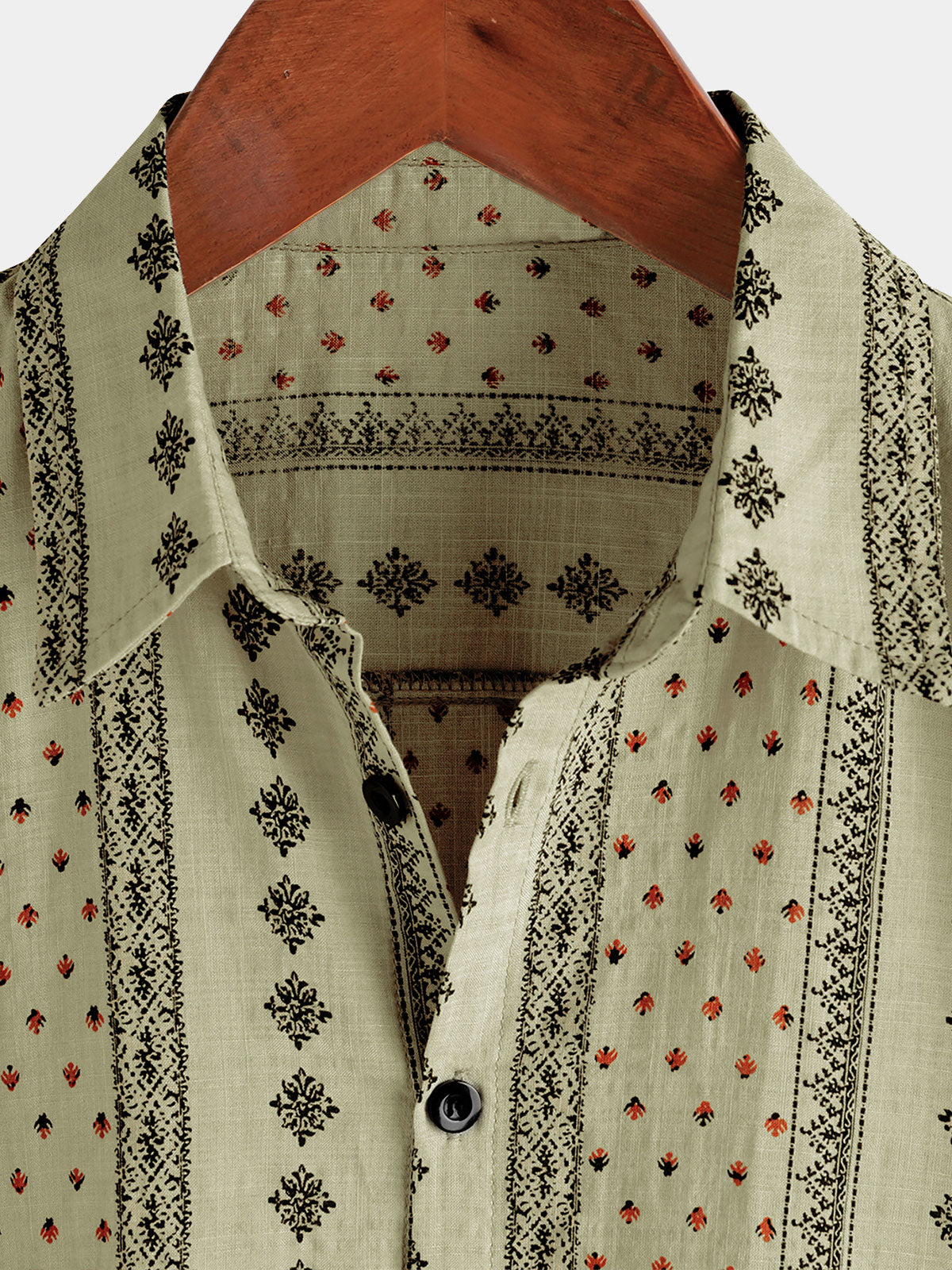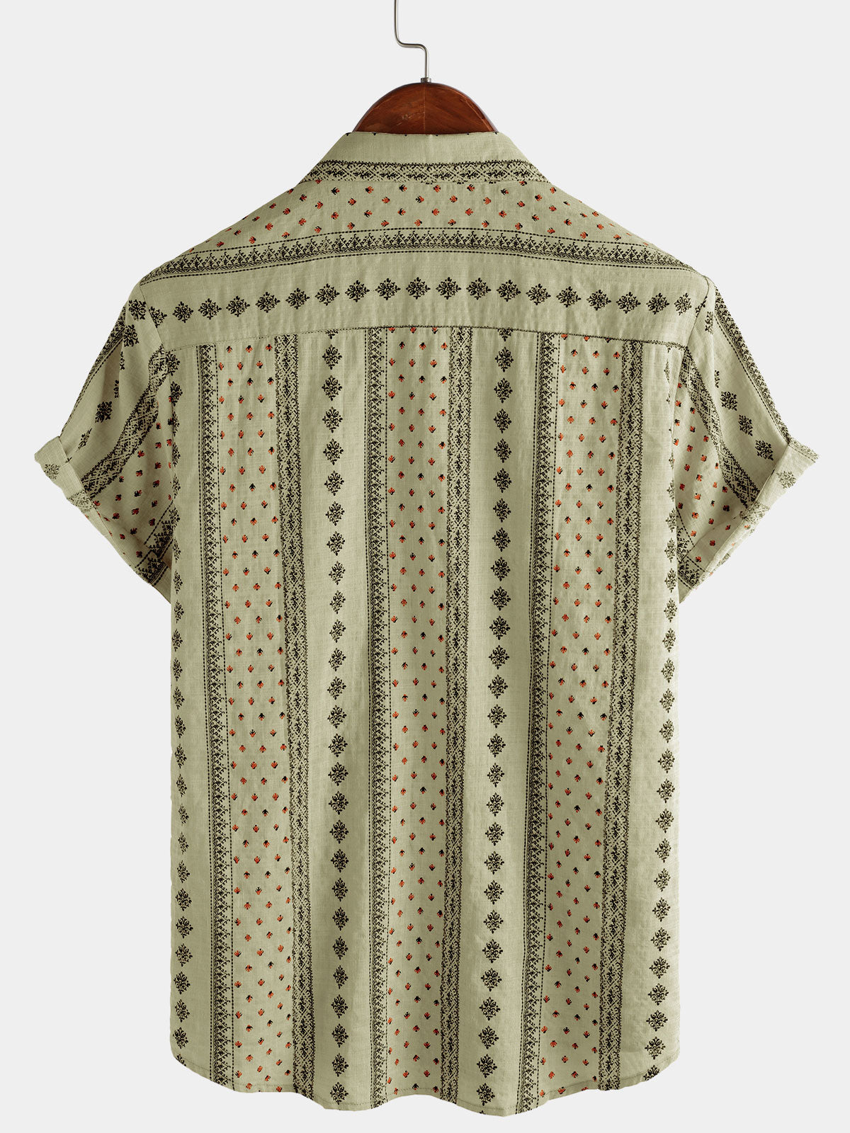 Men's Retro Khaki Striped Print Button Up 70s Vintage Short Sleeve Shirt