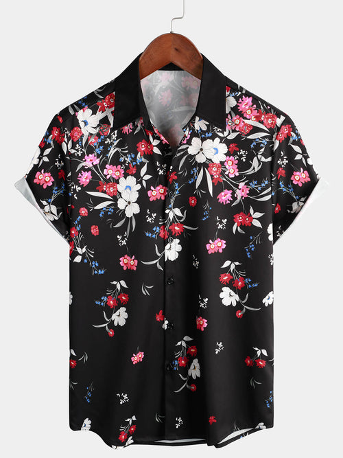 Men's Floral Print Button Up Casual Short Sleeve Resort Summer Shirt