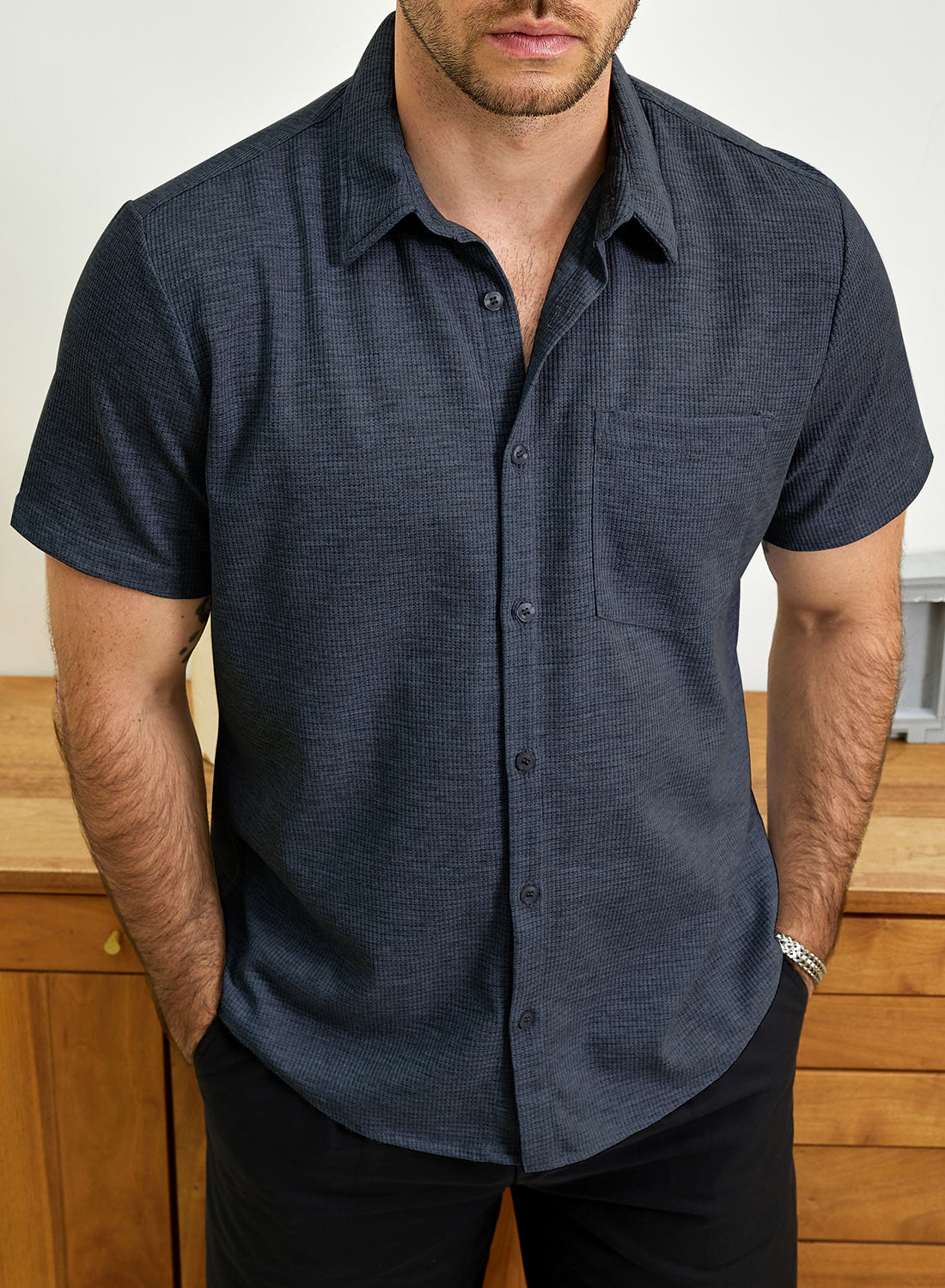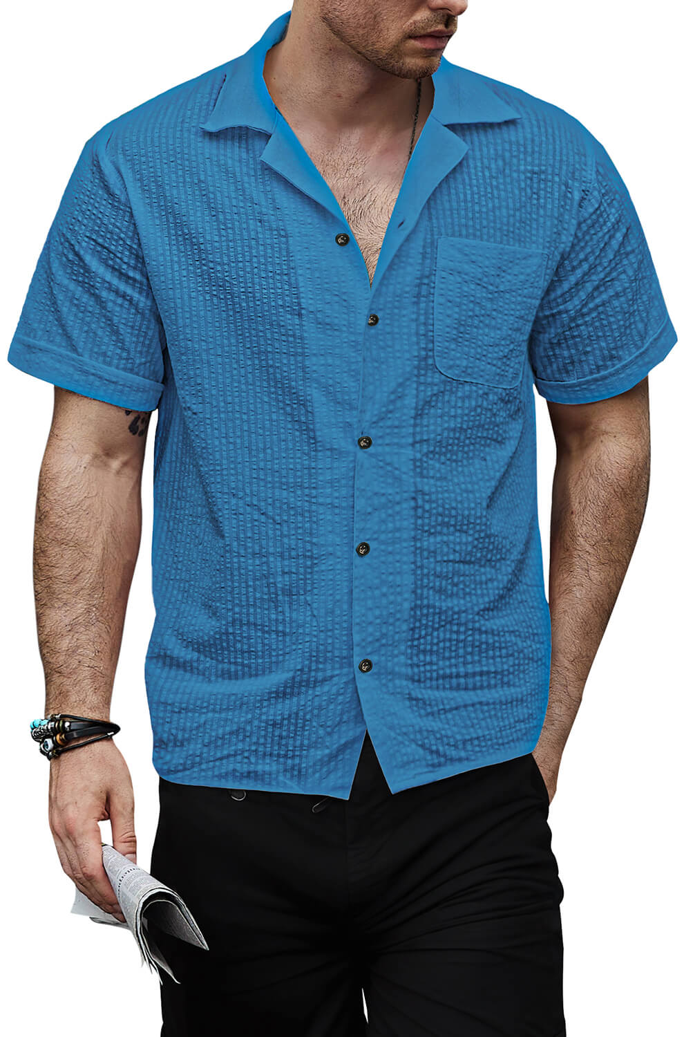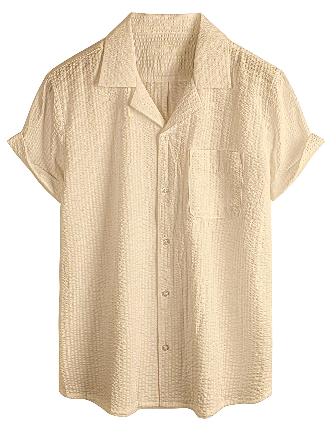 Men's Casual Waffle Short Sleeve Button Up Summer Loose Fit Beach Shirt